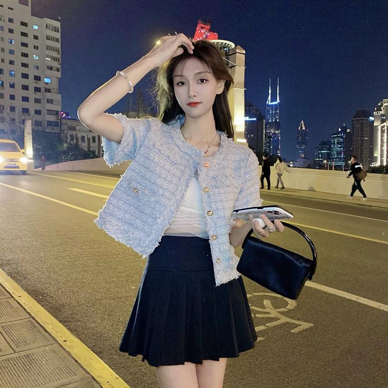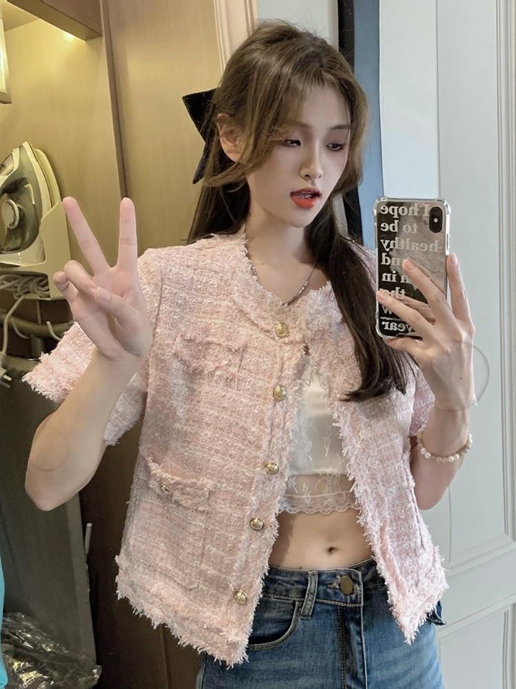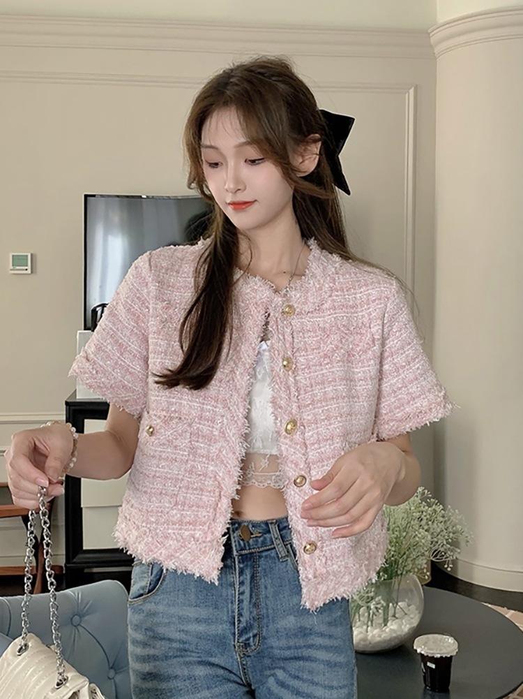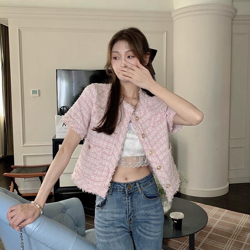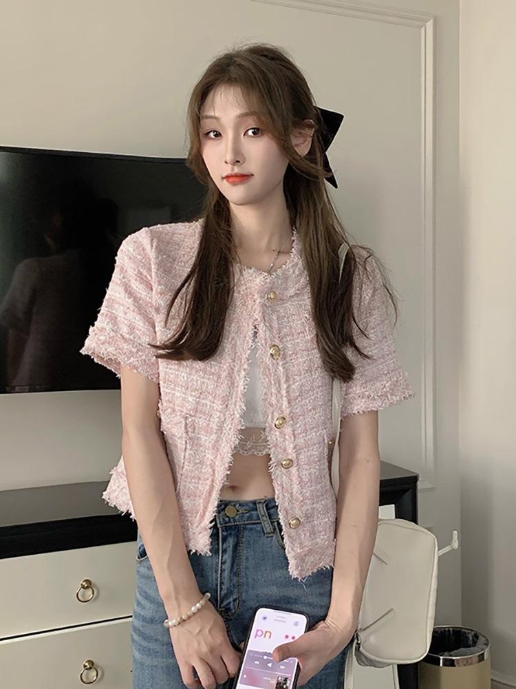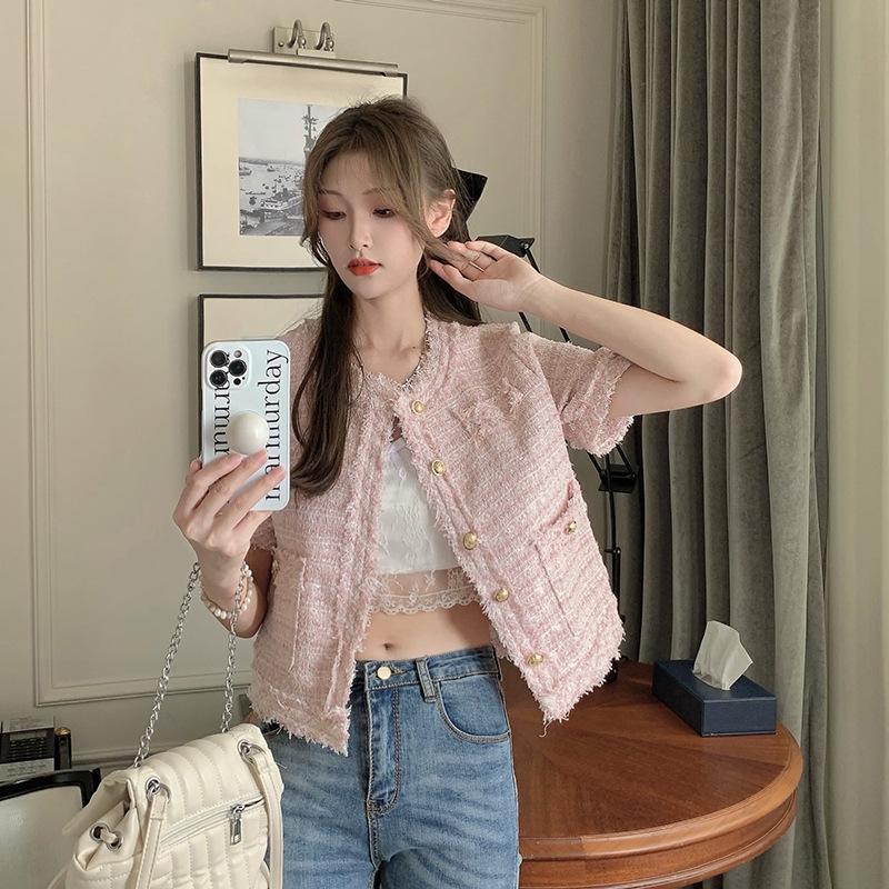 Abrigo corto de estilo coreano de verano, moderno y combinable con todo, estilo occidental, elegante, estilo Chanel, top de manga corta con temperamento para mujer