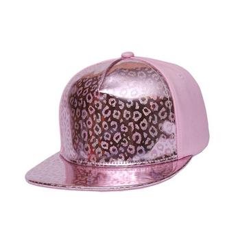 Gorra de hip-hop personalizada con estampado de leopardo rosa de alto brillo de cuero PU, gorra de cabeza grande, estilo europeo y americano, gorra de ala plana de moda para baile callejero al aire libre, hecha a medida |