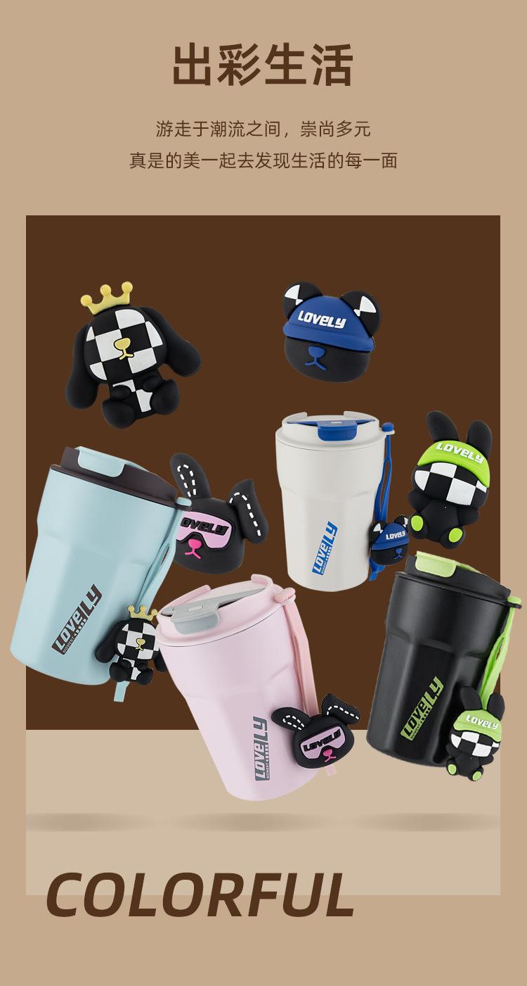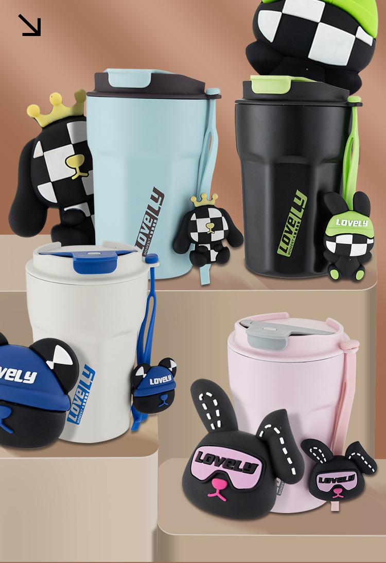 Taza de Café Personalizada de Acero Inoxidable 316 Vaso de Agua Aislado para Estudiantes con Correa Portátil, Taza Aislada Simple en Azul Cielo