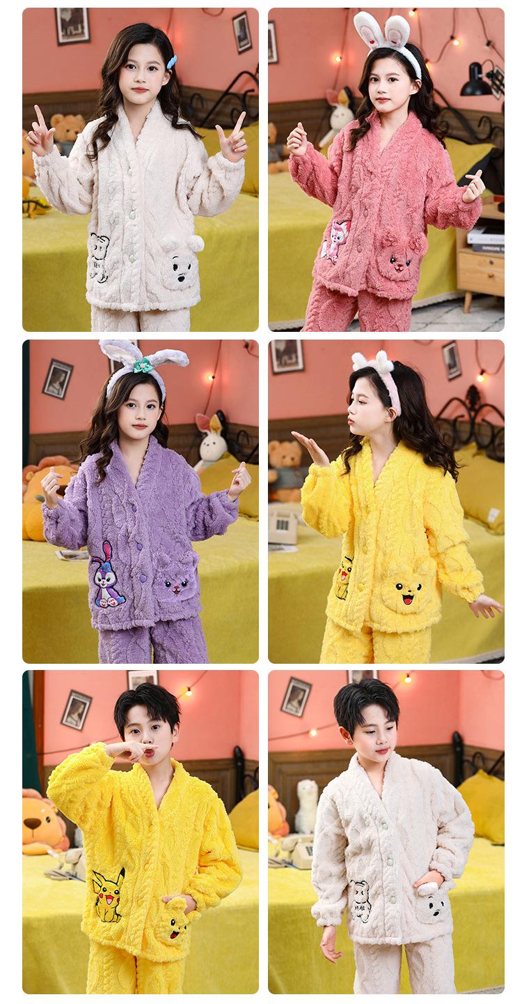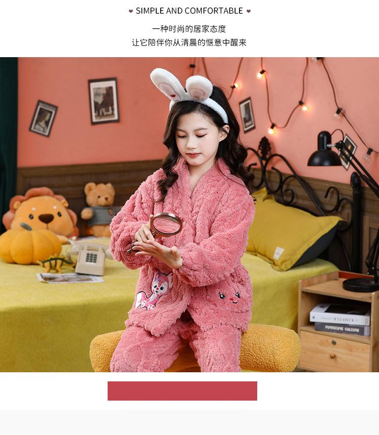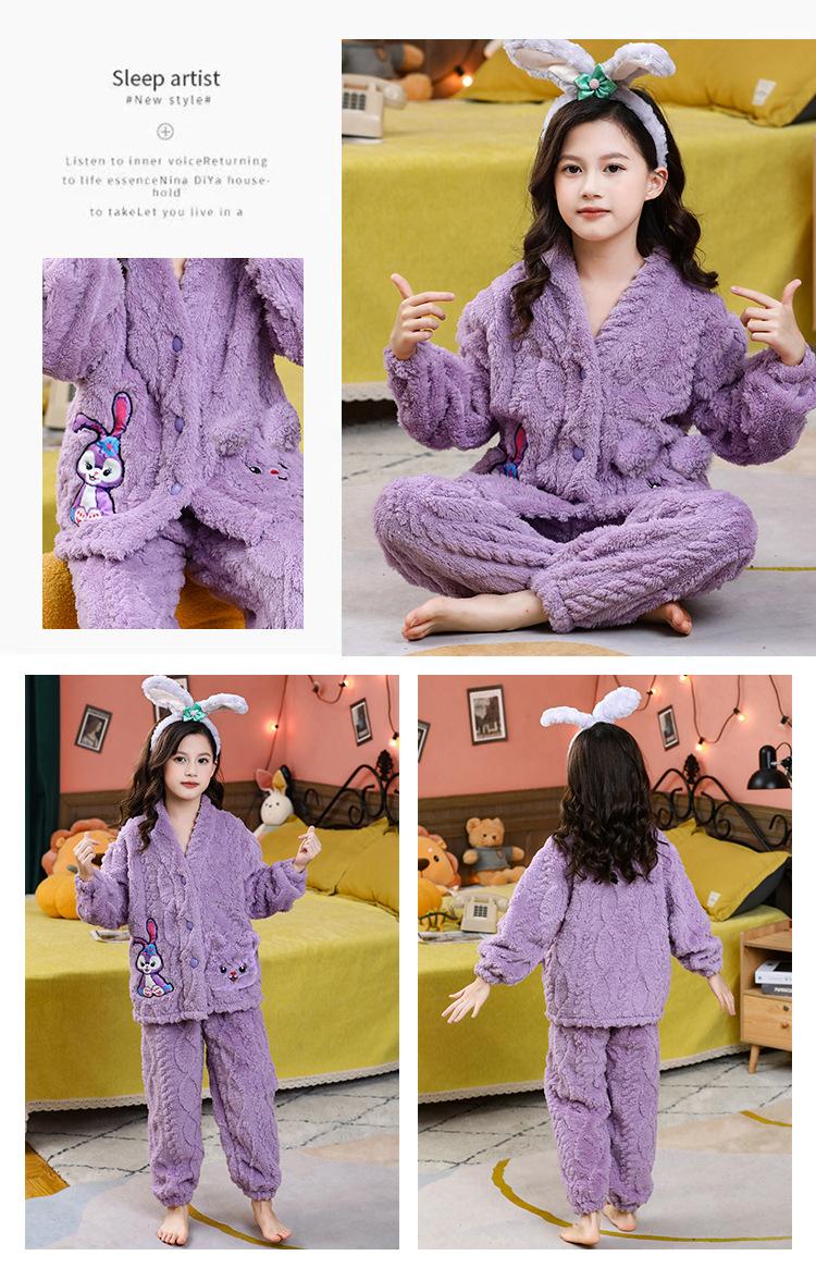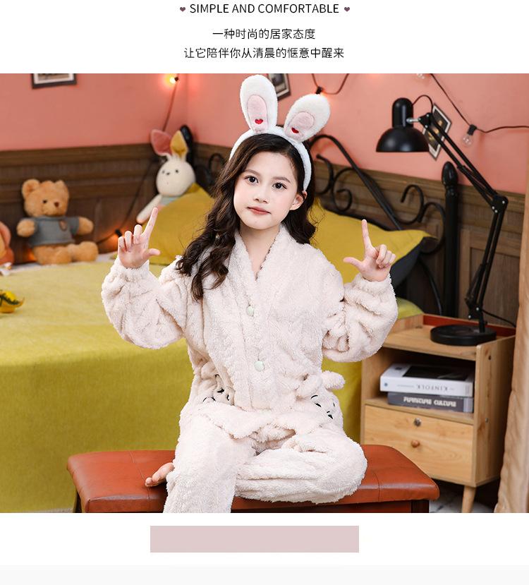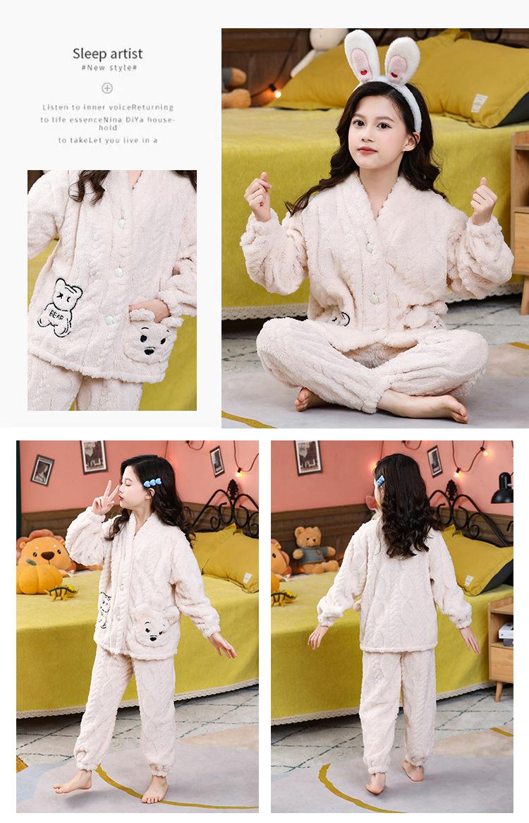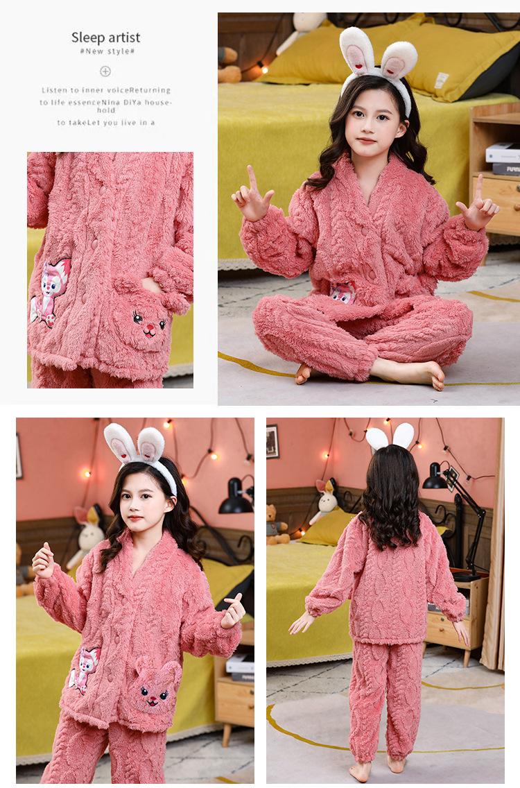 Pijamas para Niñas Otoño e Invierno Forro Polar Coral Engrosado Cárdigan de Bebé Conjunto de Ropa para el Hogar para Parturienta Madre-Hija