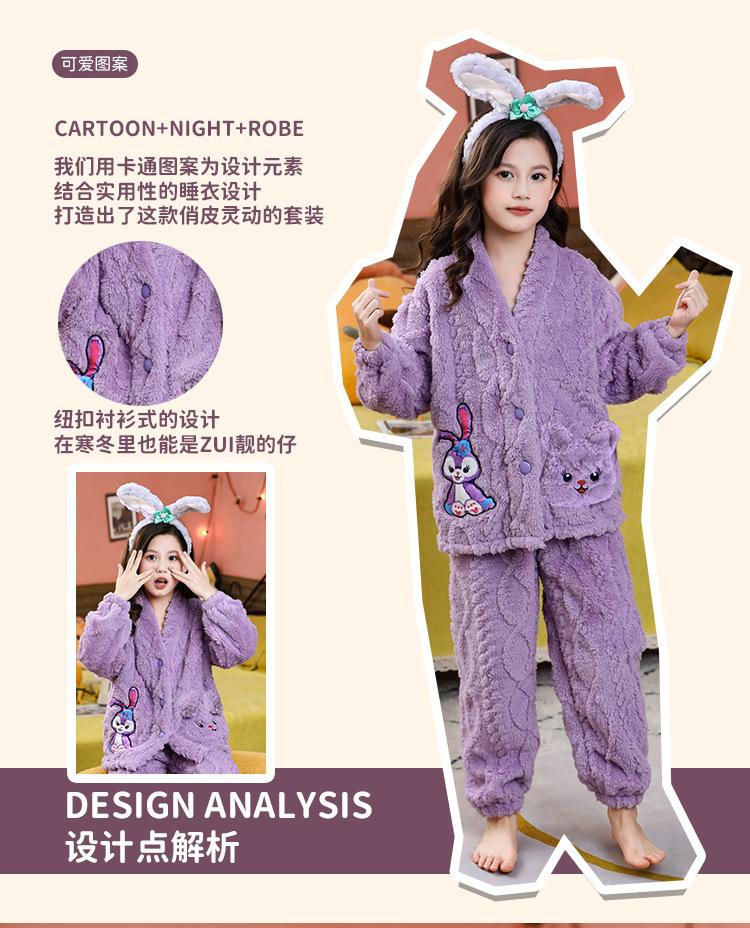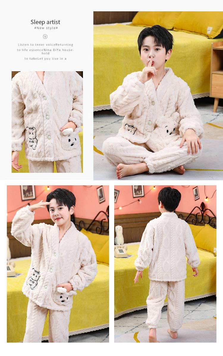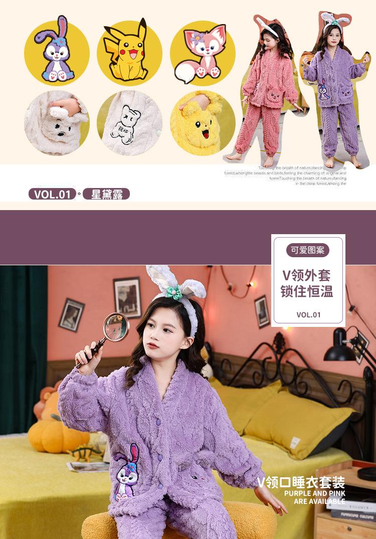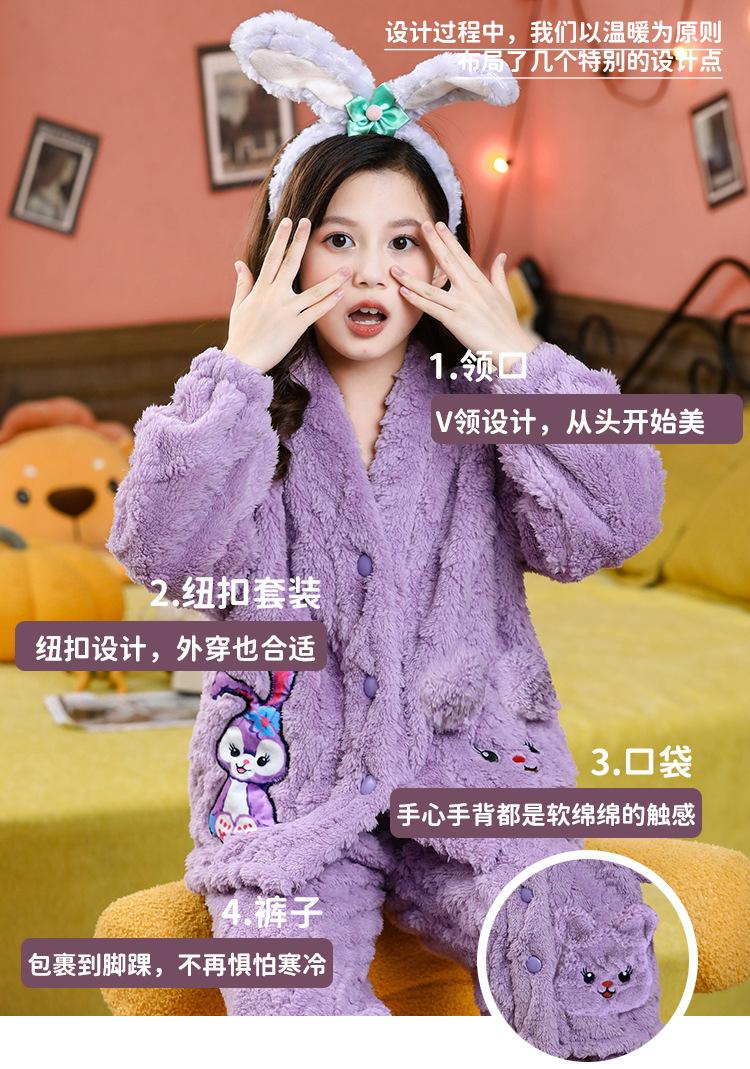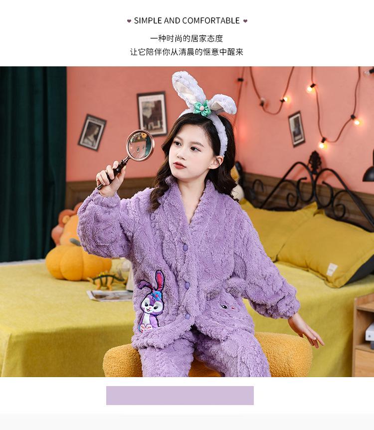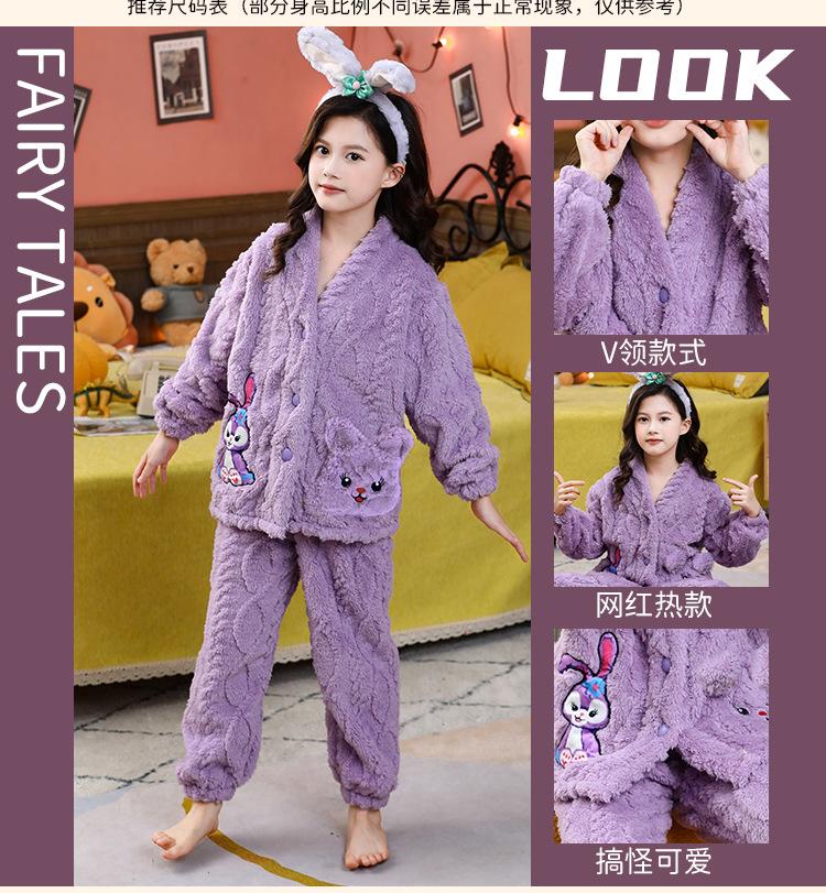 Pijamas para Niñas Otoño e Invierno Forro Polar Coral Engrosado Cárdigan de Bebé Conjunto de Ropa para el Hogar para Parturienta Madre-Hija