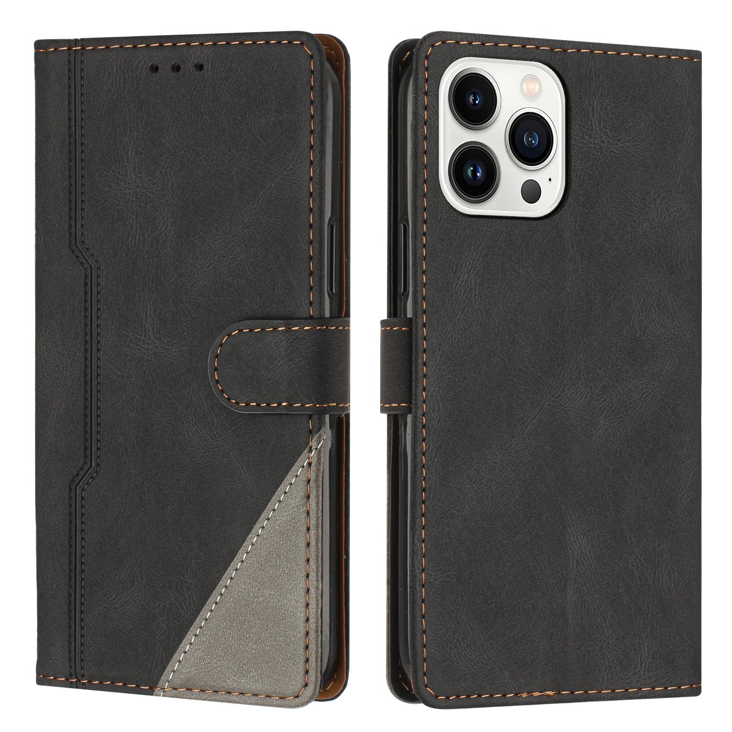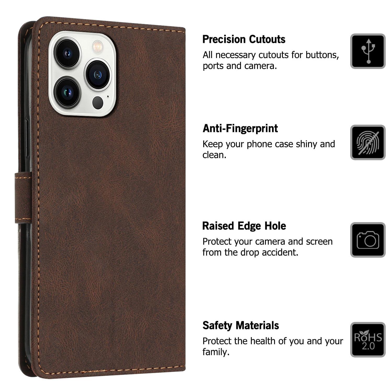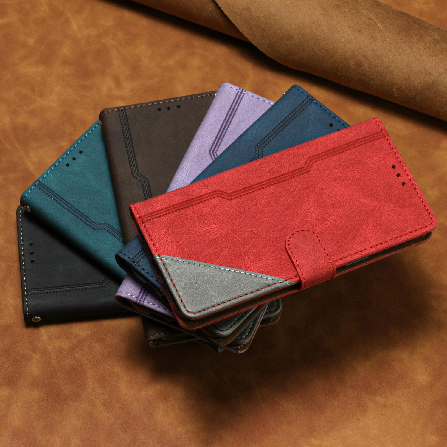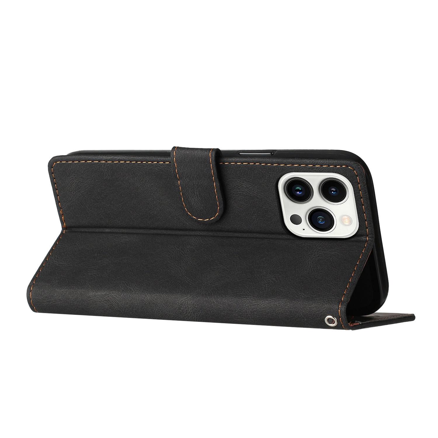 Estuche de cuero con costuras esmeriladas vintage en contraste, adecuado para iPhone 16 Pro, billetera con tapa para tarjetas Apple 13