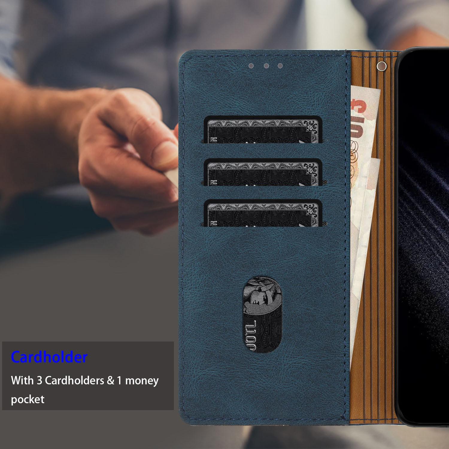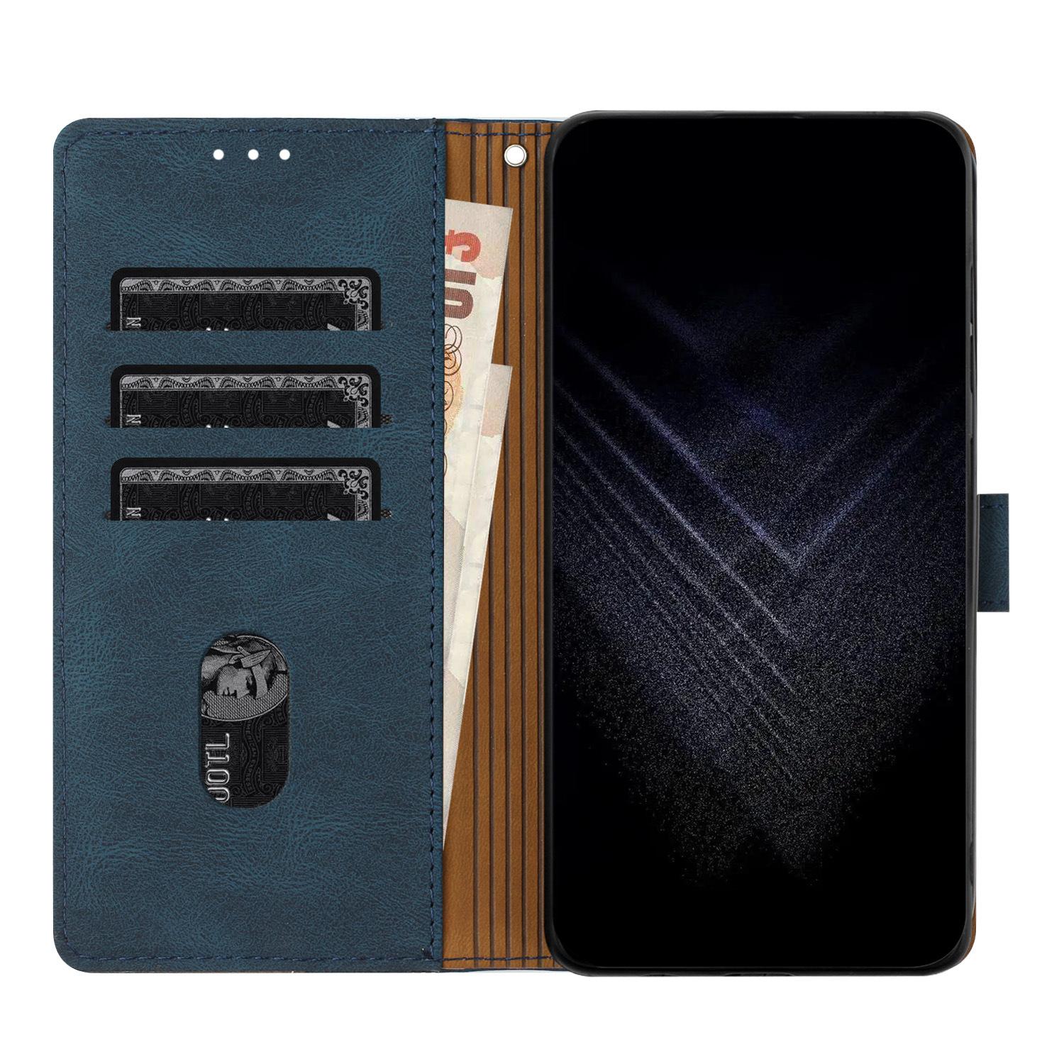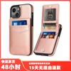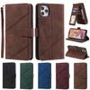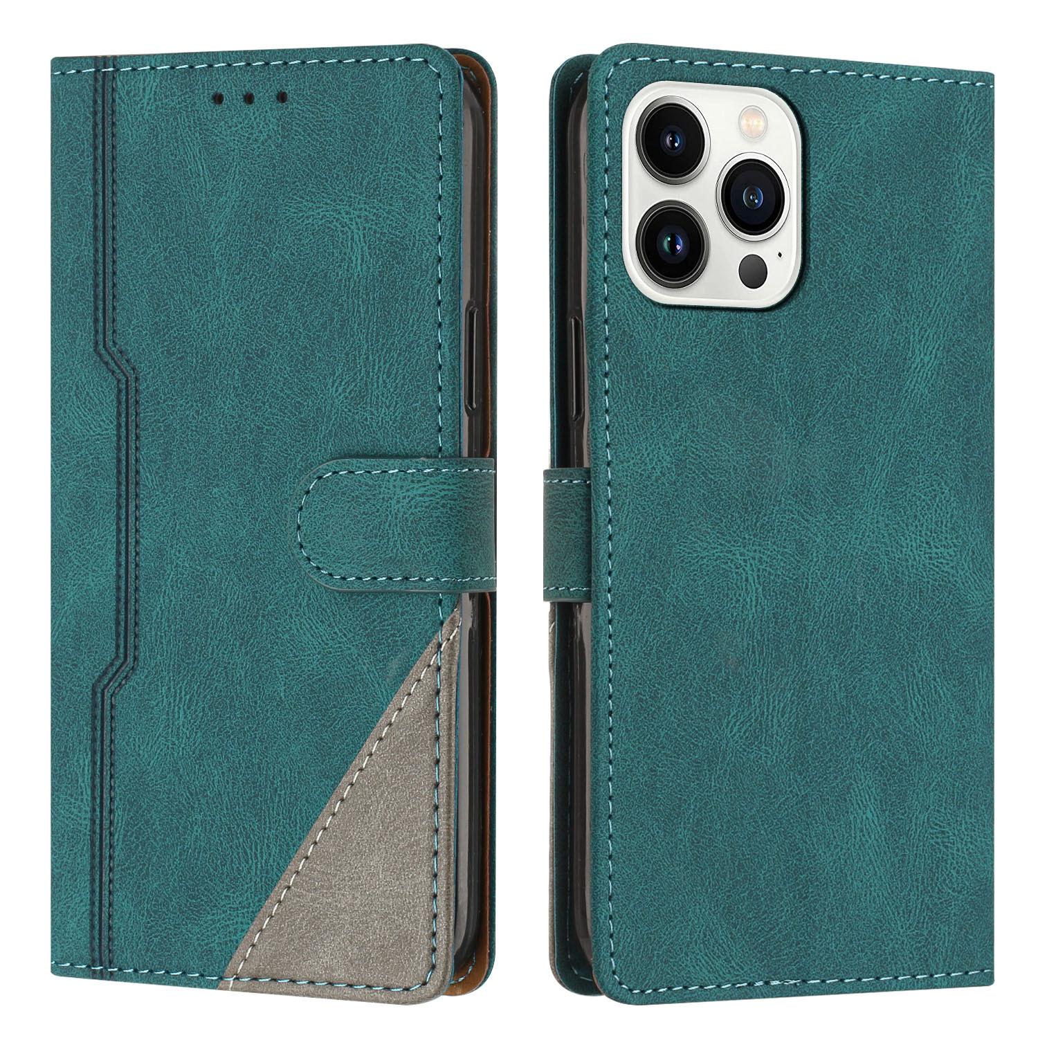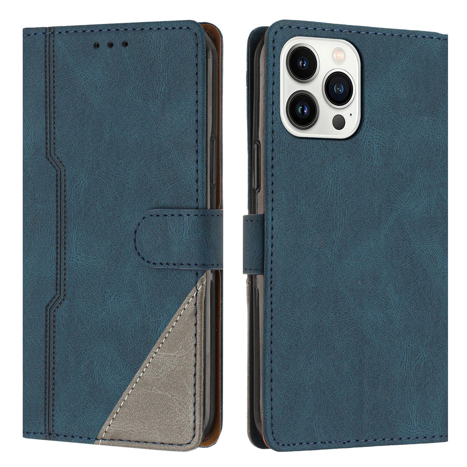 Estuche de cuero con costuras esmeriladas vintage en contraste, adecuado para iPhone 16 Pro, billetera con tapa para tarjetas Apple 13