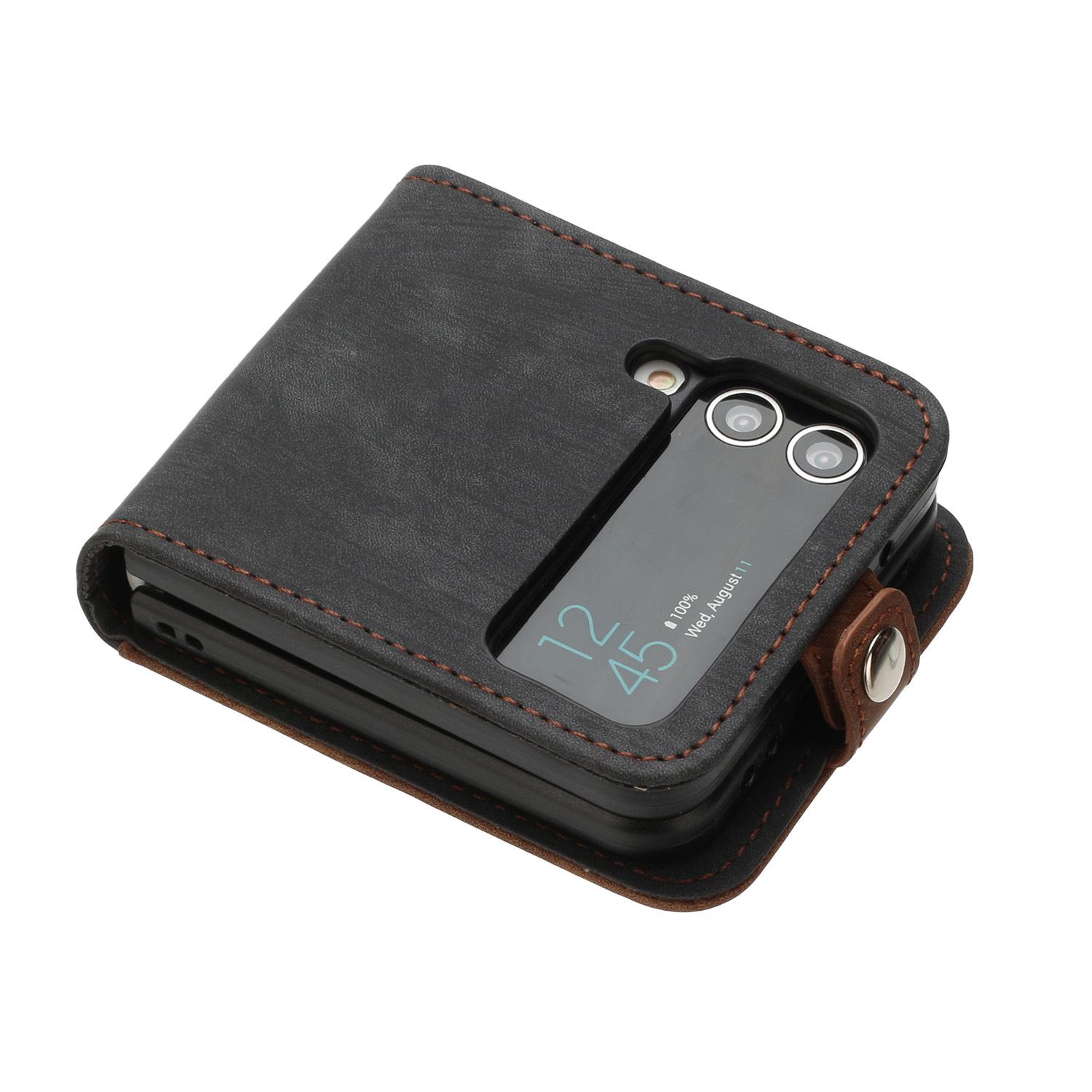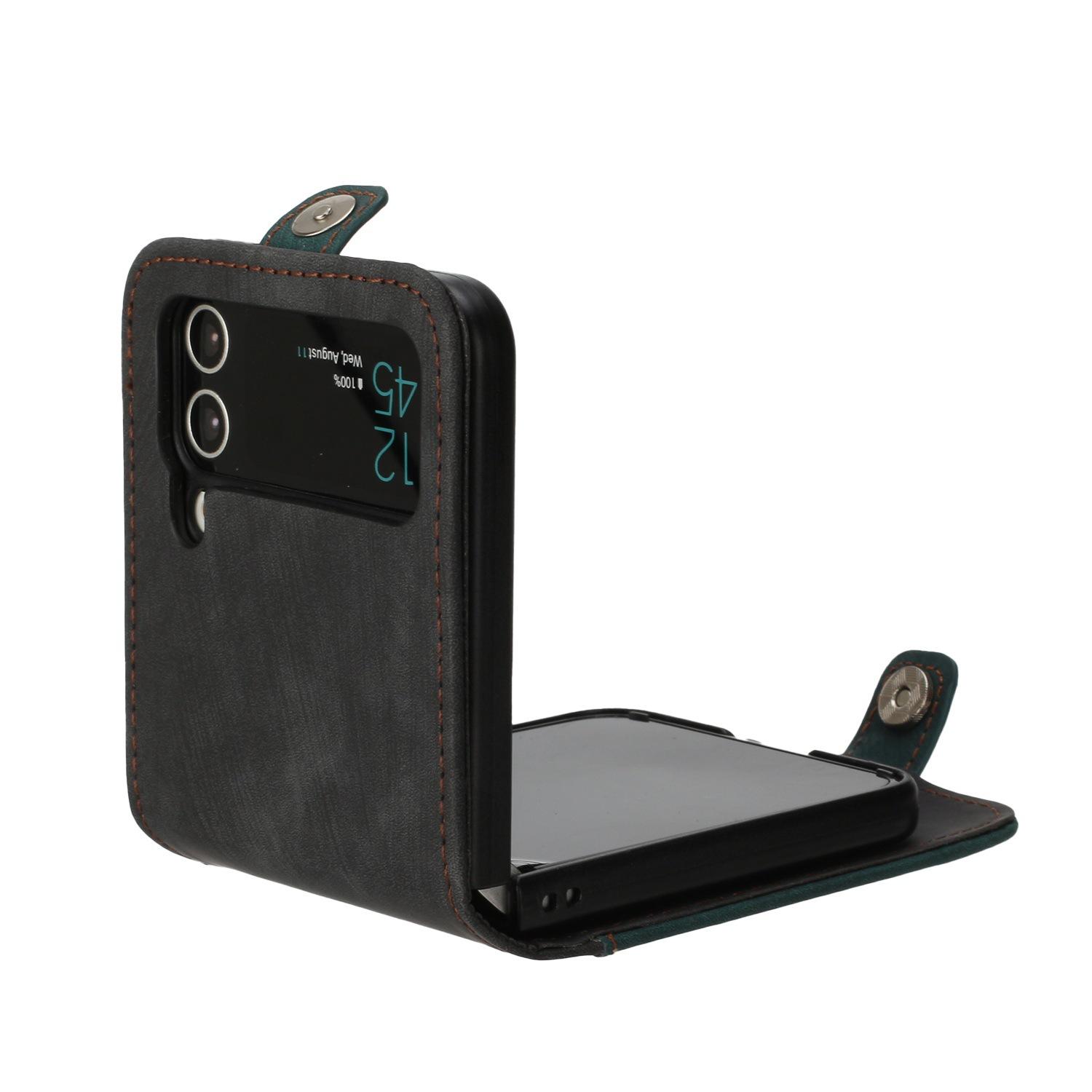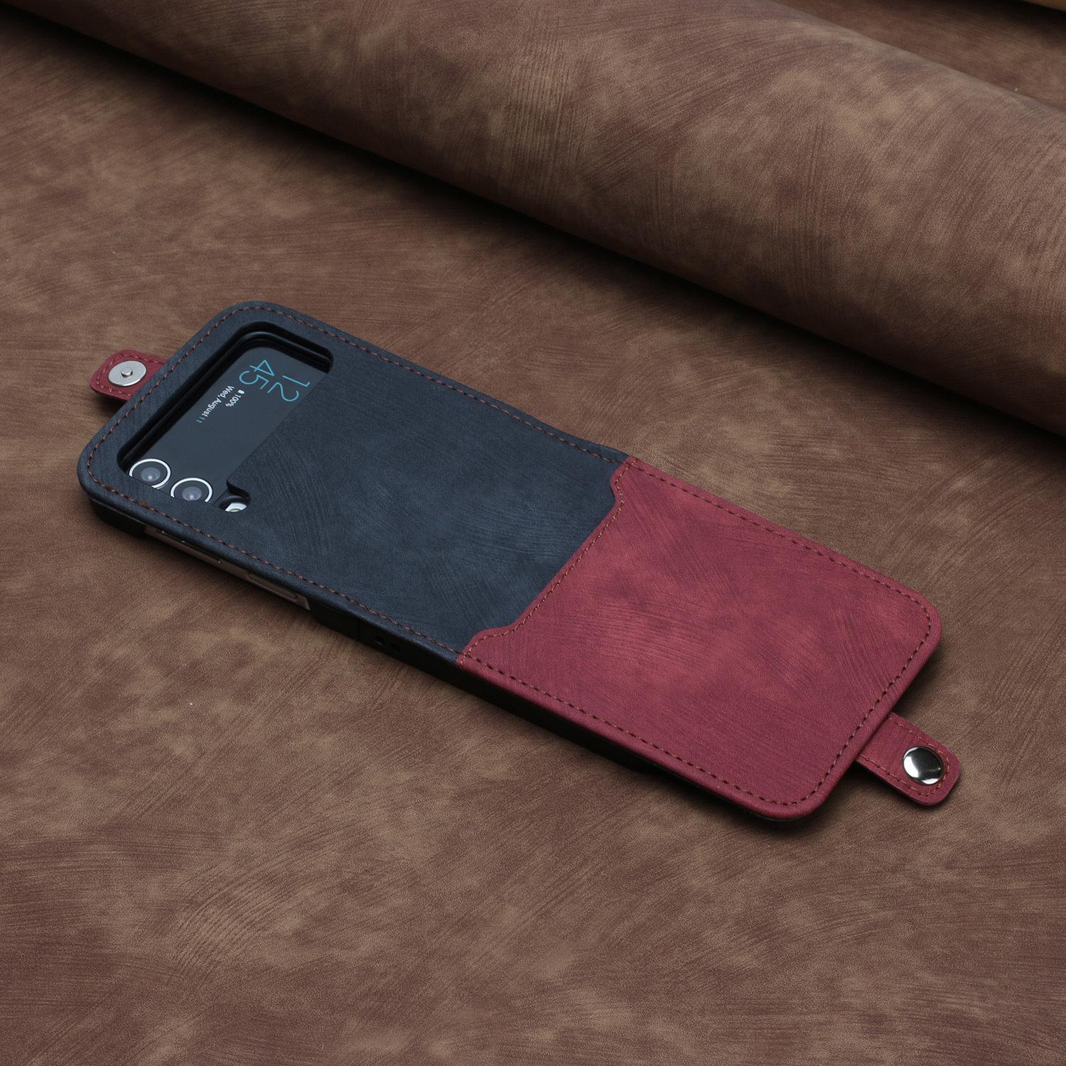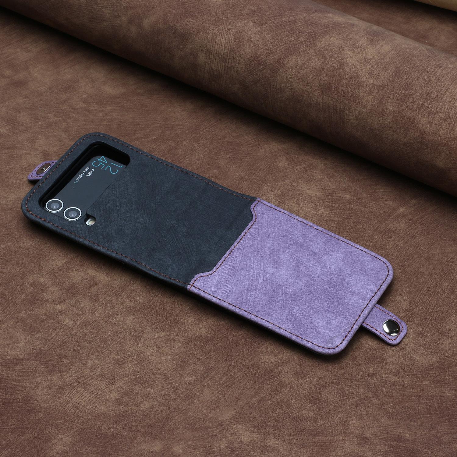 Adecuado para Samsung Z flip 6, funda de cuero para teléfono móvil con hebilla lateral y pantalla plegable hacia arriba y hacia abajo, Z flip 4/3, tarjeta