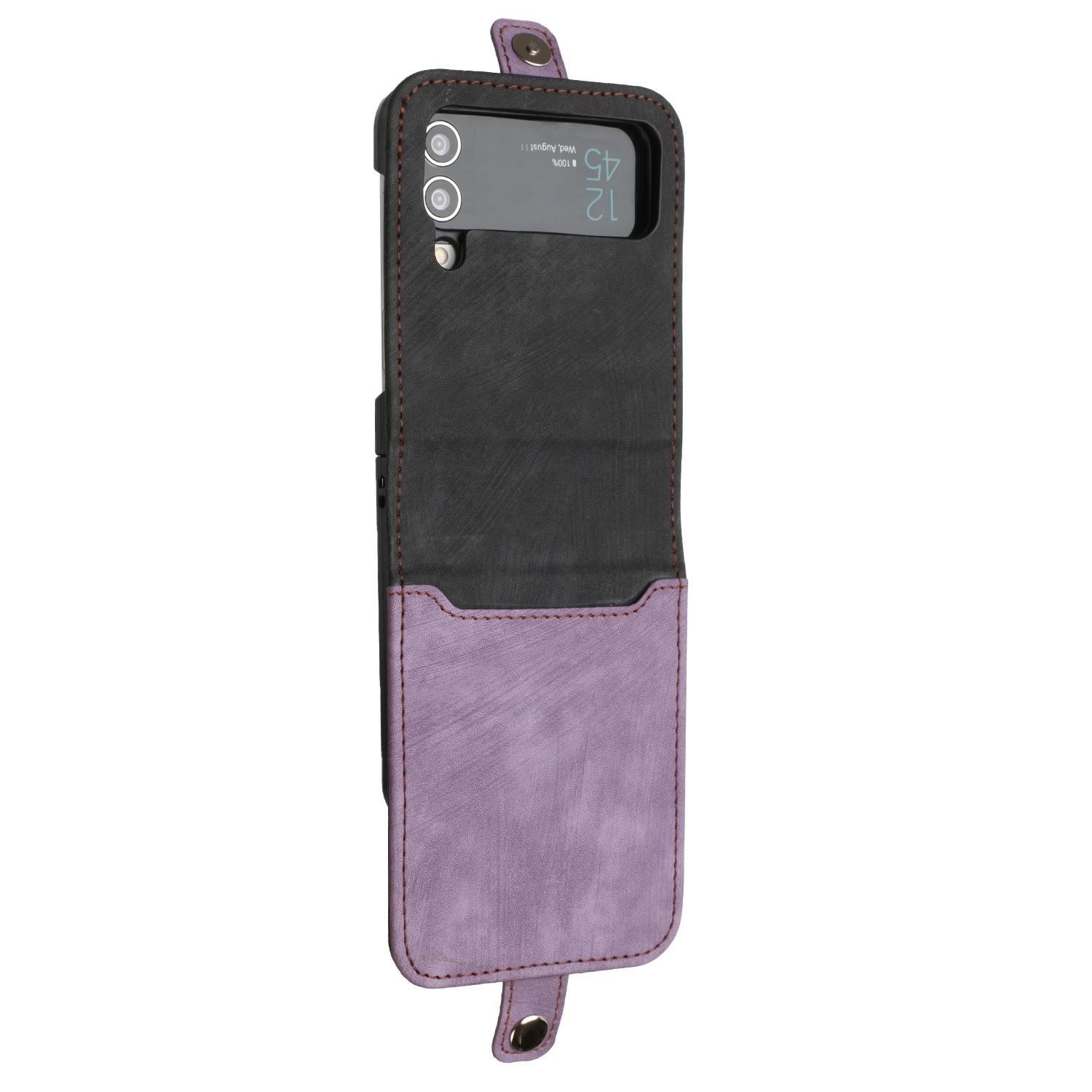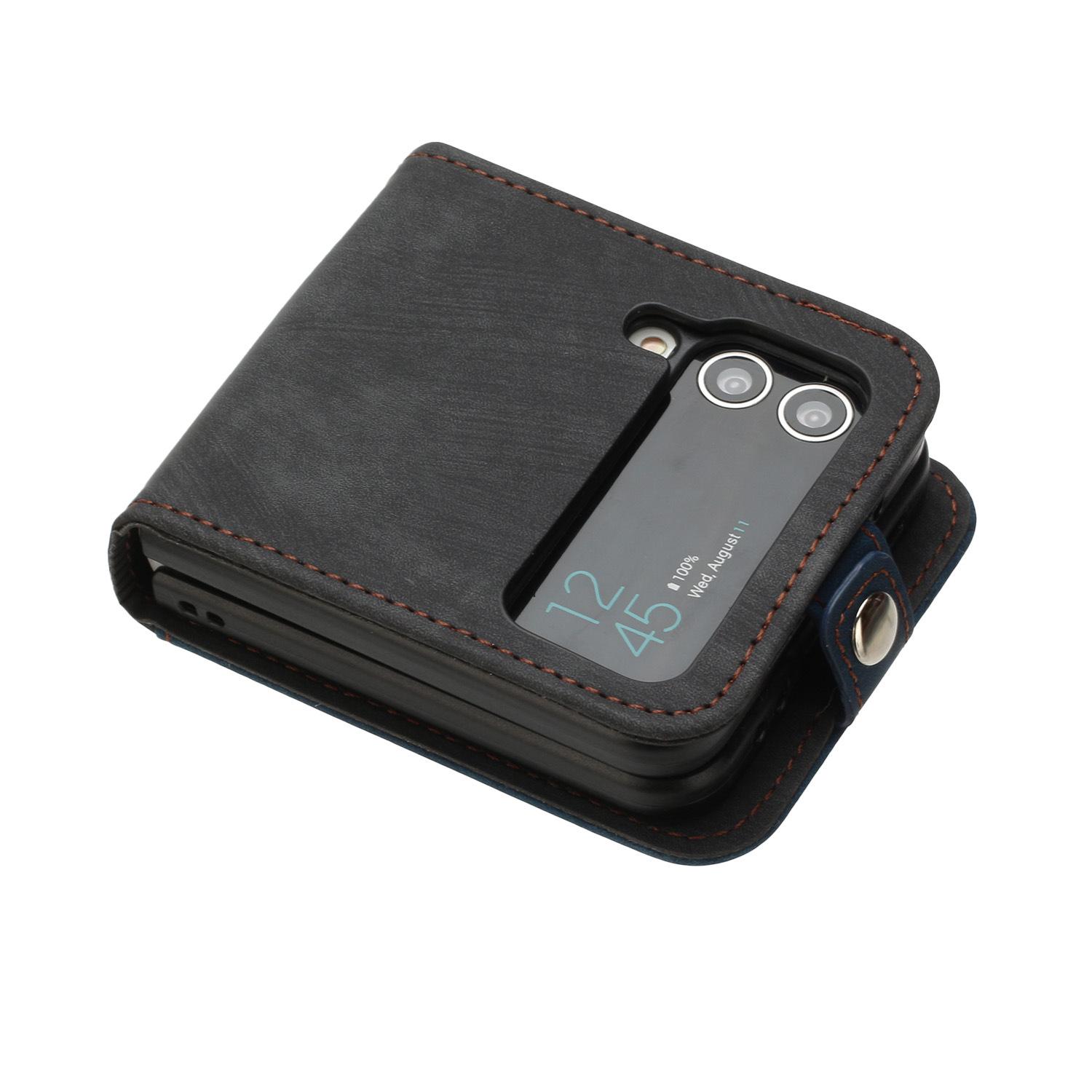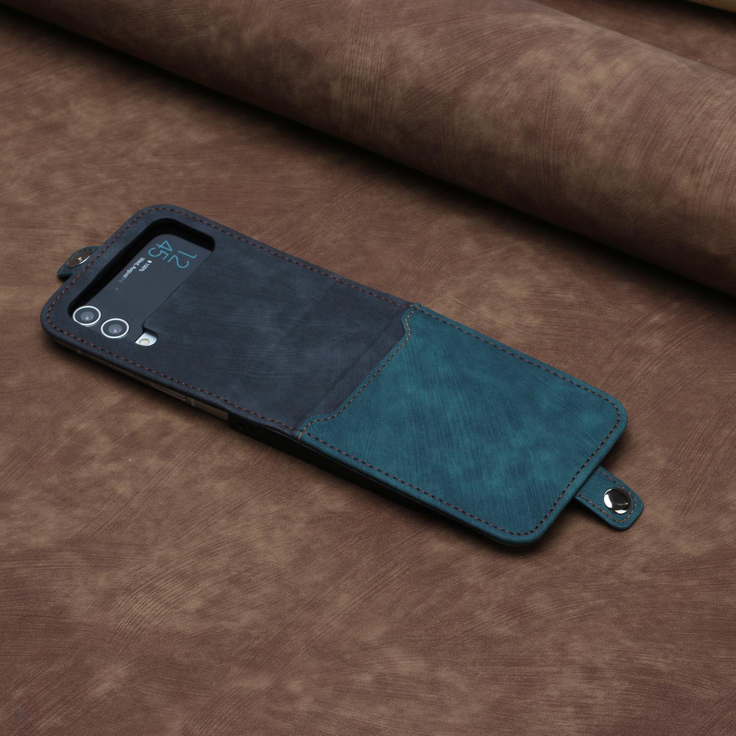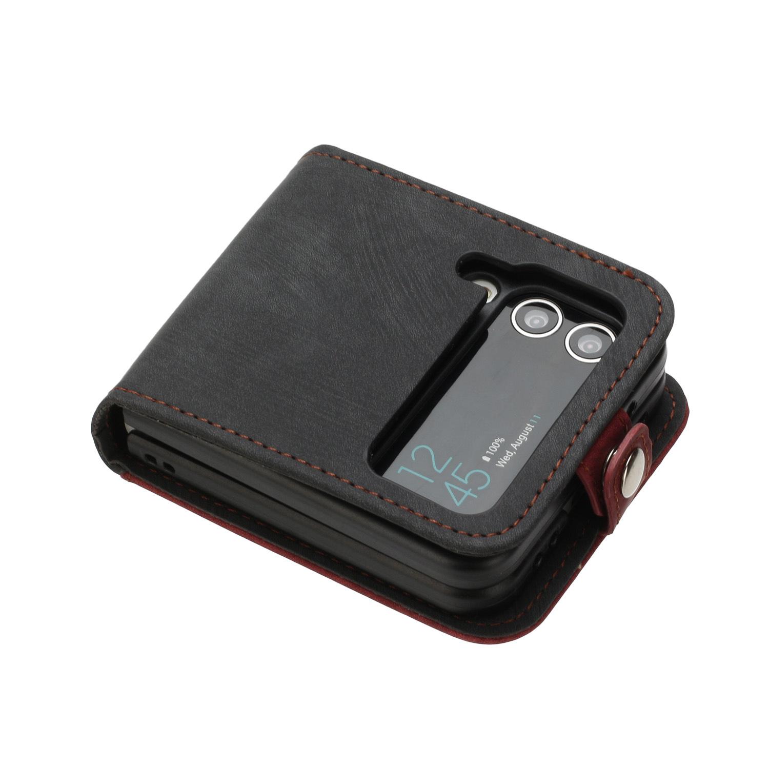 Adecuado para Samsung Z flip 6, funda de cuero para teléfono móvil con hebilla lateral y pantalla plegable hacia arriba y hacia abajo, Z flip 4/3, tarjeta