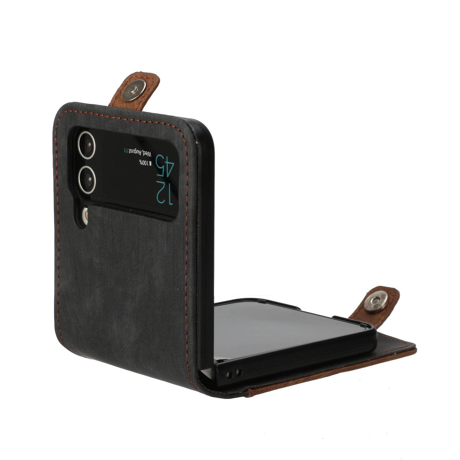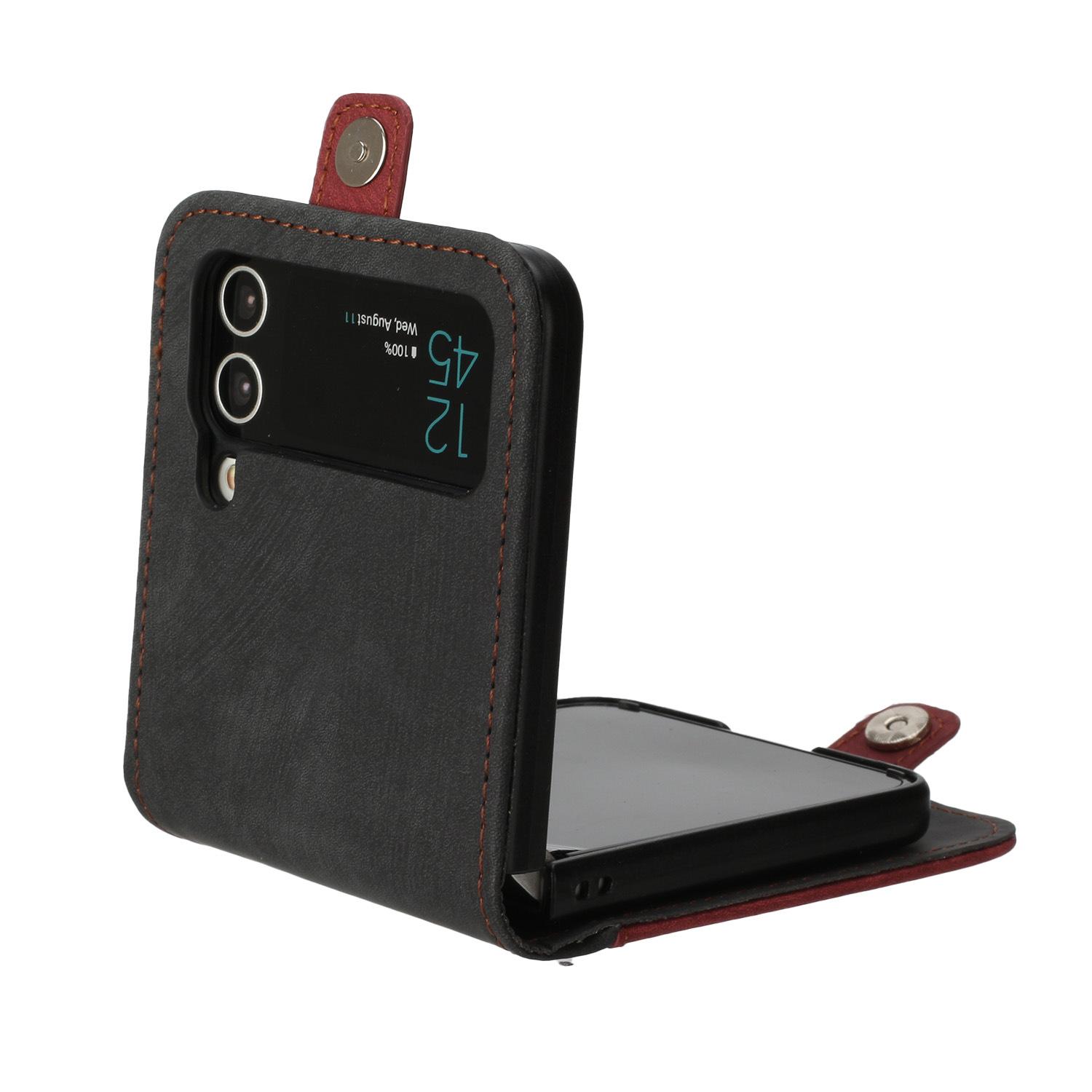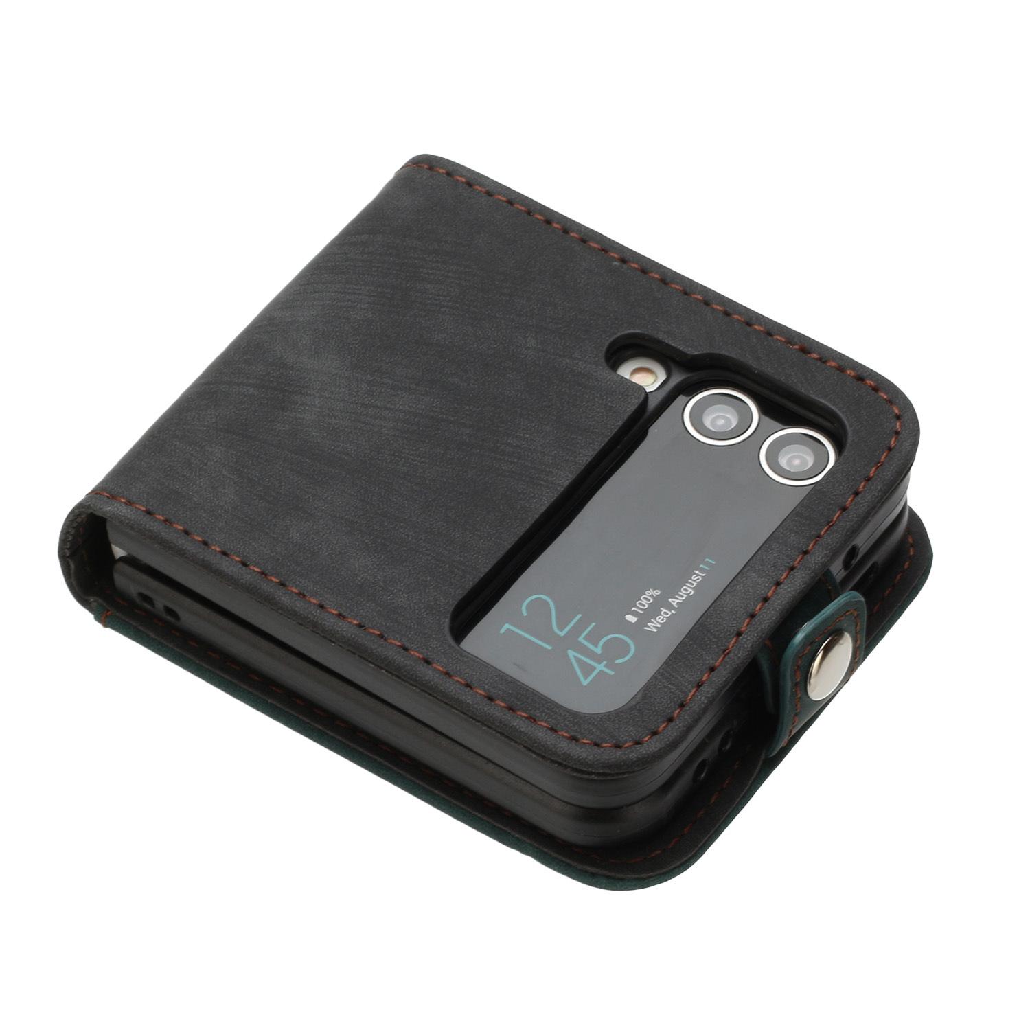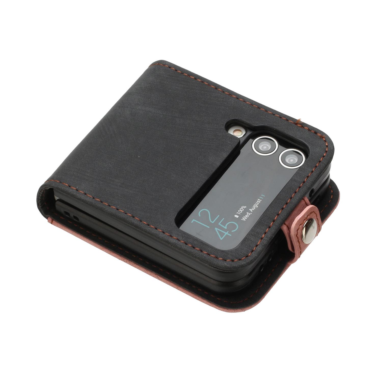 Adecuado para Samsung Z flip 6, funda de cuero para teléfono móvil con hebilla lateral y pantalla plegable hacia arriba y hacia abajo, Z flip 4/3, tarjeta