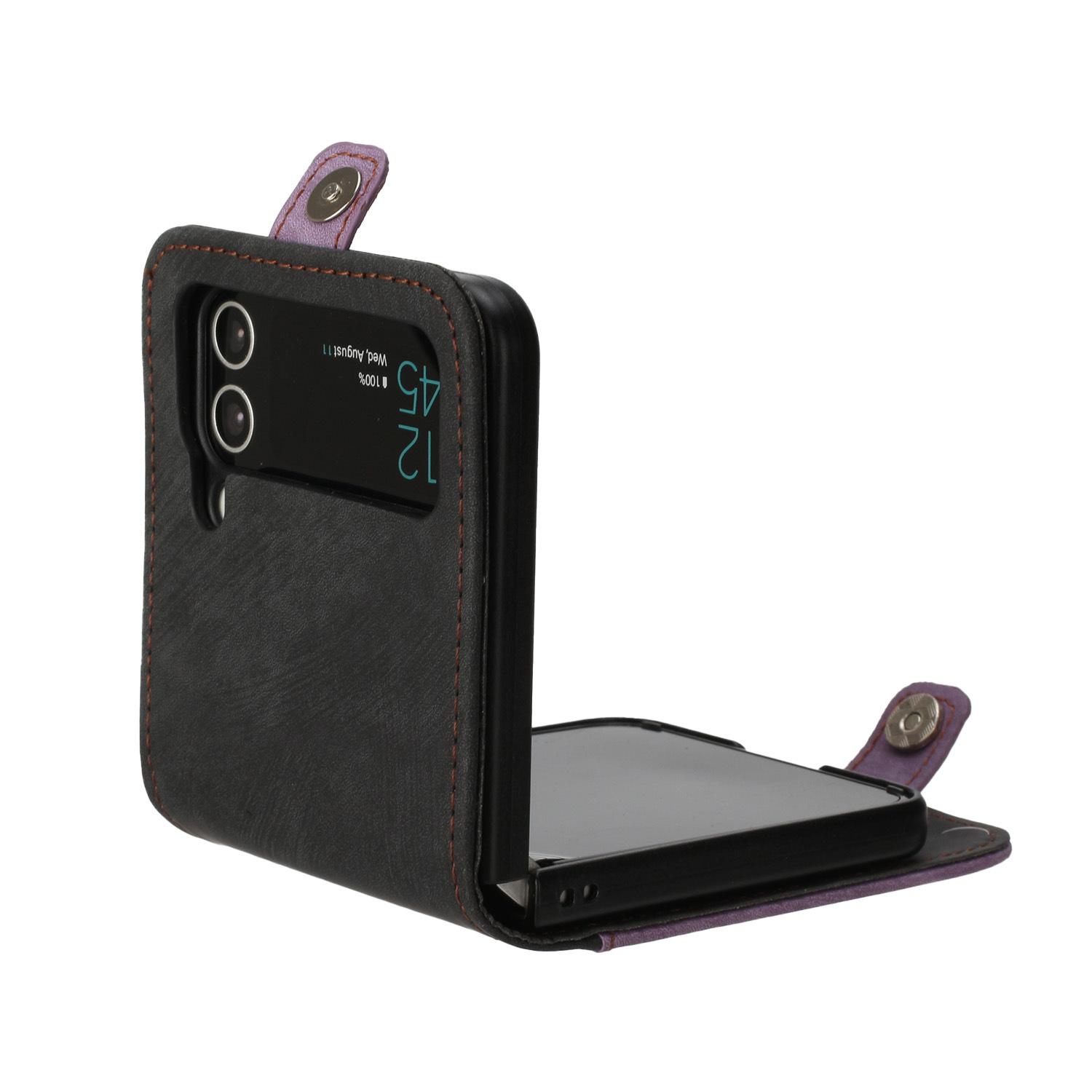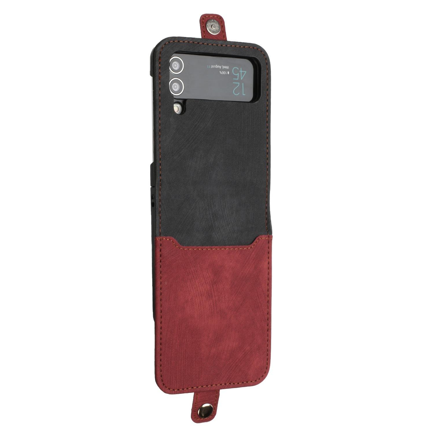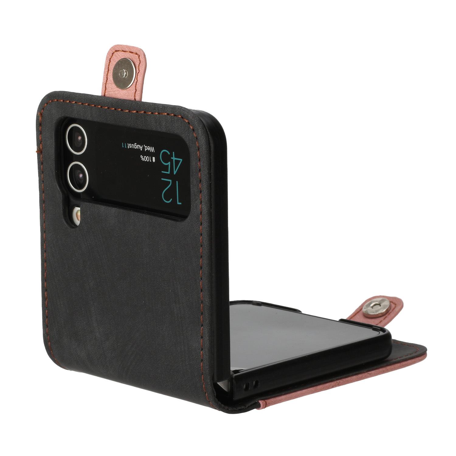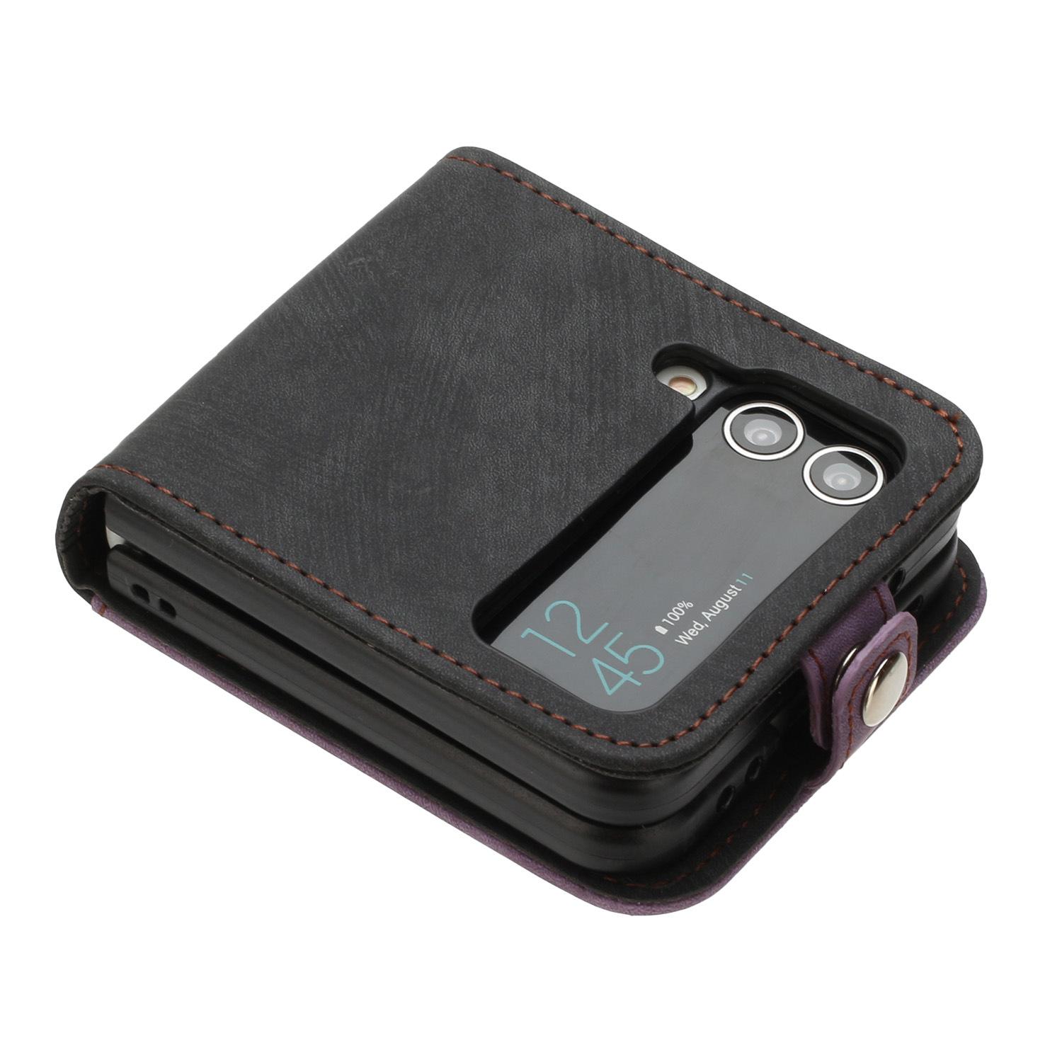 Adecuado para Samsung Z flip 6, funda de cuero para teléfono móvil con hebilla lateral y pantalla plegable hacia arriba y hacia abajo, Z flip 4/3, tarjeta