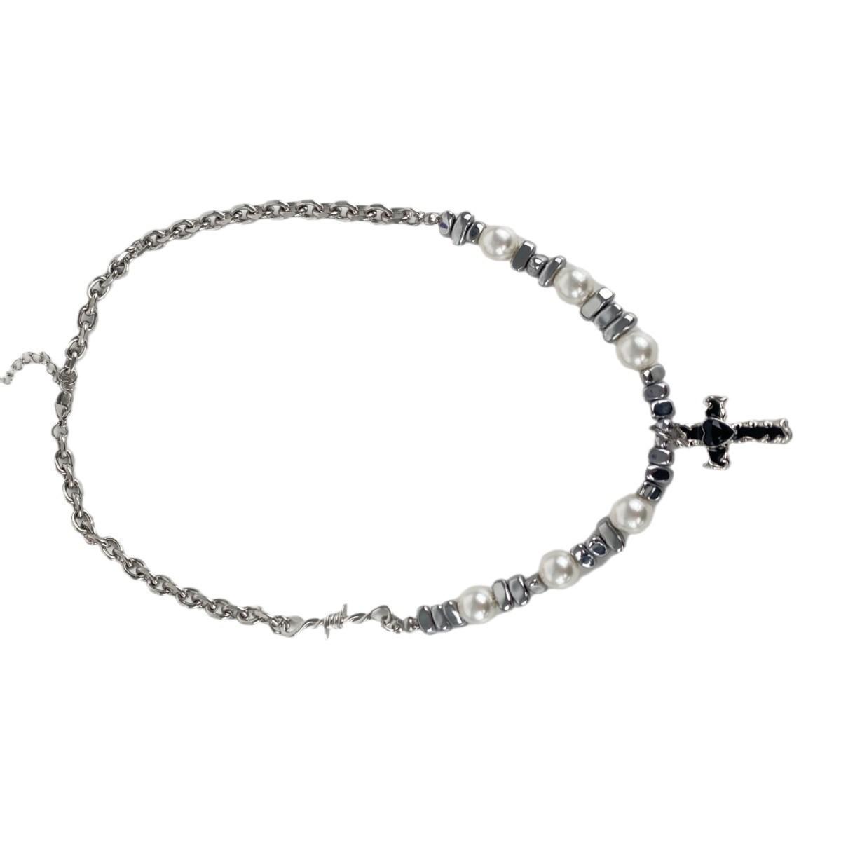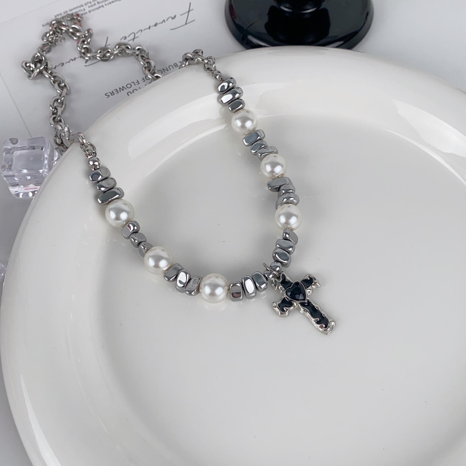 Black gallstone steel chain imitation pearl