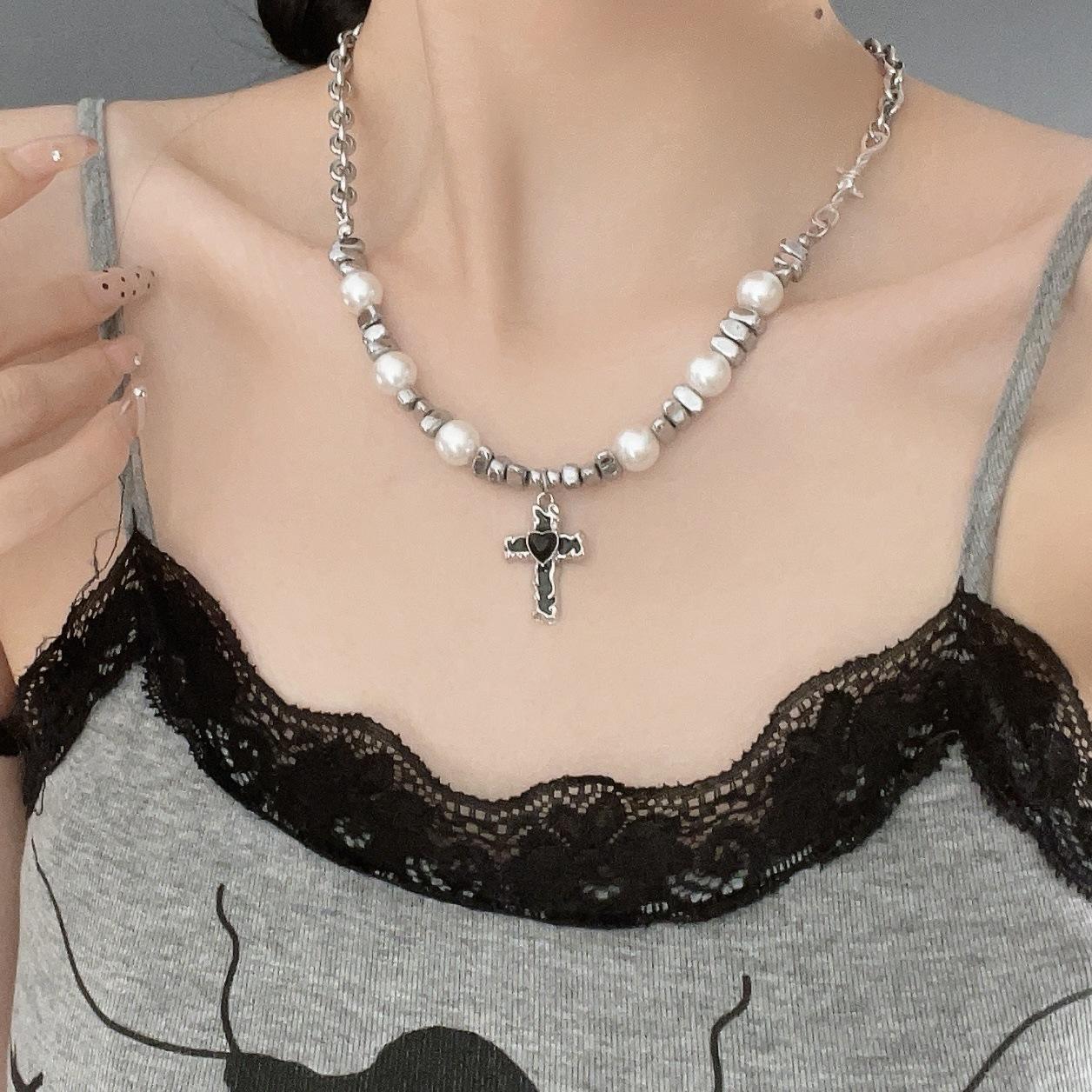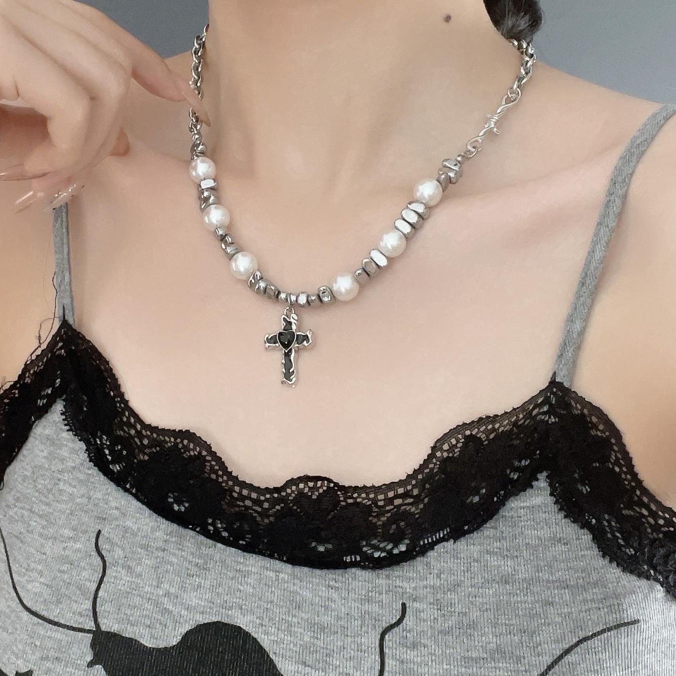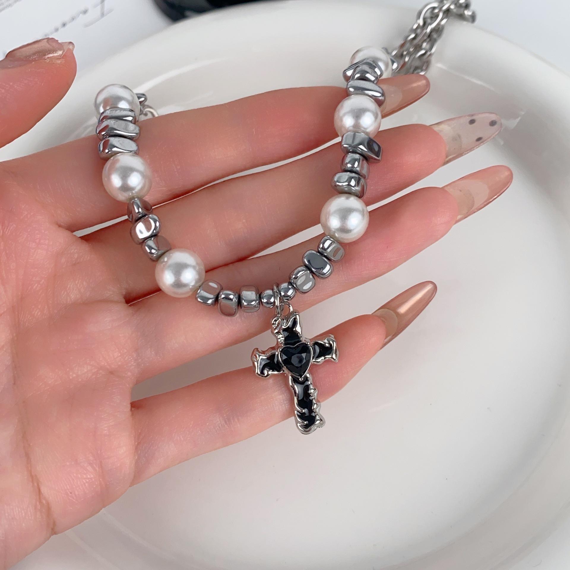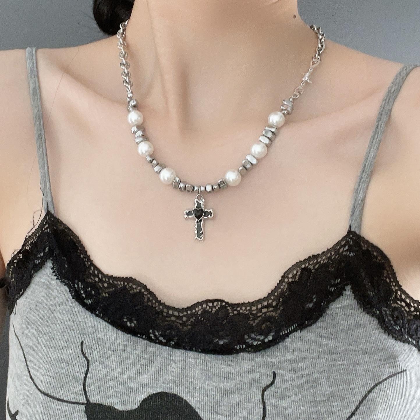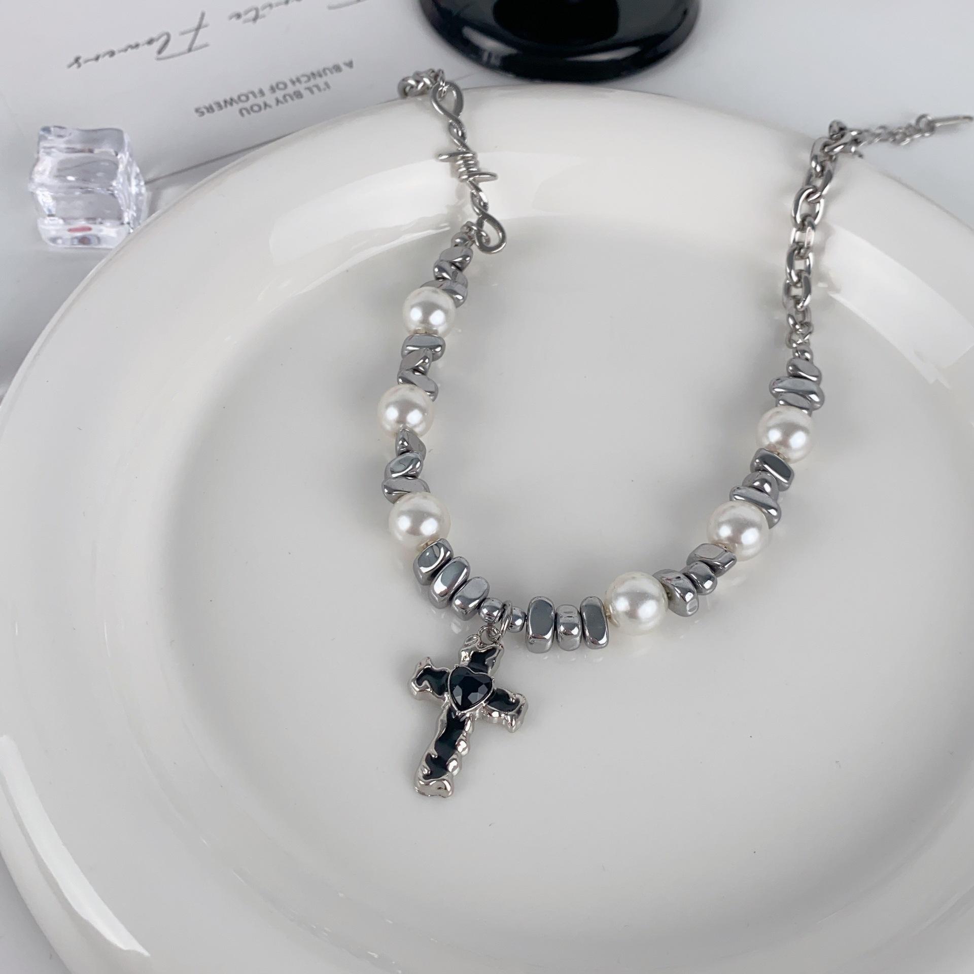 Cross pearl necklace