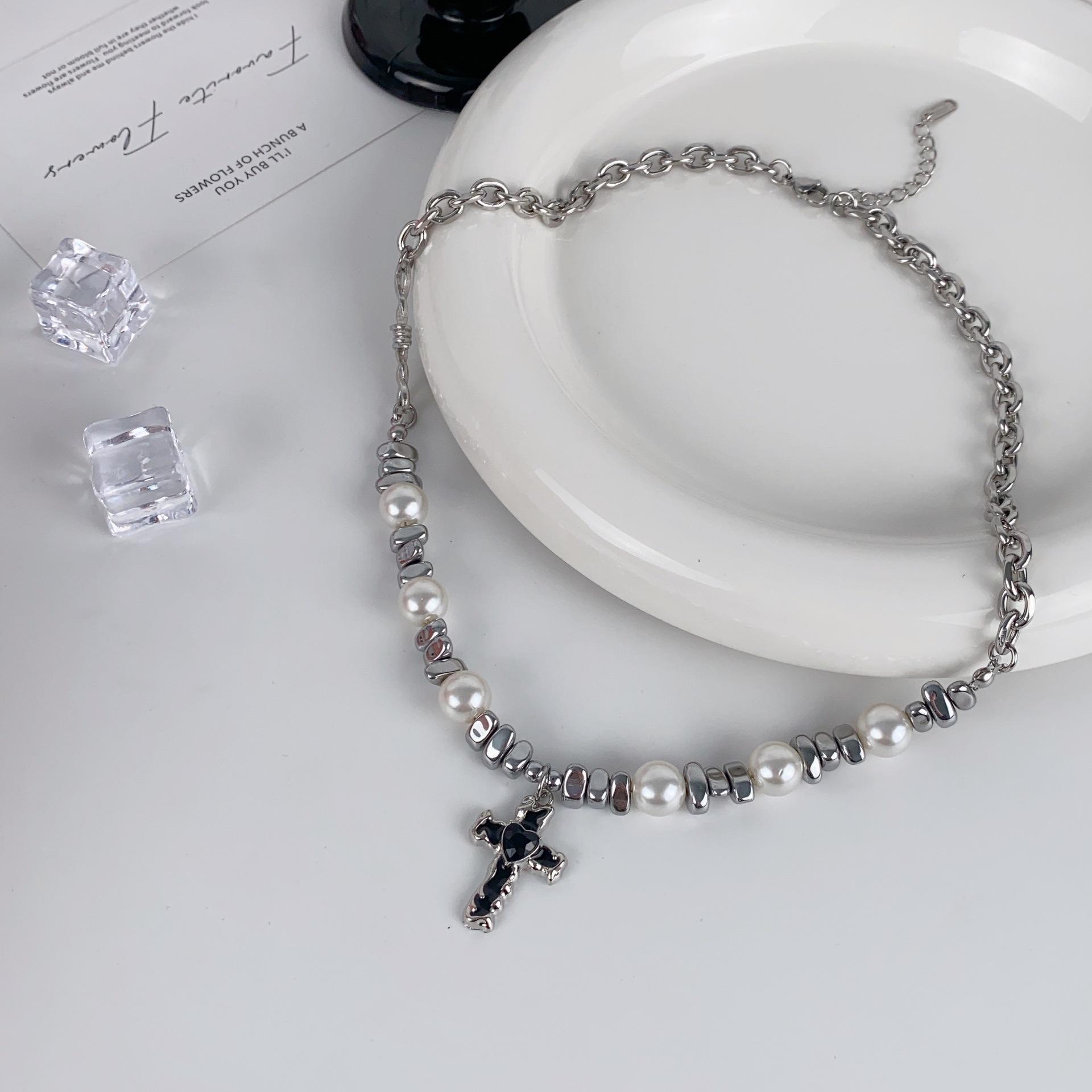 Collar de perlas cruzadas para mujer, cadena de clavícula de acero de titanio de alta gama, diseño de nicho, gargantilla, joyería