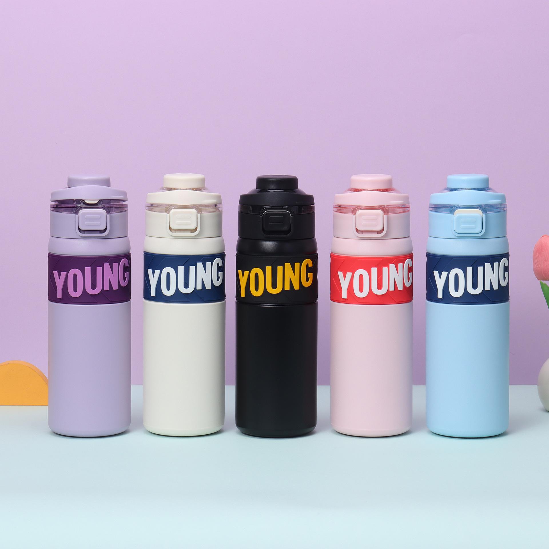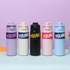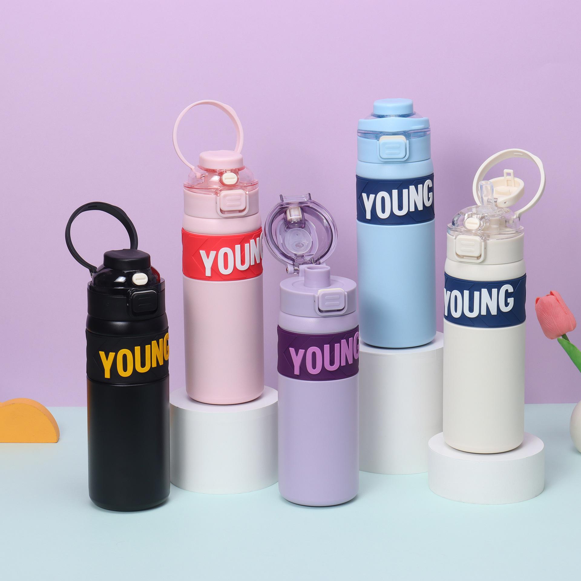 Termo de acero inoxidable 304 nuevo transfronterizo, taza deportiva para agua de alto valor cromático, portátil para coche, taza con popote para beber doble, venta al por mayor