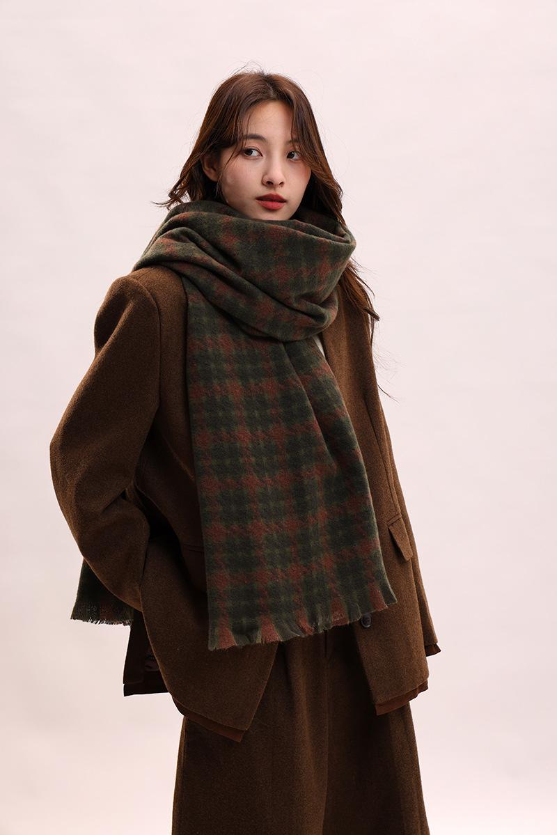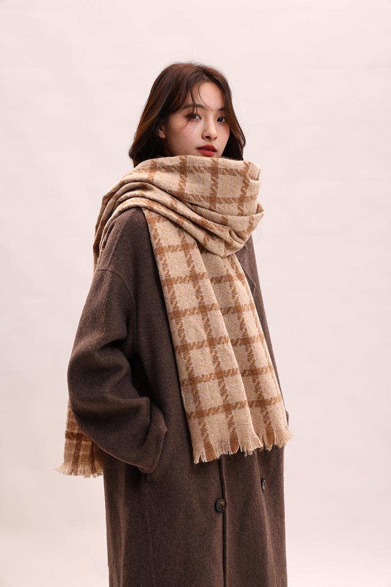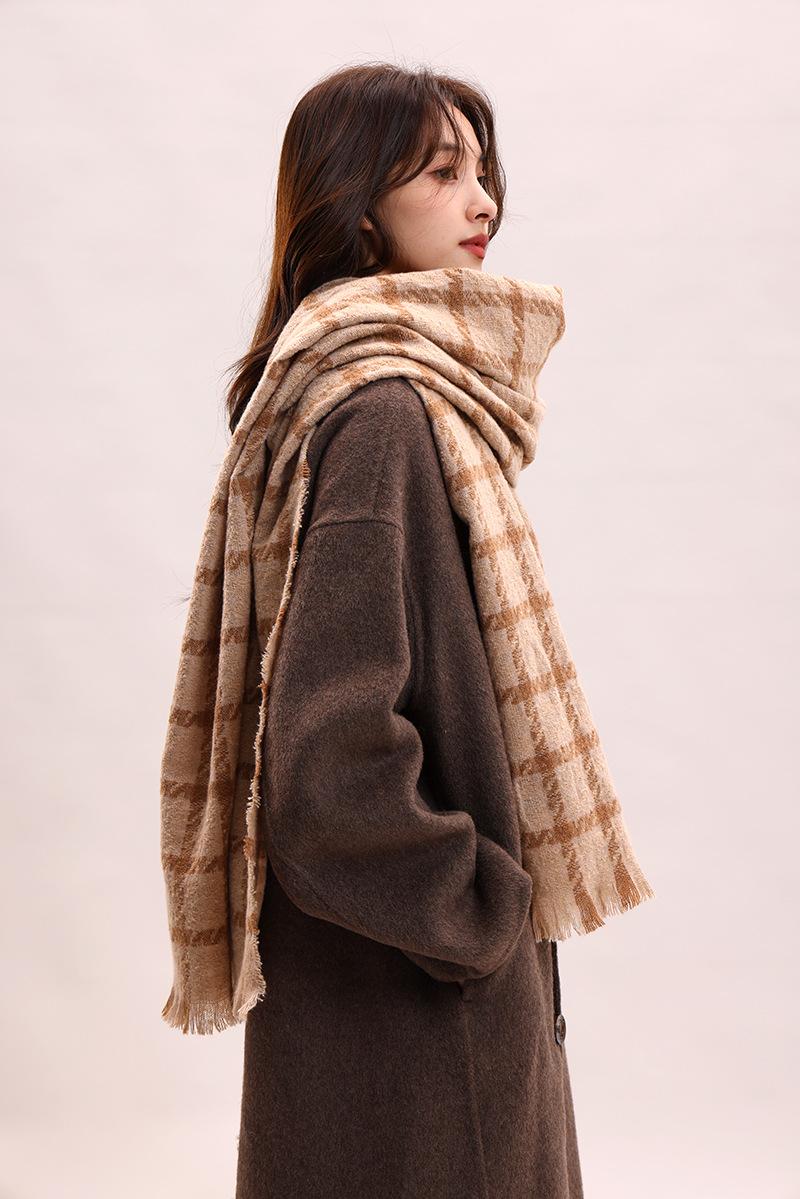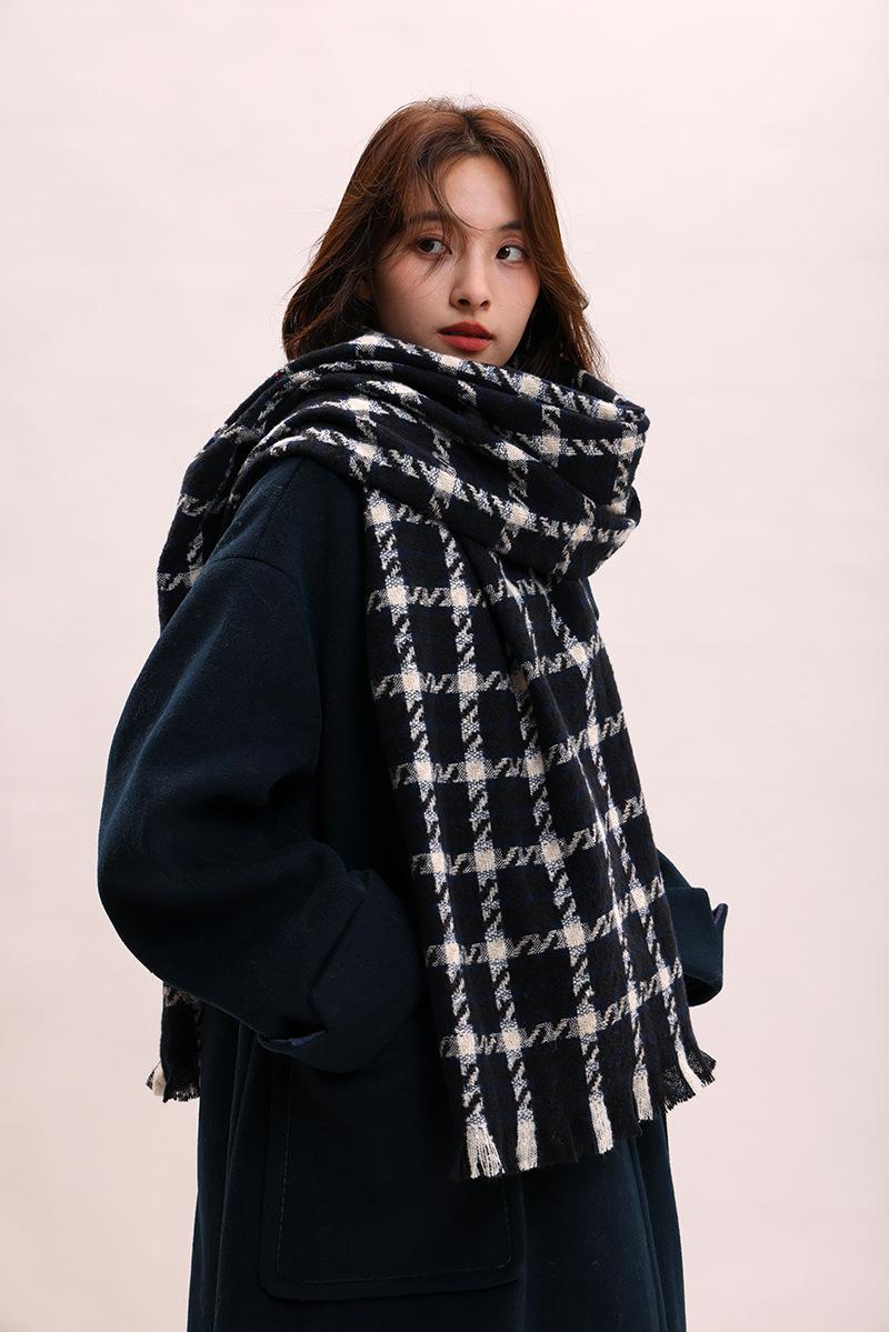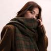 Bufanda retro a cuadros para niñas, chal largo, grueso, versátil y de invierno, ideal para estudiantes.