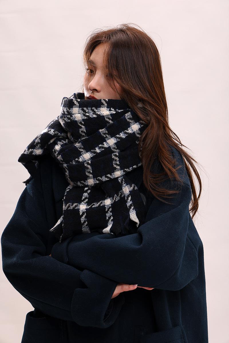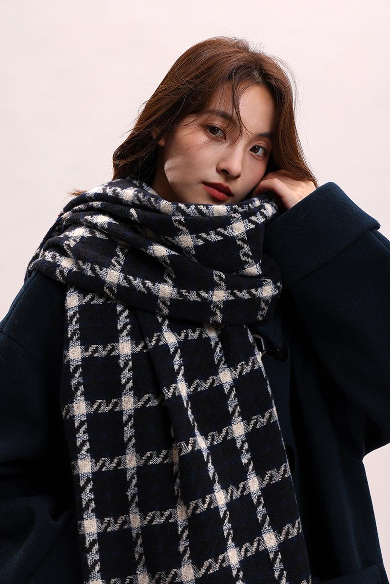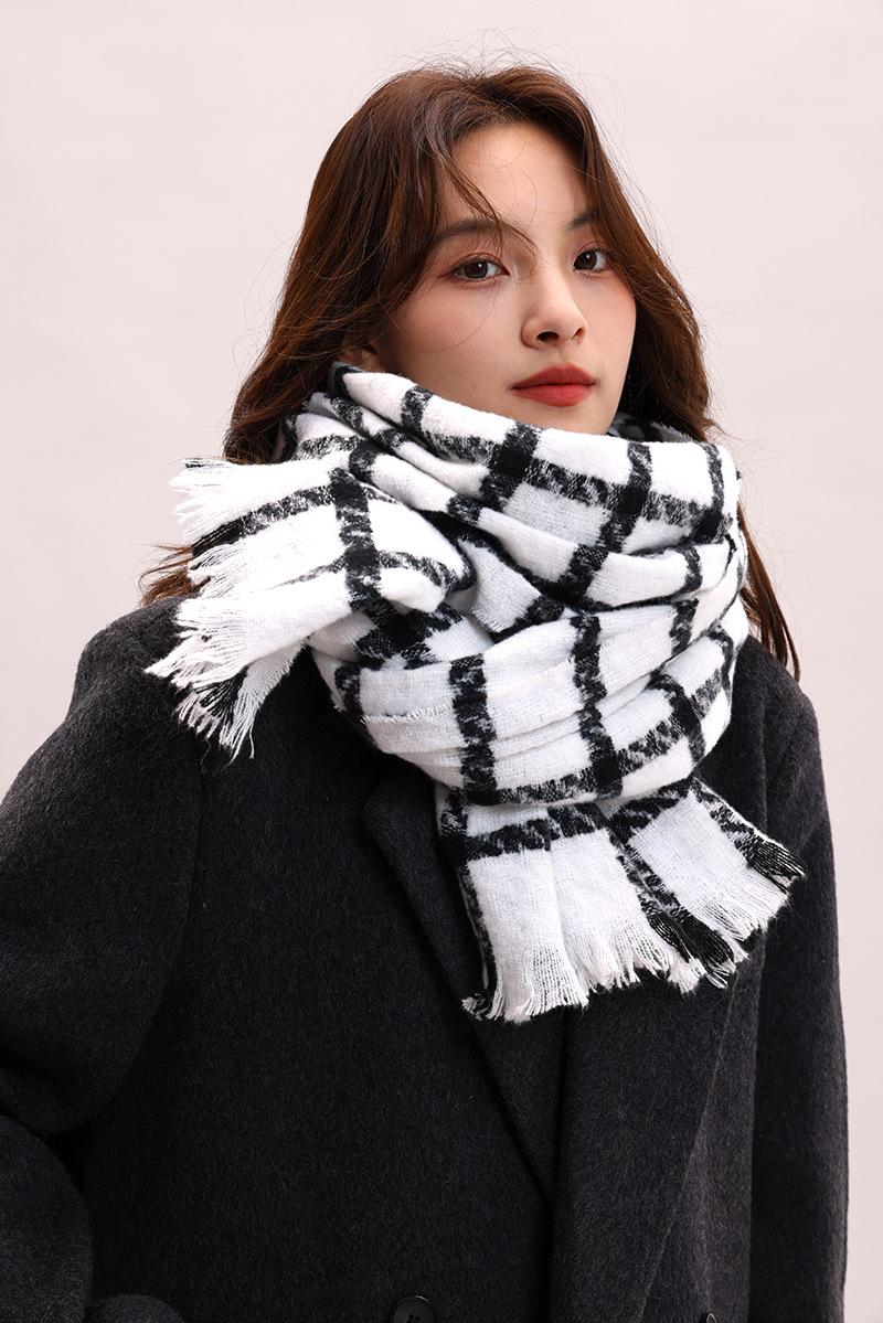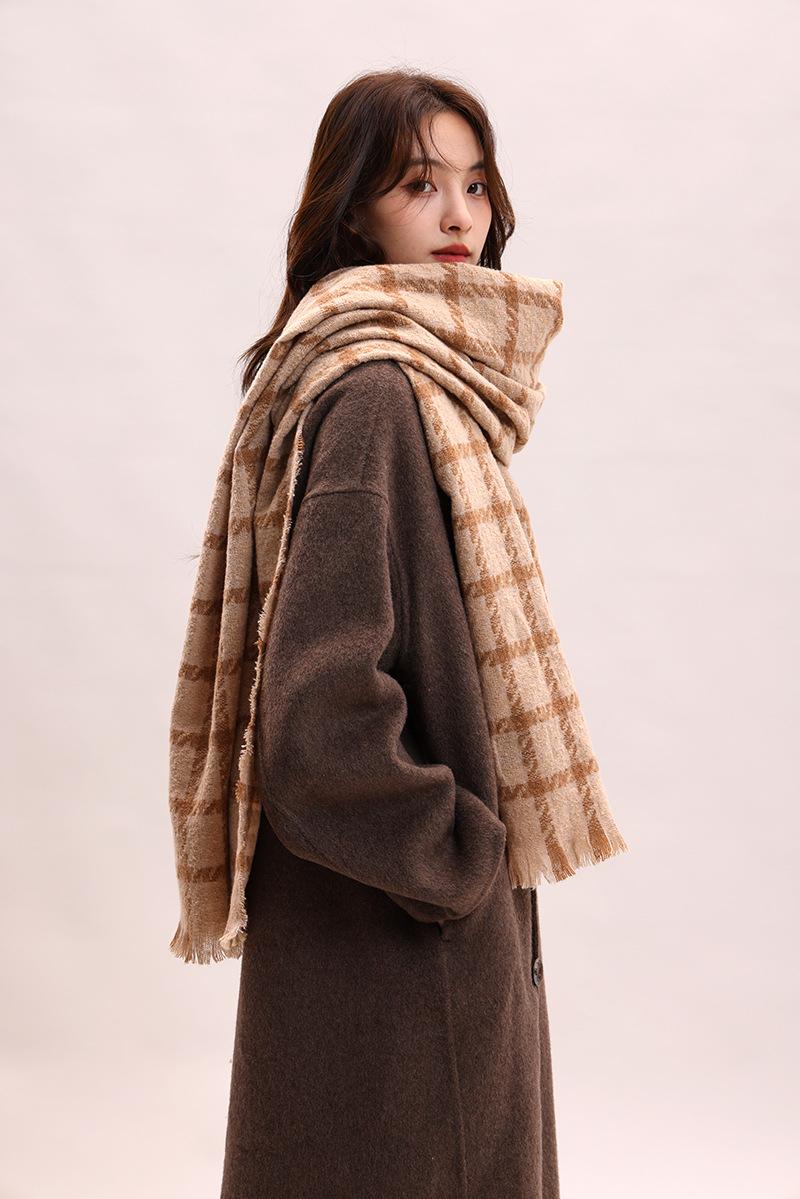 Bufanda retro a cuadros para niñas, chal largo, grueso, versátil y de invierno, ideal para estudiantes.