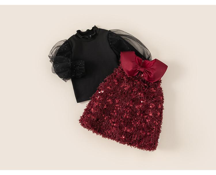 Ropa infantil Yu Bao para niñas, falda de princesa con lentejuelas de dos piezas, falda para un año de edad, vestido de invierno de alta gama, chaleco, ropa para presentación