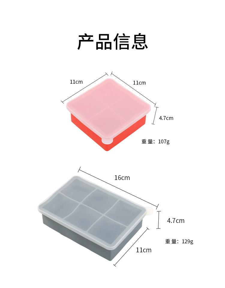 Molde de hielo cuadrado de silicona de 4 agujeros con tapa, fácil de desmoldar, molde de hielo de silicona para whisky congelado de 6 agujeros para hockey sobre hielo