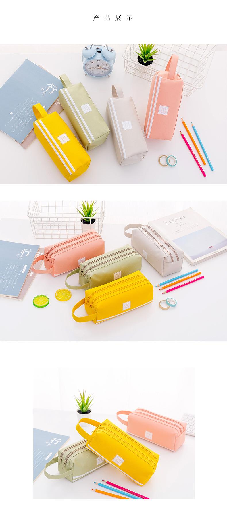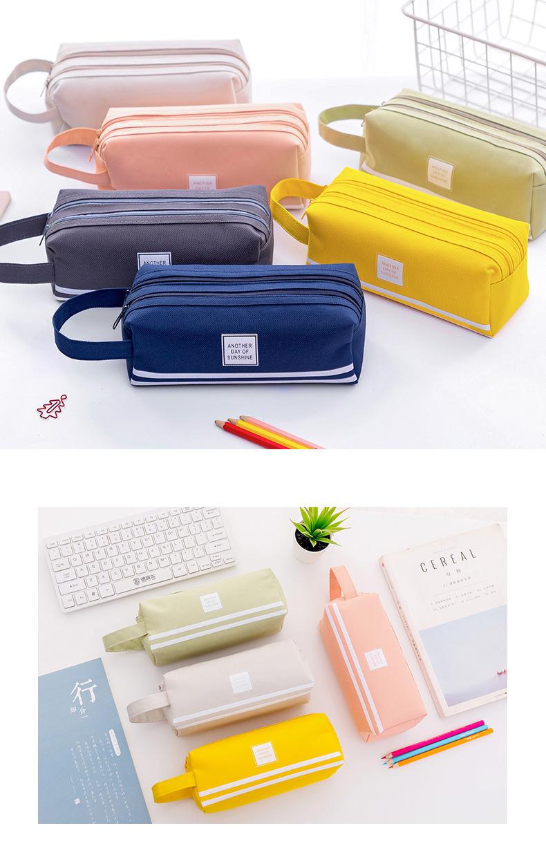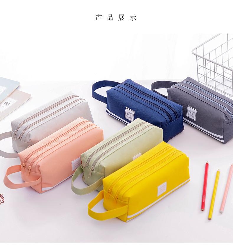 Nueva y creativa bolsa para lápices de doble capa, de gran capacidad, para estudiantes, de tela Oxford, sencilla, con doble cremallera, personalizable.
