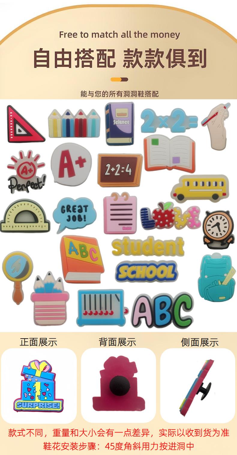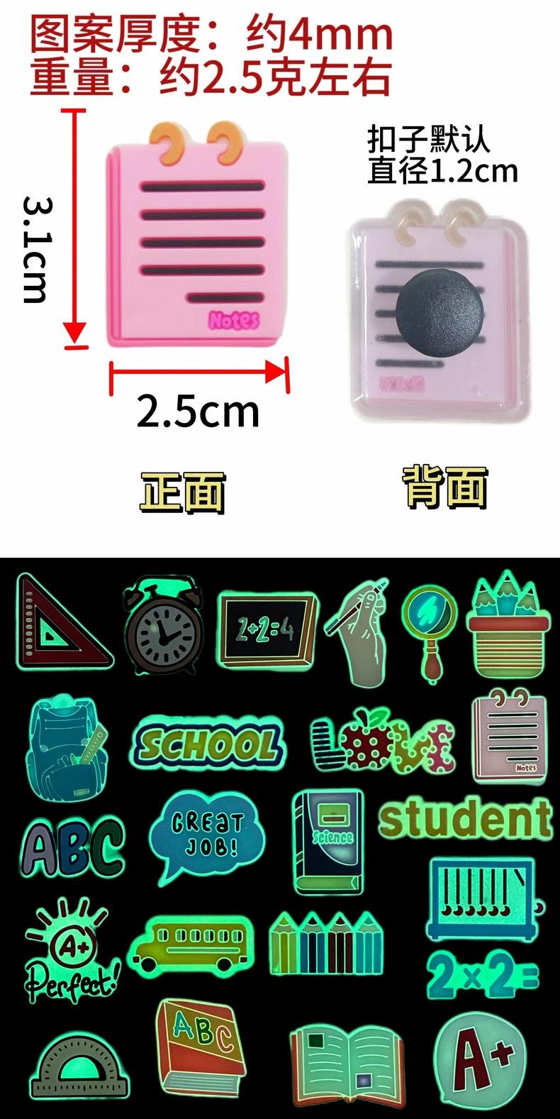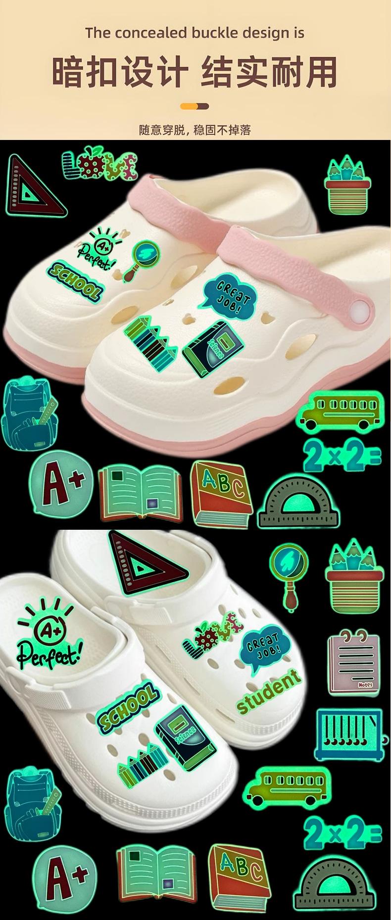 Nueva serie de suministros de aprendizaje luminosos, zapatos con agujeros, hebilla de zapato de goma suave de dibujos animados, accesorios para zapatos, zapatos con agujeros, hebilla decorativa