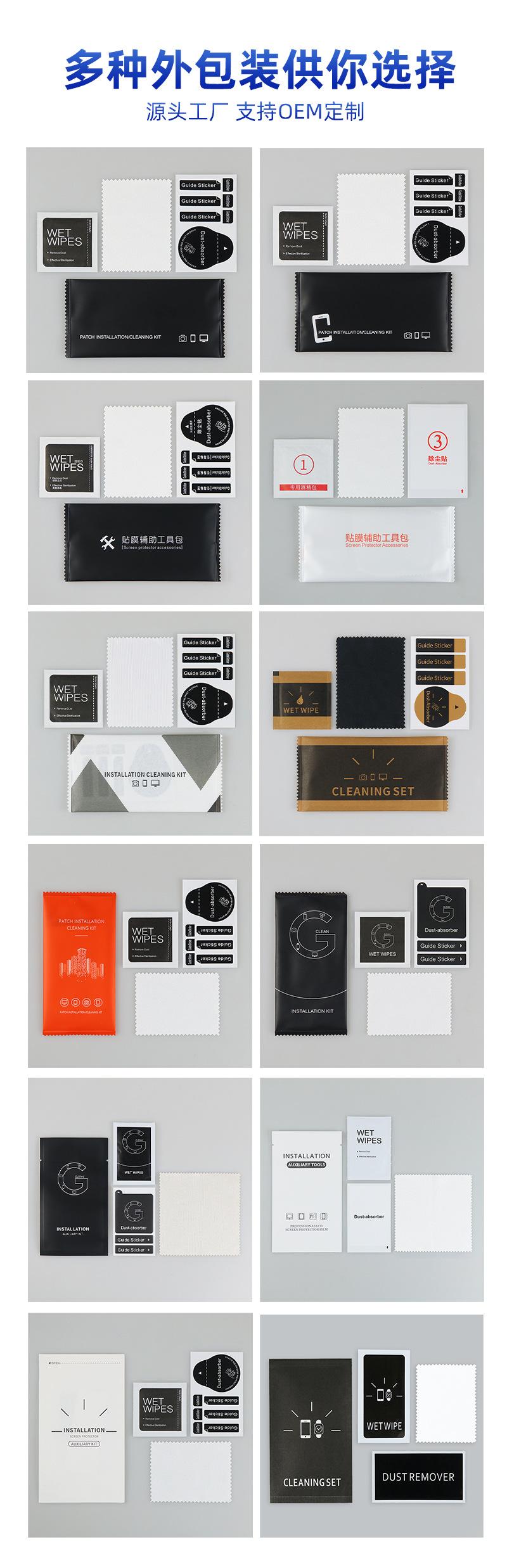 Toallitas limpiadoras de pantallas de teléfonos móviles de exportación transfronteriza, empaquetadas individualmente, para limpieza eficiente de pantallas digitales. |