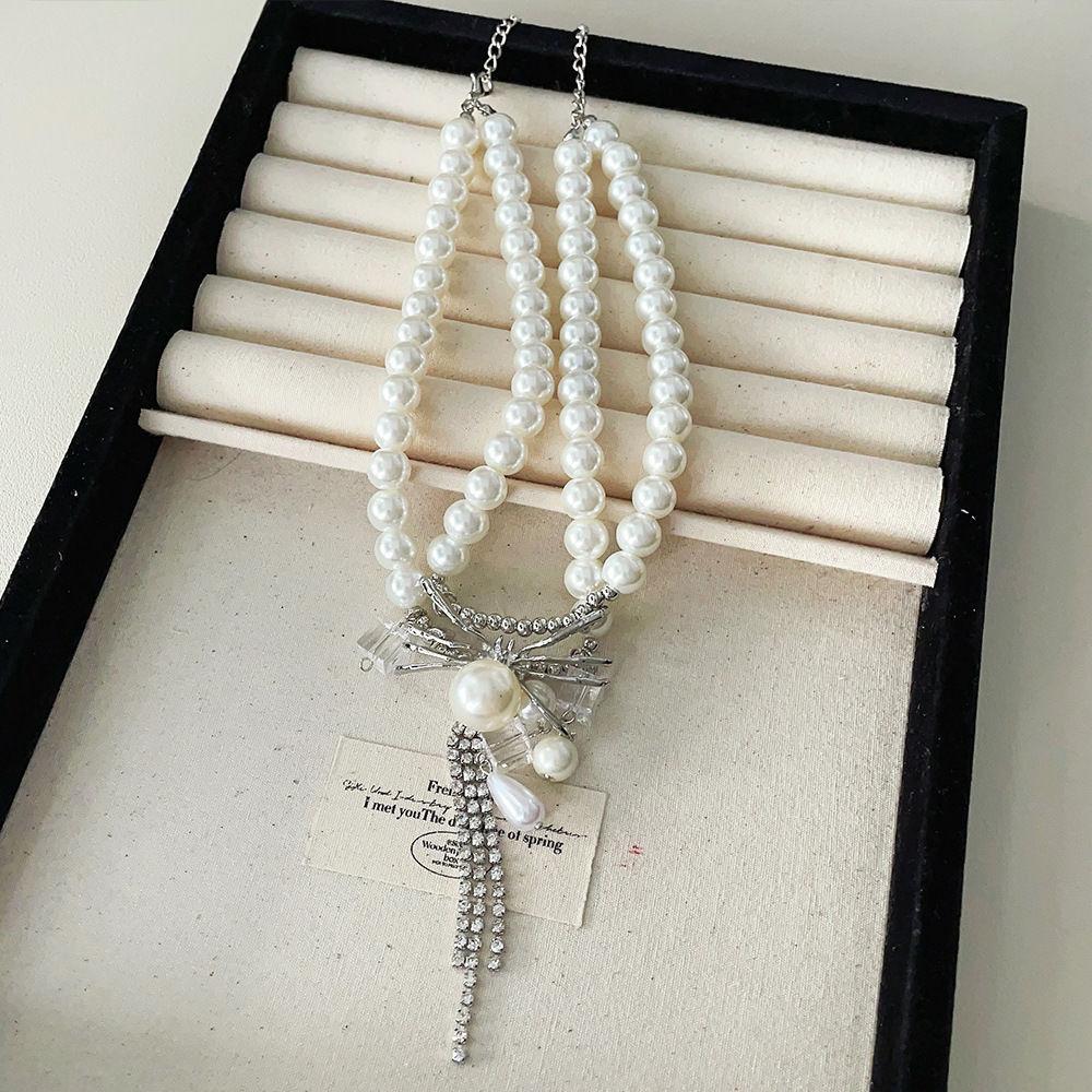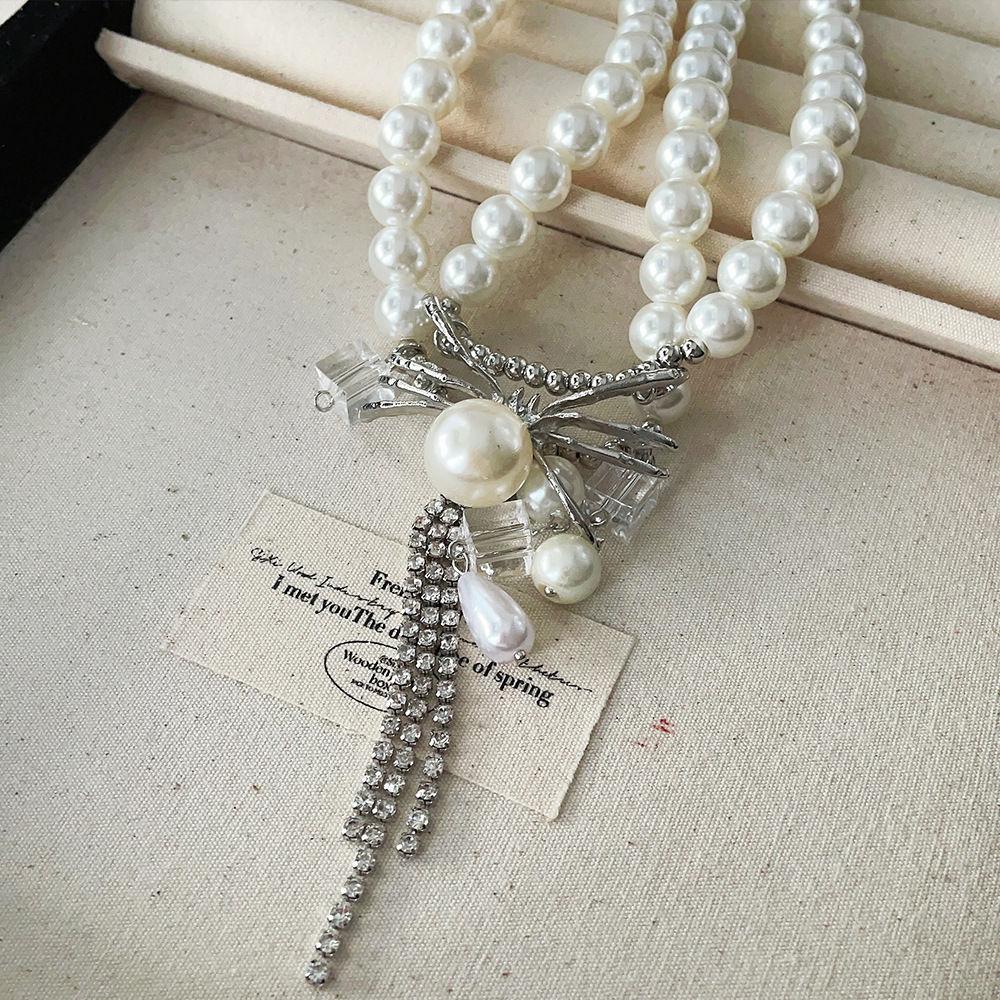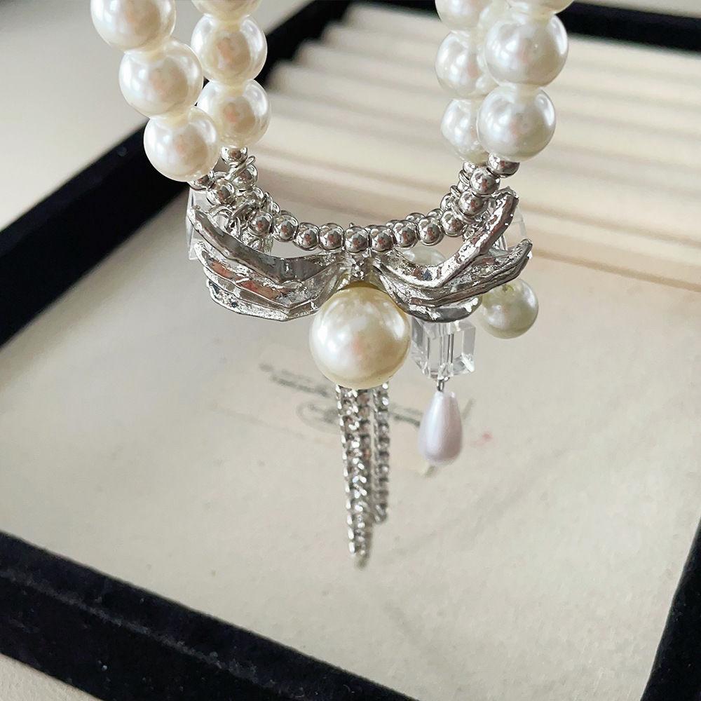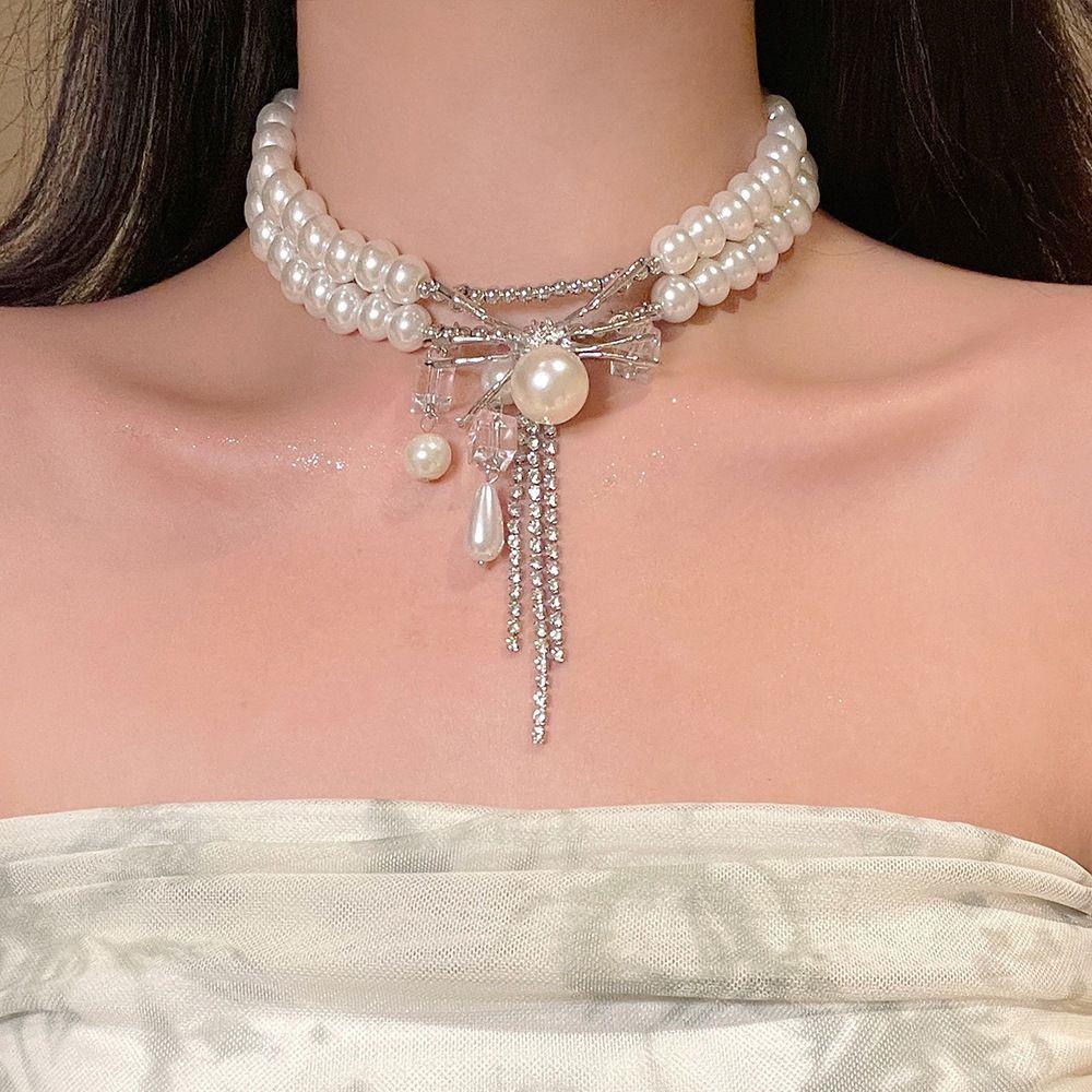 Collar con colgante de borla de araña de perla, diseño de nicho dulce y moderno, cadena de clavícula apilada de múltiples capas de lujo para mujer