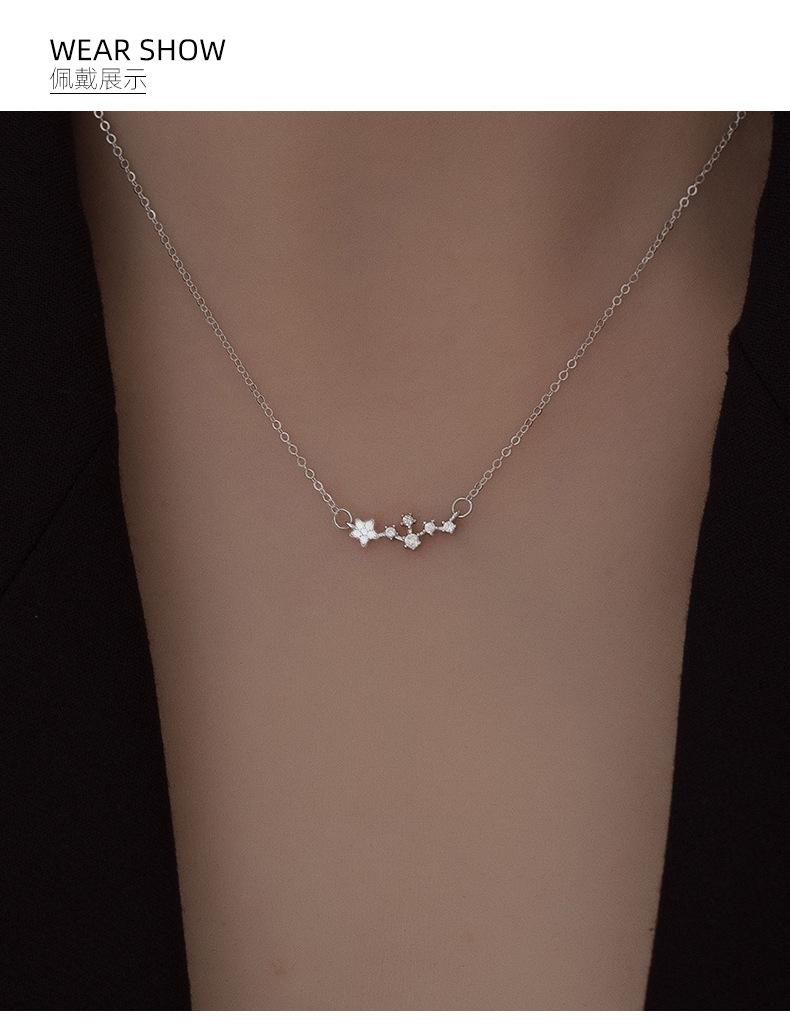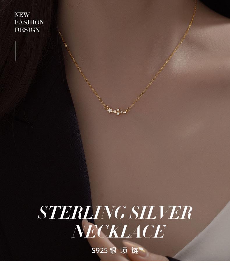 Collar de estrellas brillantes de plata esterlina S925, ligero, de lujo, de alta gama, con sensación de viento frío por todo el cielo, cadena de clavícula con estrellas, regalo de cumpleaños
