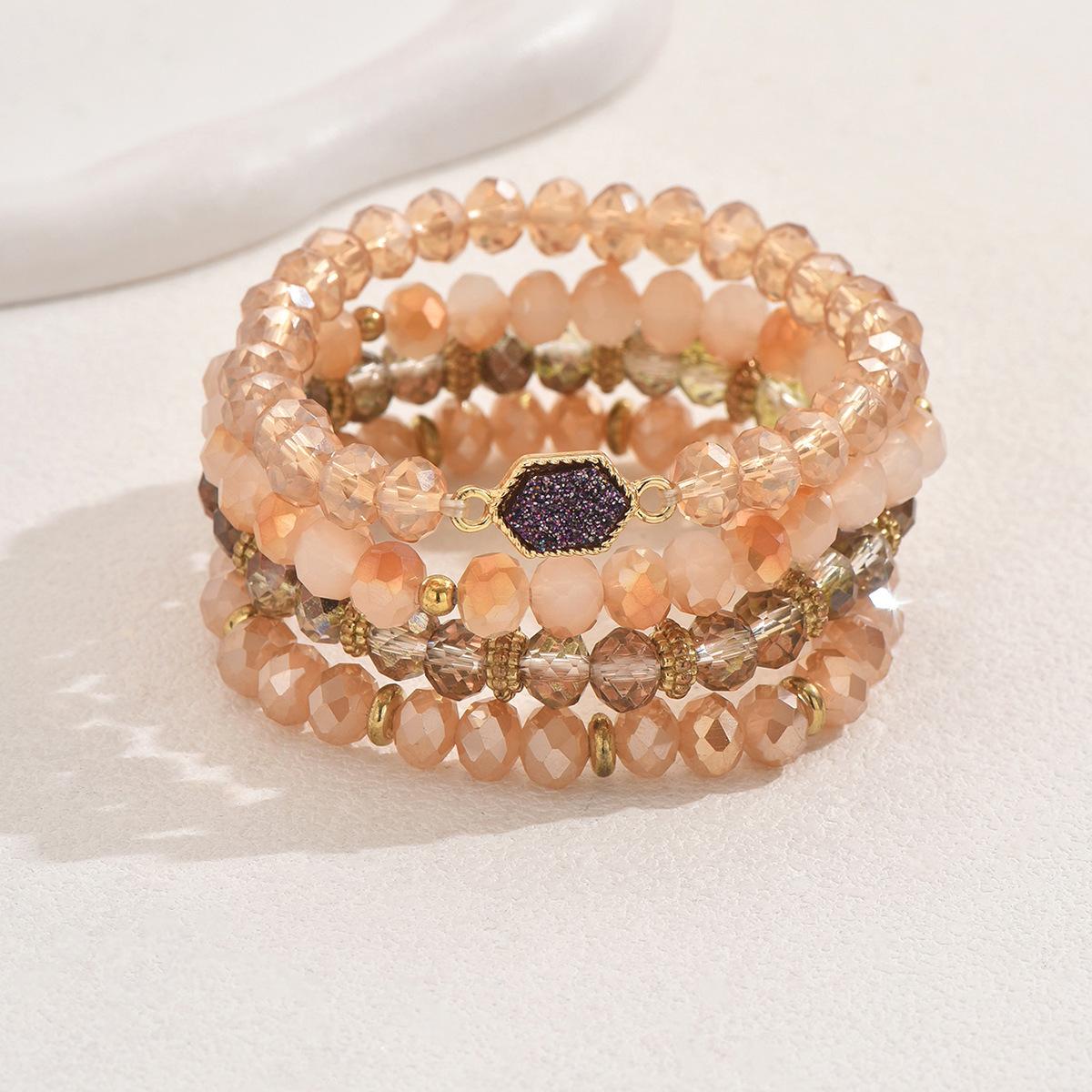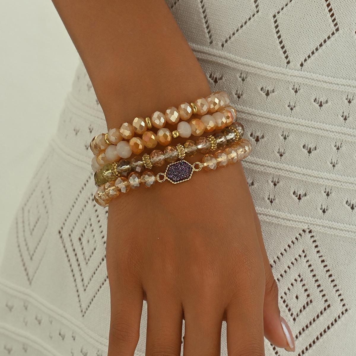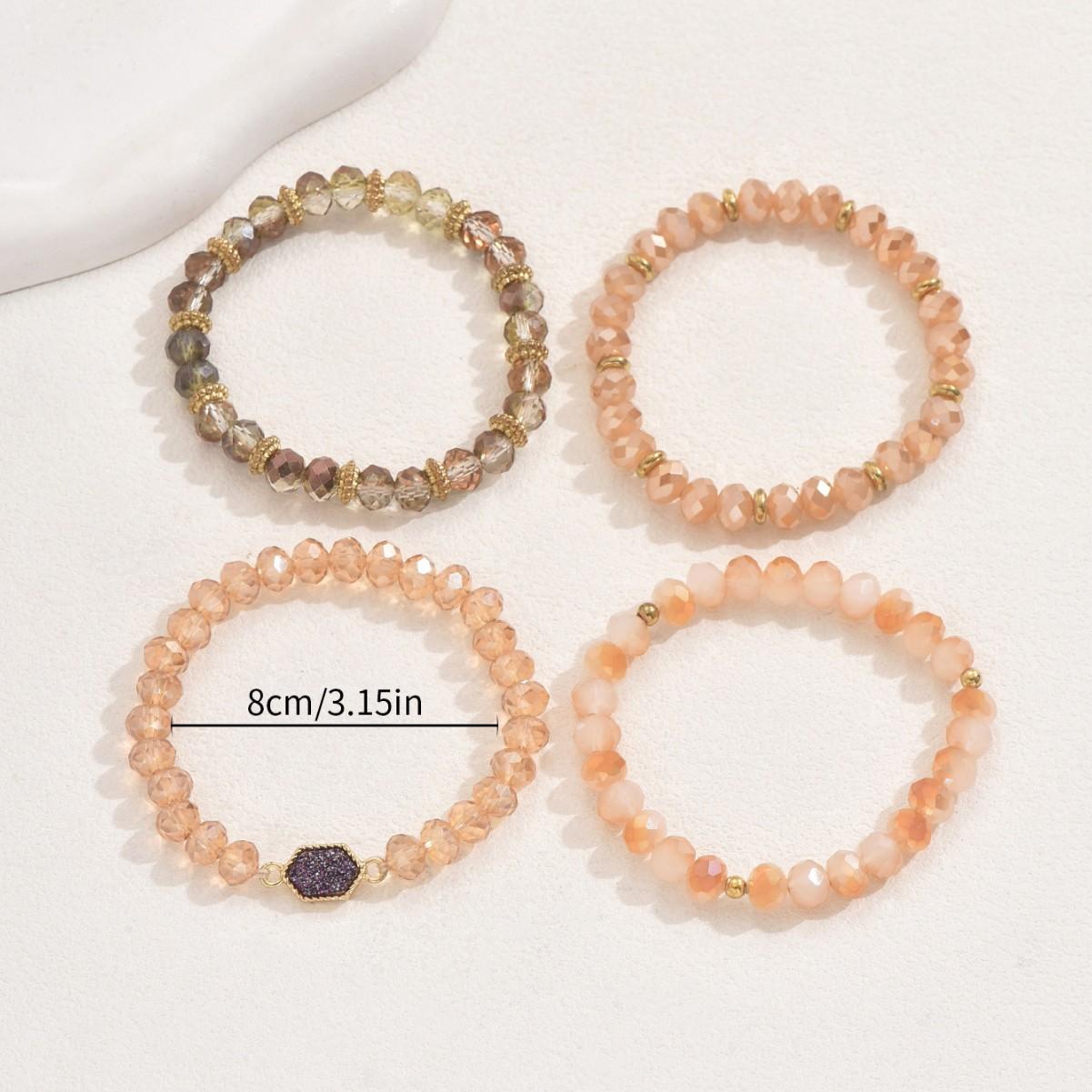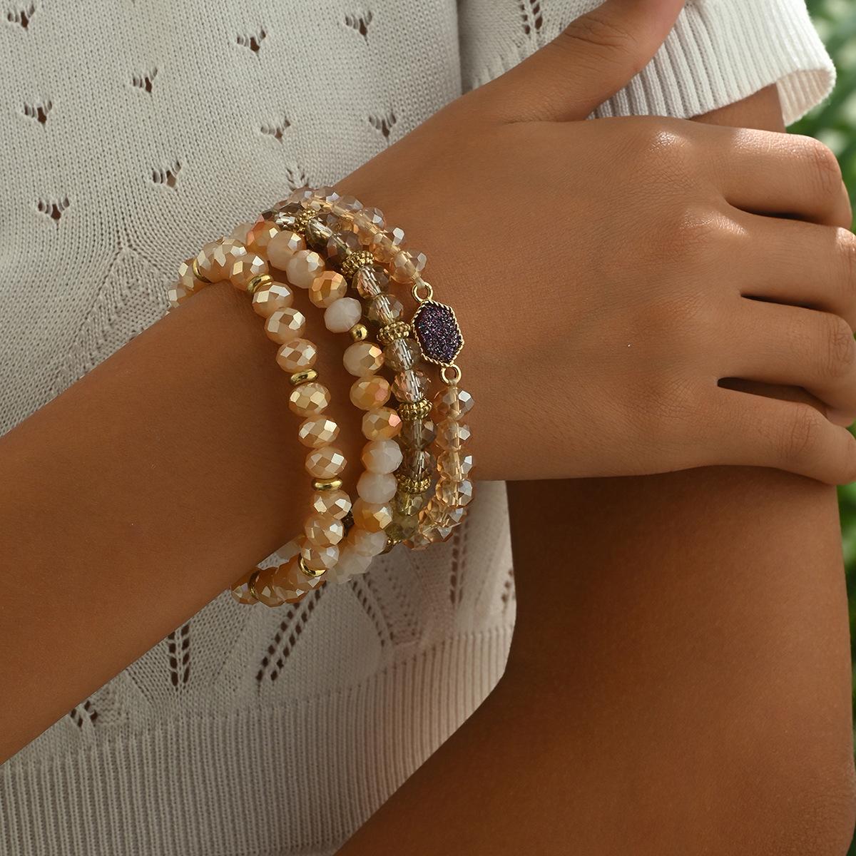 Pulsera sencilla europea y americana para damas, juego de cuatro piezas con cuentas, personalidad con incrustaciones de cristal, diseño nicho, pulsera geométrica al por mayor