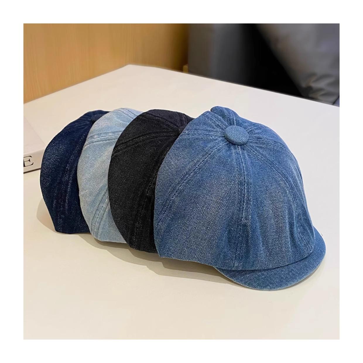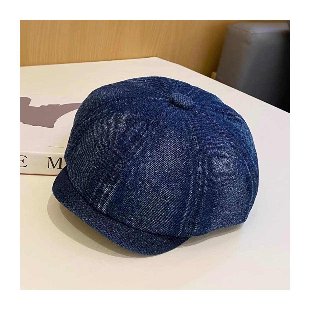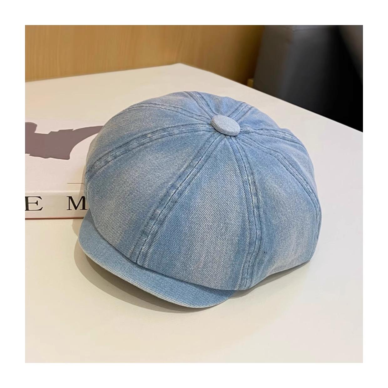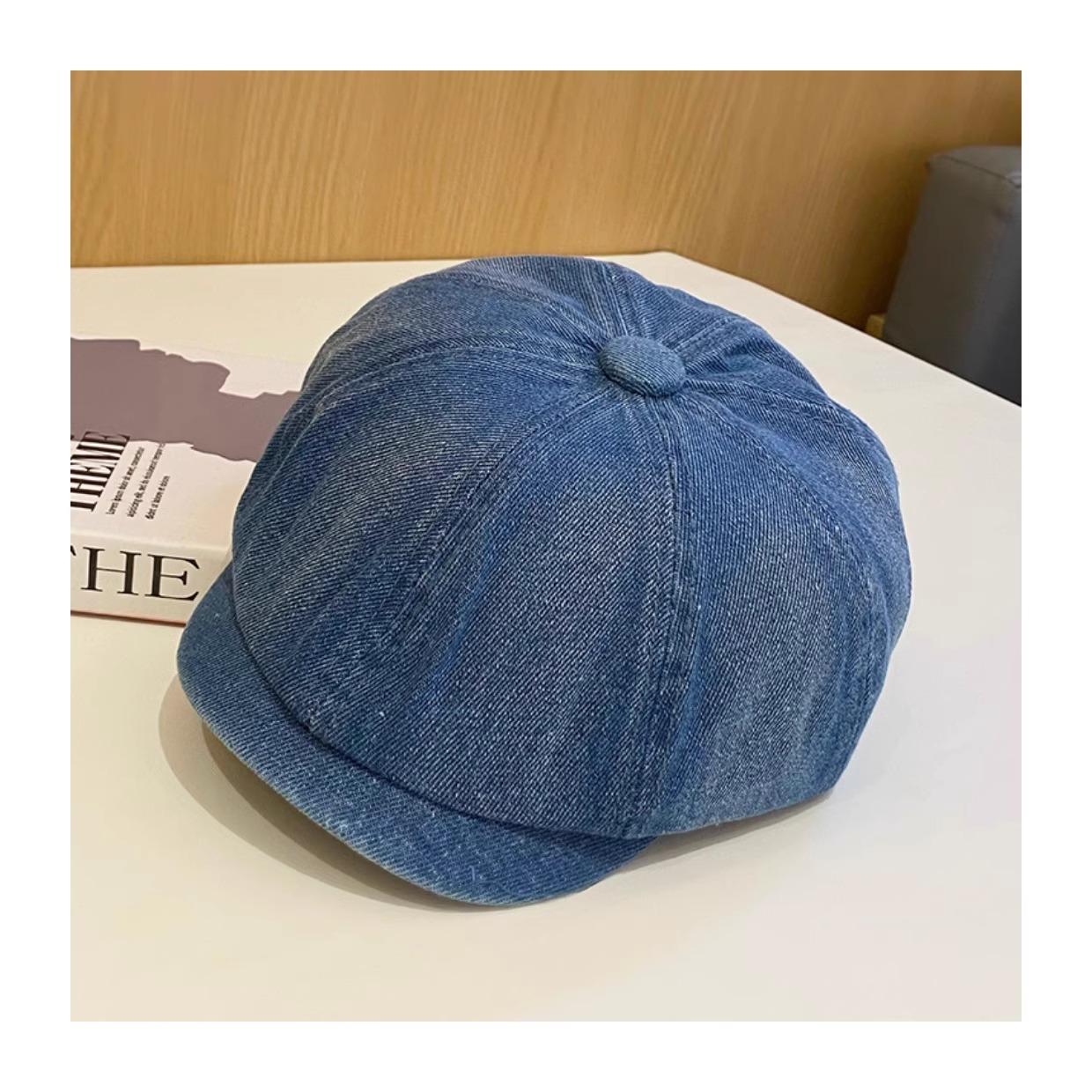 Boina Literaria de Estilo Japonés Retro de Mezclilla Octogonal Sombrero de Pintor para Mujer Versátil Moda Sombrero de Visera Sombrero Viejo