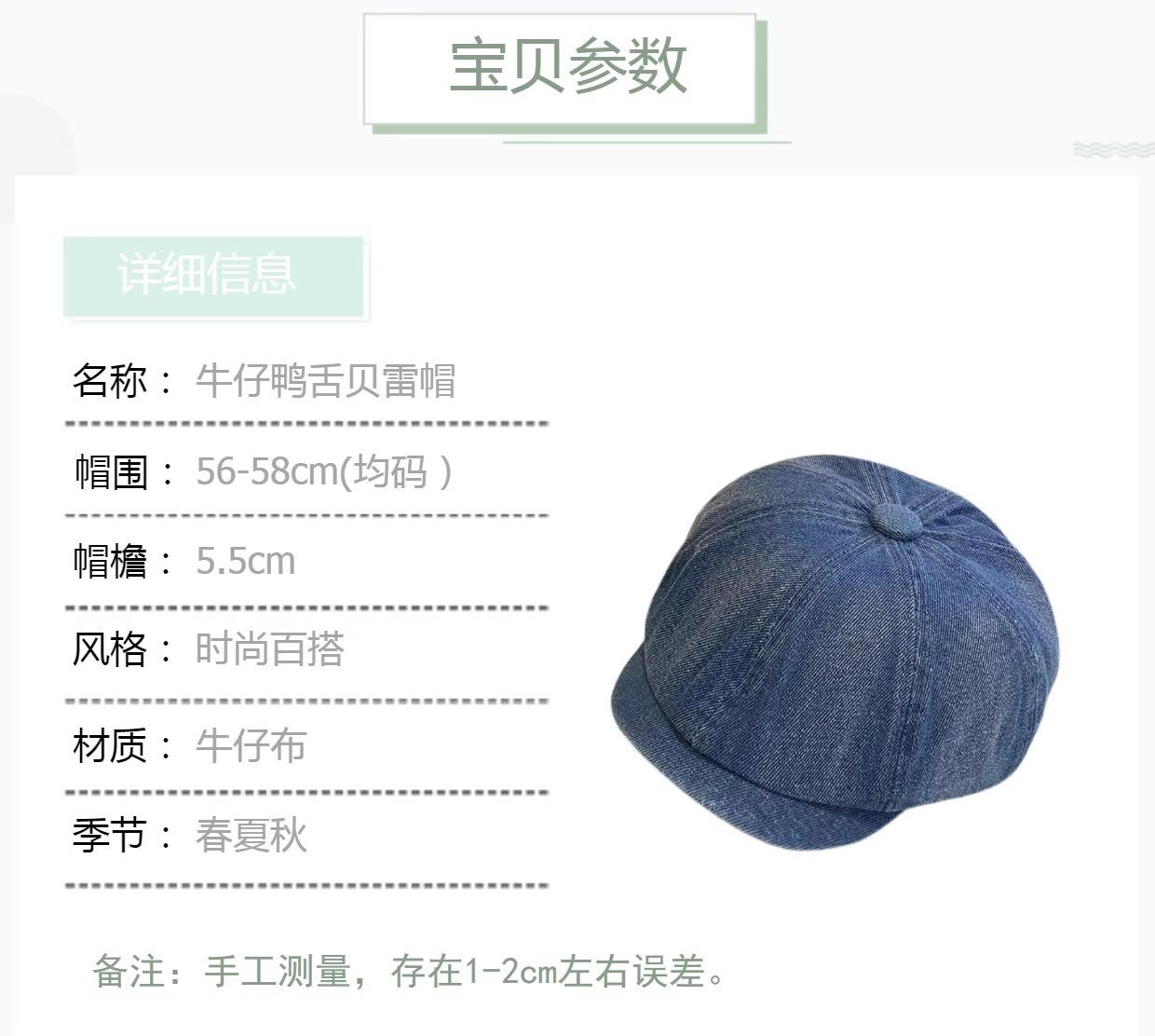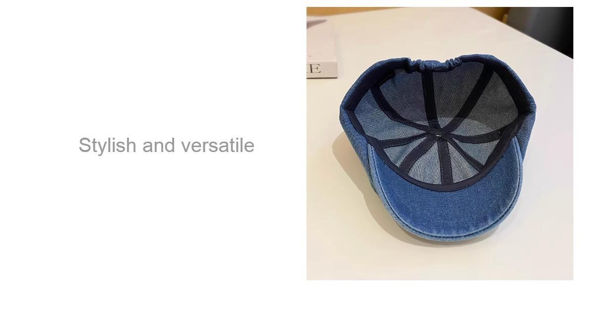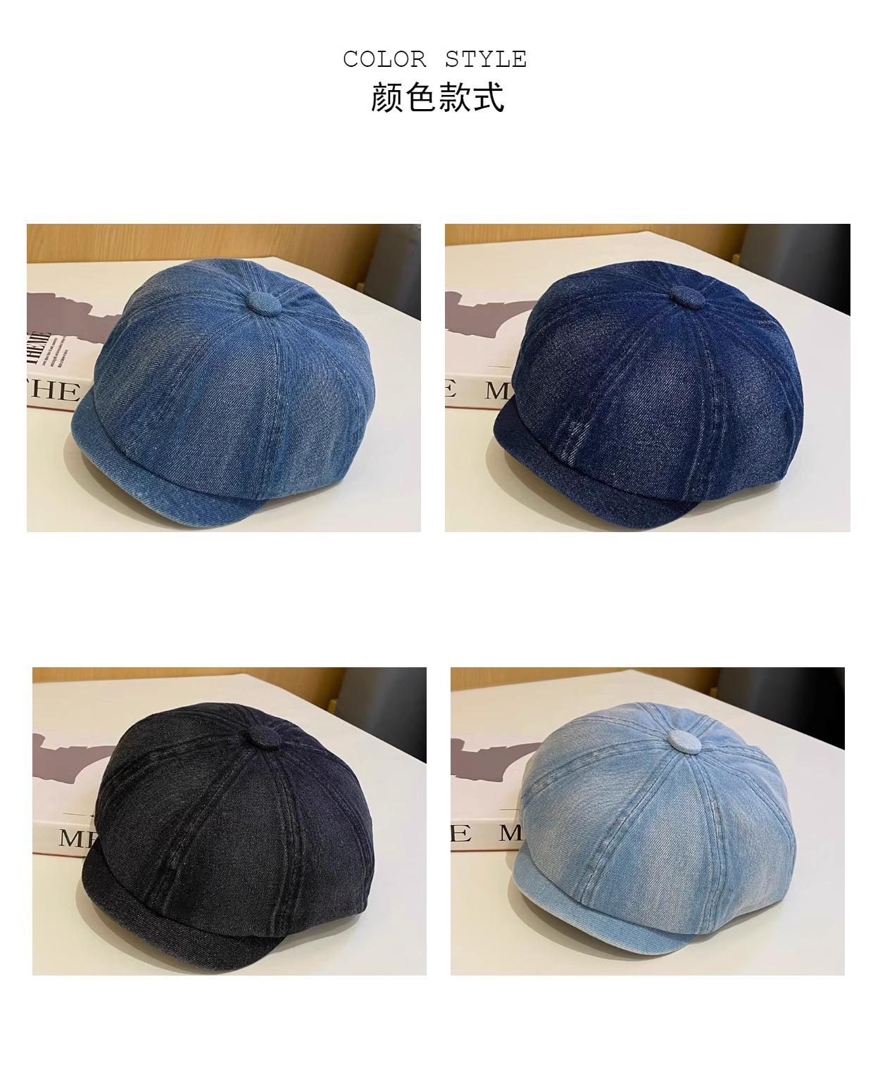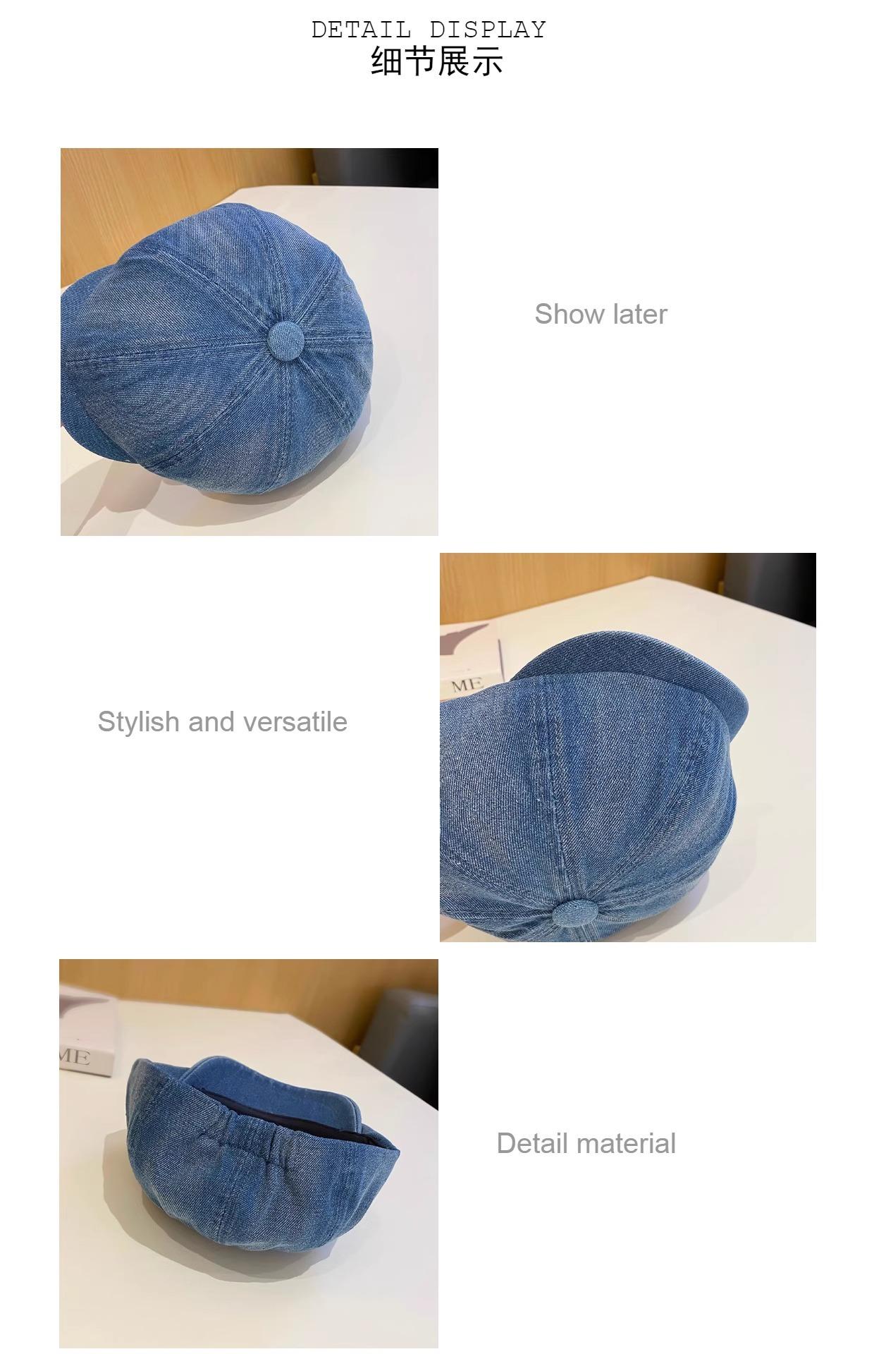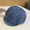 Boina Literaria de Estilo Japonés Retro de Mezclilla Octogonal Sombrero de Pintor para Mujer Versátil Moda Sombrero de Visera Sombrero Viejo