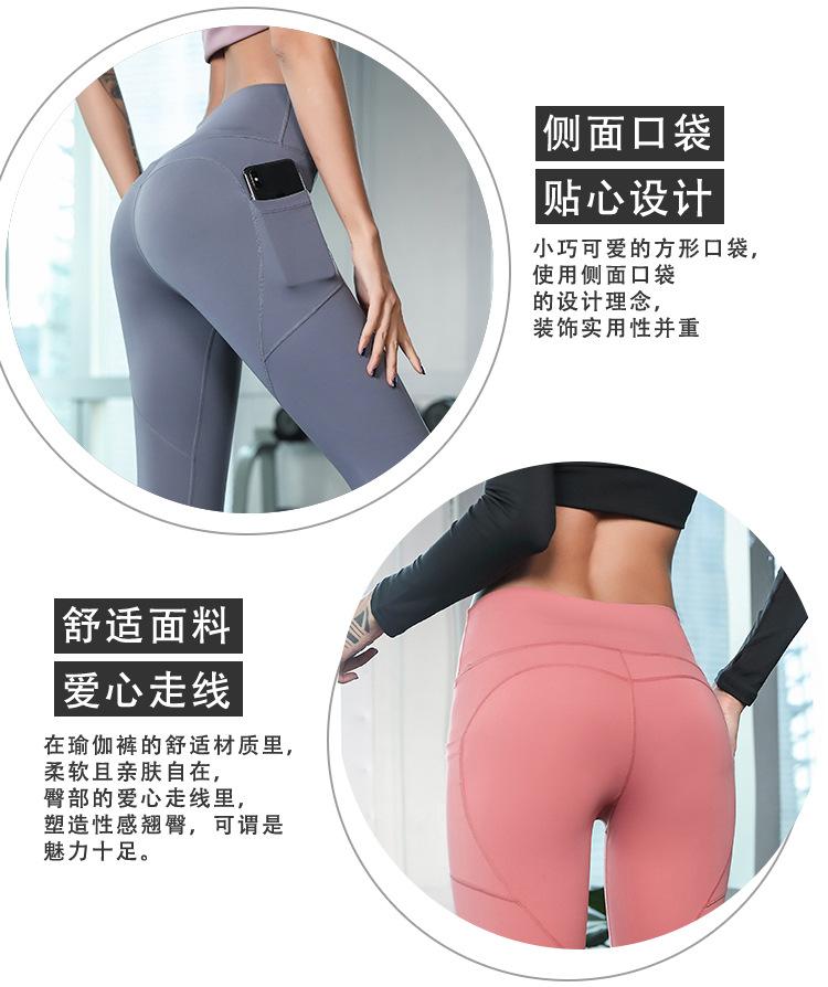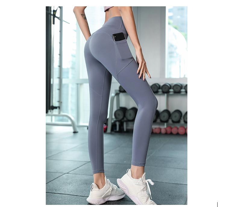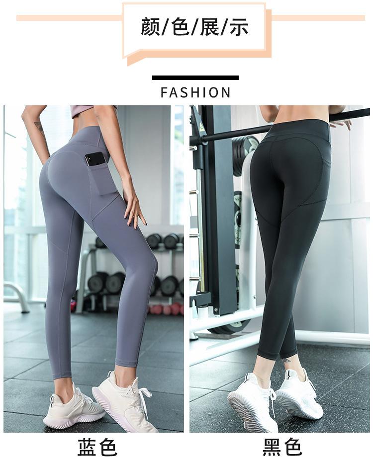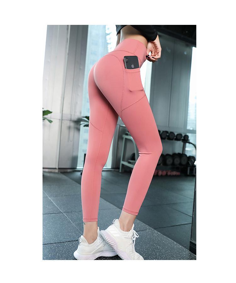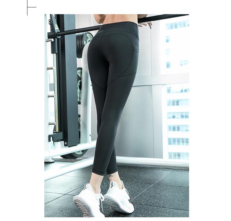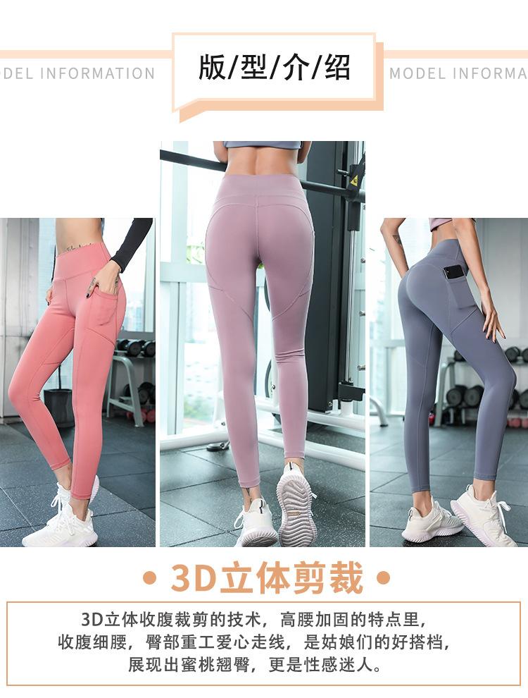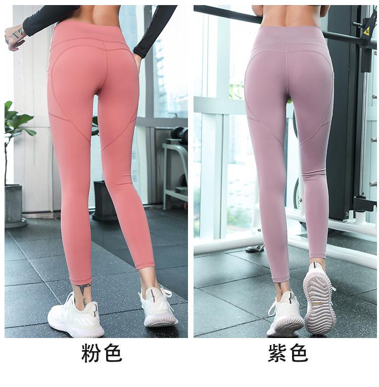 Pantalones de Yoga Melocotón para Mujer Bolsillo Lateral de Malla Slim Elástico Cintura Alta Secado Rápido Fondo para Correr Traje de Yoga Leggings