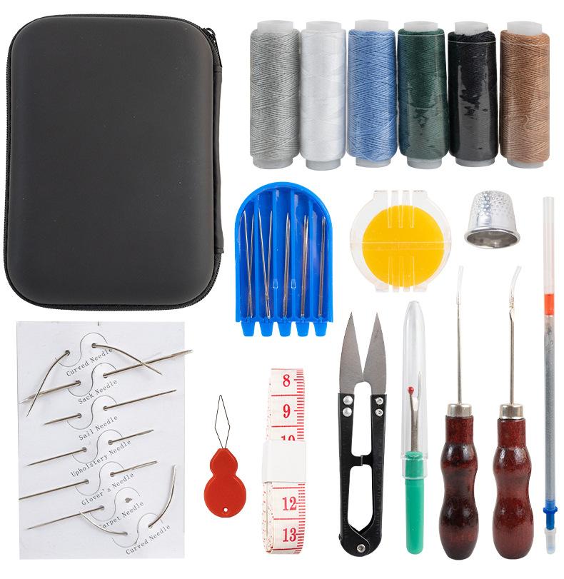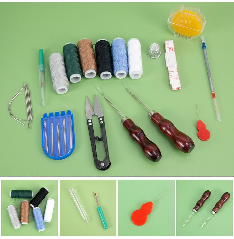 Herramientas de cuero para coser a mano, kit de herramientas de bricolaje de cuero, 32 piezas, para hacer artículos de cuero hechos a mano