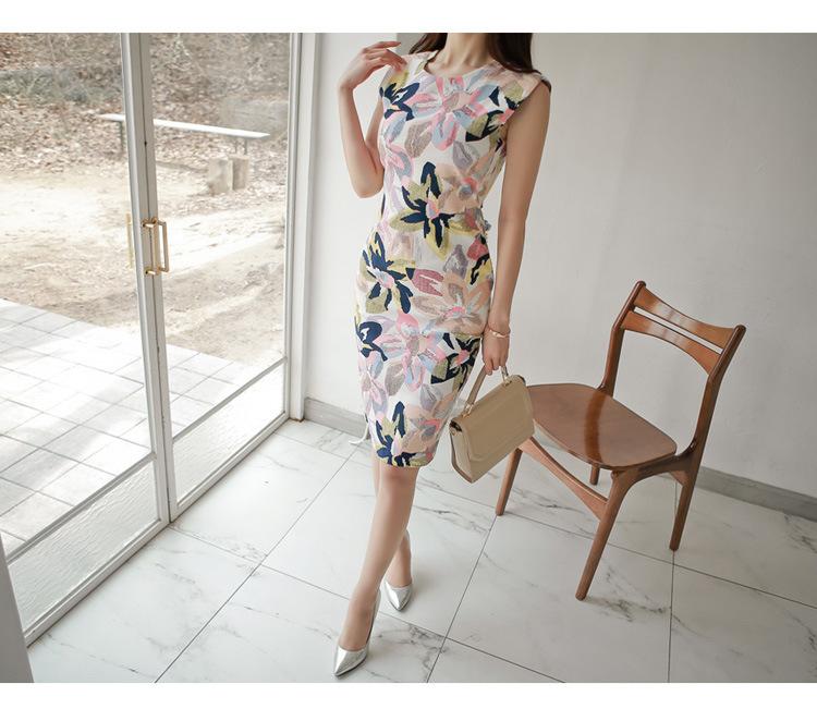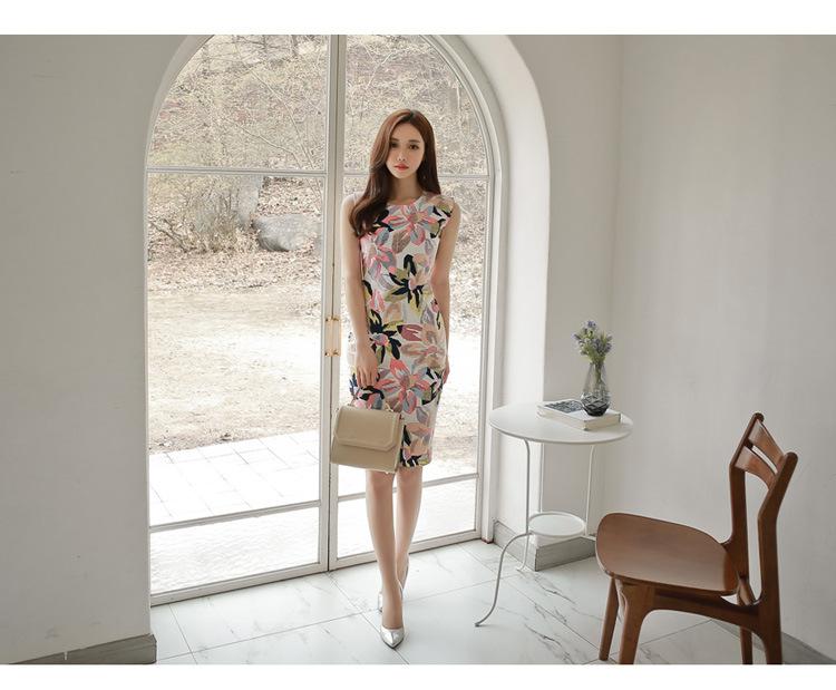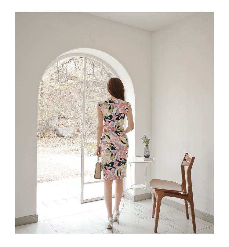 Vestido ajustado sin mangas con estampado de moda de verano 2023, nuevo, elegante y elegante vestido ajustado a la cadera.