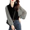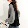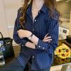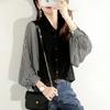 Camisa holgada a rayas con diseño de estilo retro de Hong Kong de estación europea, blusa con costuras de gasa de primavera para mujer