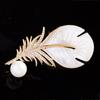 Nuevo broche de plumas exquisito de moda coreana, elegante ramillete de perlas que combina con todo, accesorios para mujer, venta al por mayor.