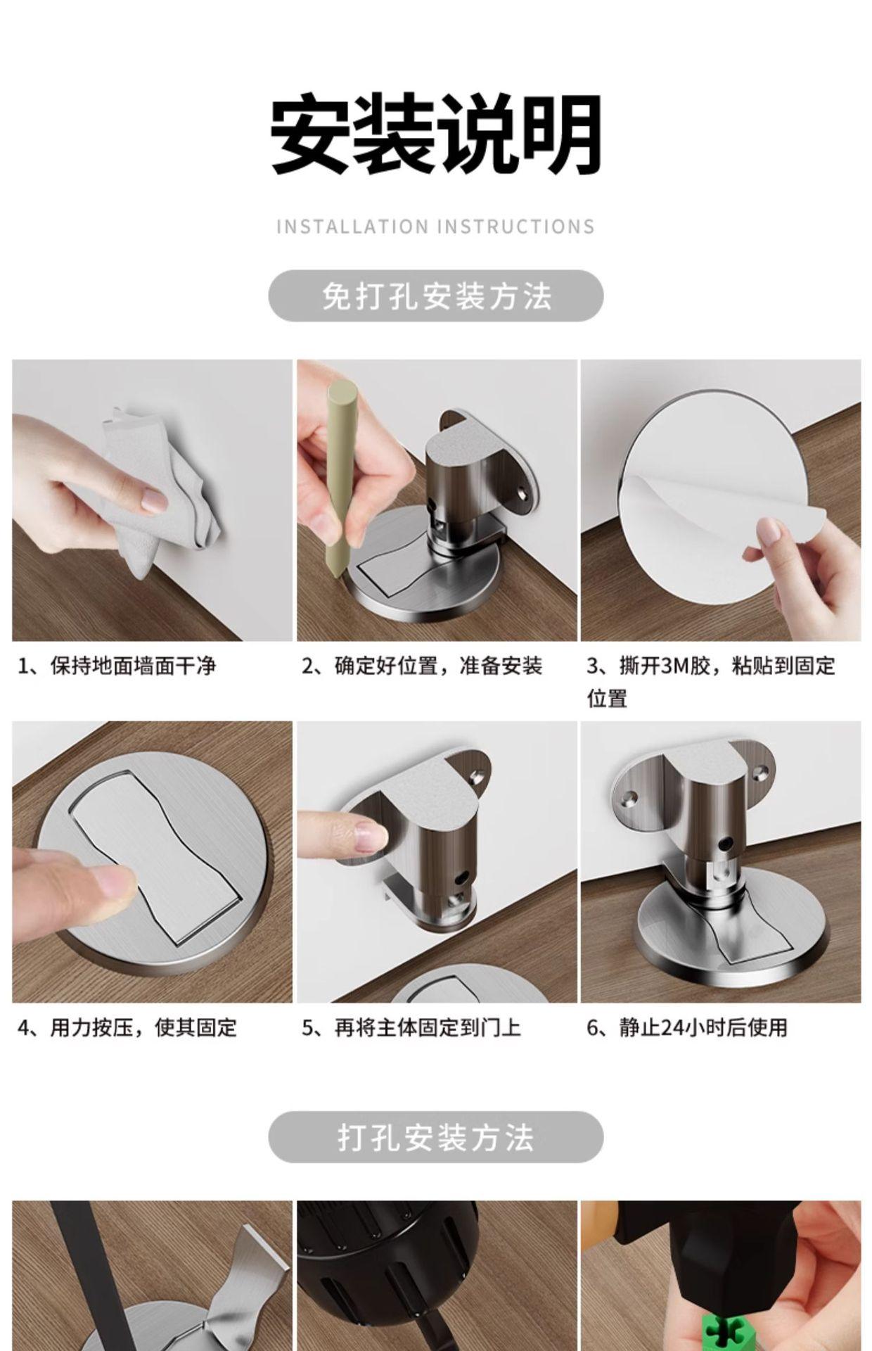 Succión de Puerta Sin Perforación Succión de Piso Magnético Fuerte Colisión de Puerta Anticolisión Tope de Puerta Tope de Puerta Baño Invisible Nuevo Hogar