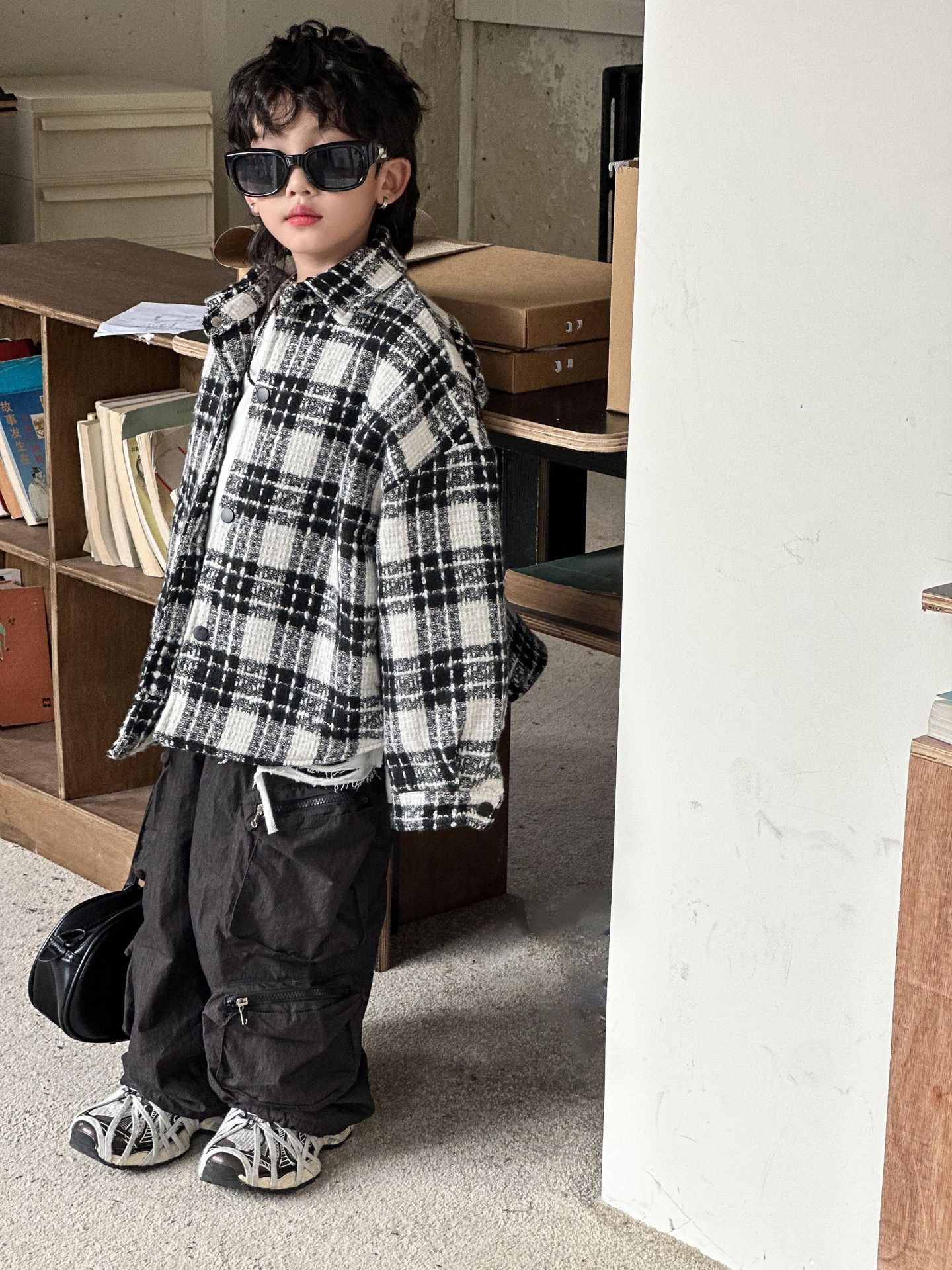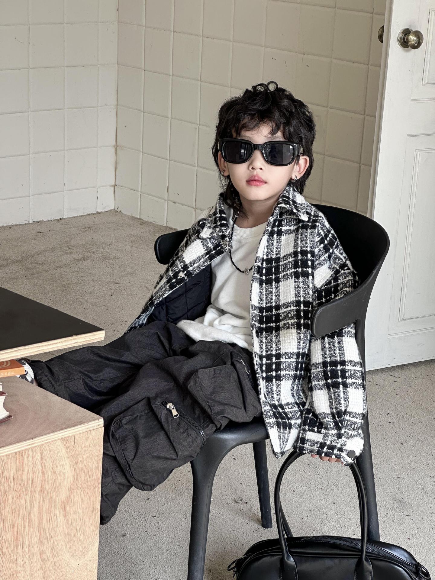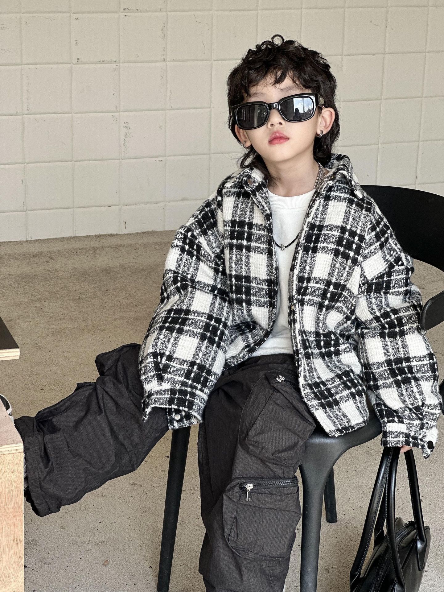 Remontando al Origen 2024 Invierno Nuevo Chaqueta para Niño Estilo Chanel Acolchada de Algodón Combinable Estilo Coreano Moderna Cool Cálida Top