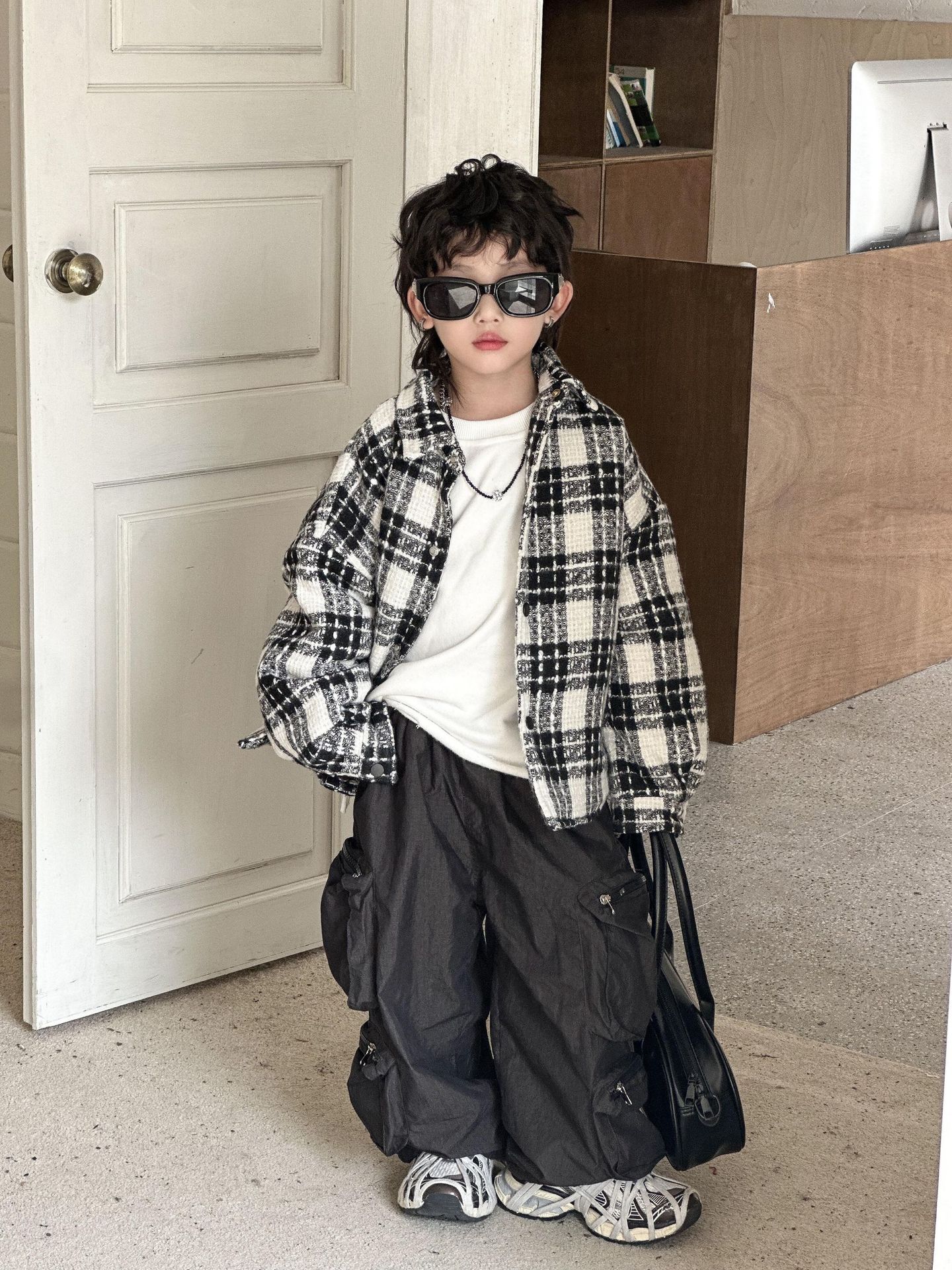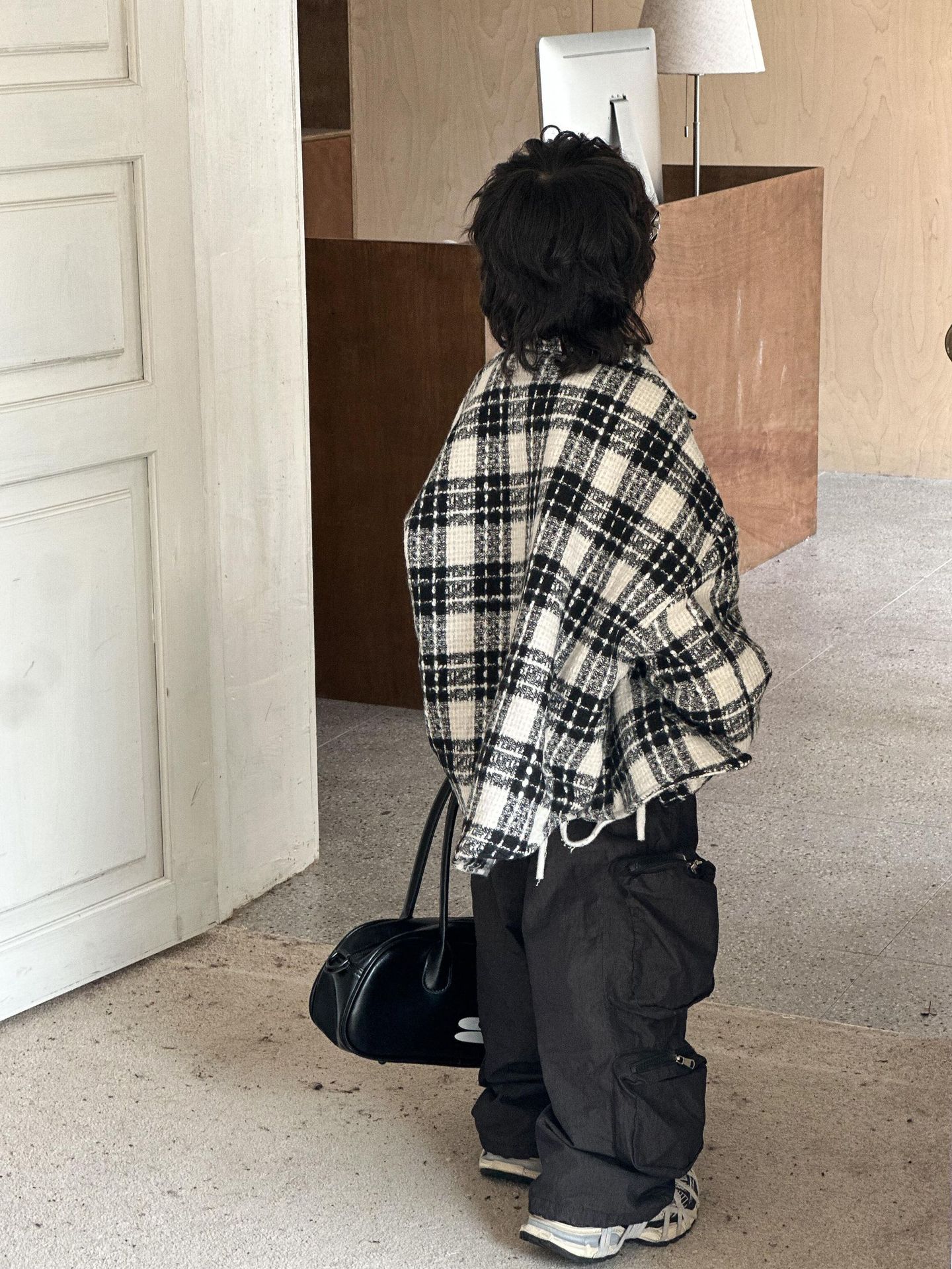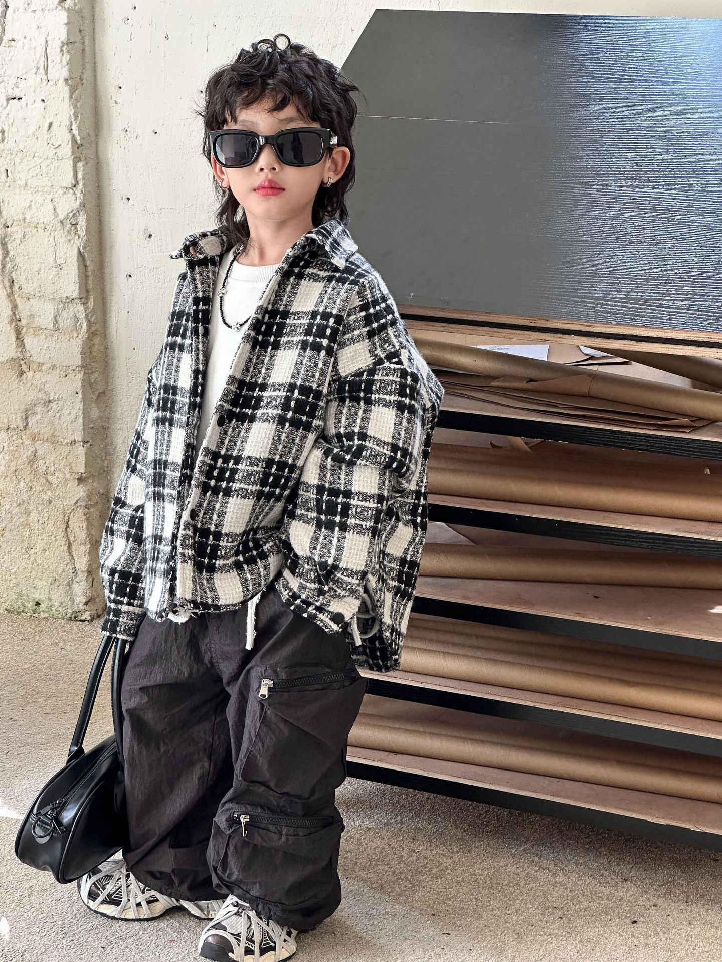 Remontando al Origen 2024 Invierno Nuevo Chaqueta para Niño Estilo Chanel Acolchada de Algodón Combinable Estilo Coreano Moderna Cool Cálida Top