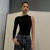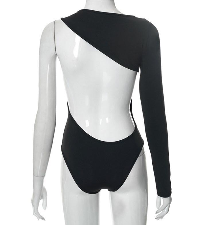 Vestido de un solo hombro con cuello redondo, color liso, ajustado, estilo Spice Girl, de primavera y otoño, estilo europeo y americano.
