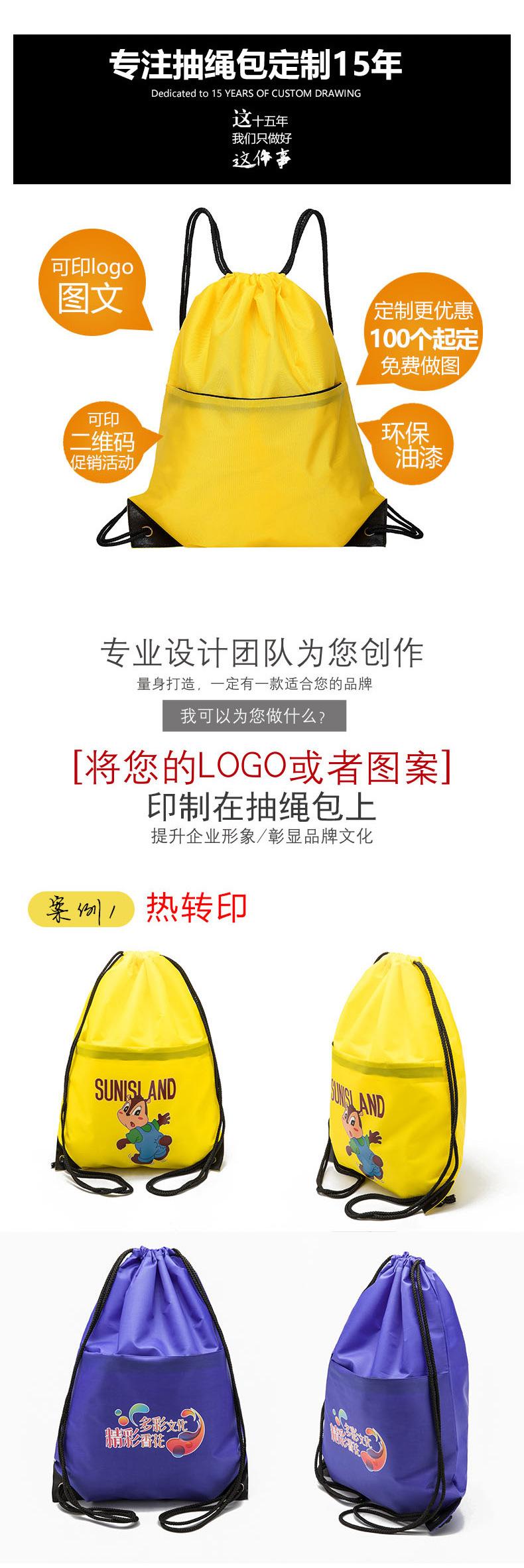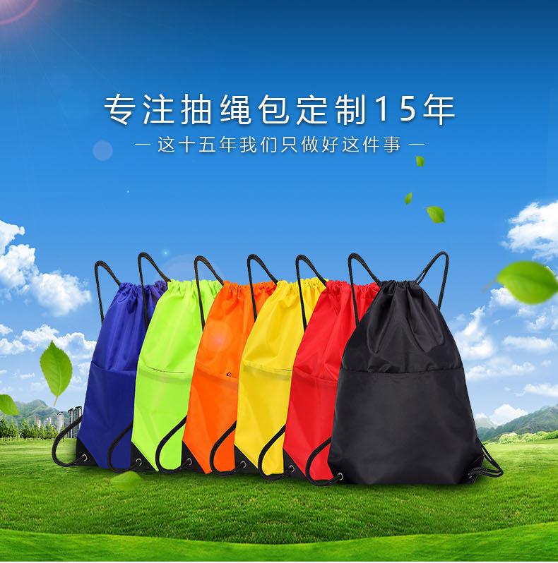 Mochila impermeable para exteriores con cordón y bolsillo, con impresión de logotipo, para entrenamiento de estudiantes, de poliéster, venta al por mayor