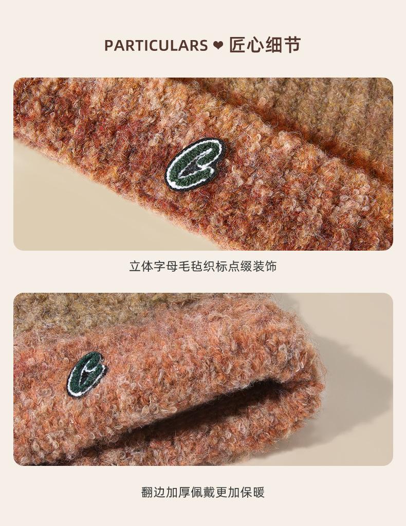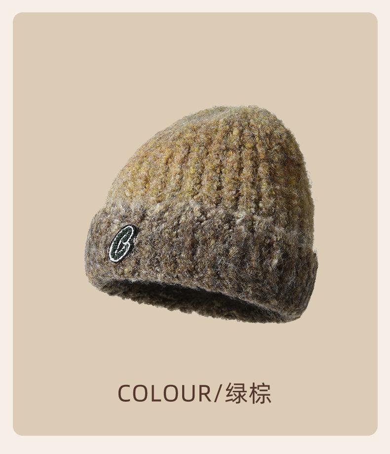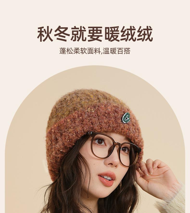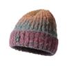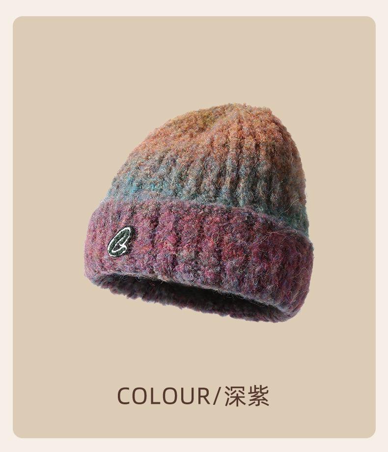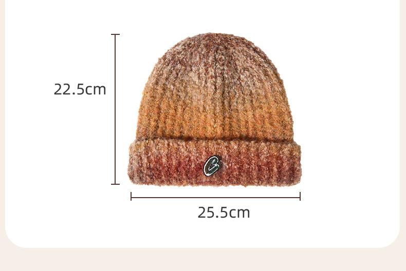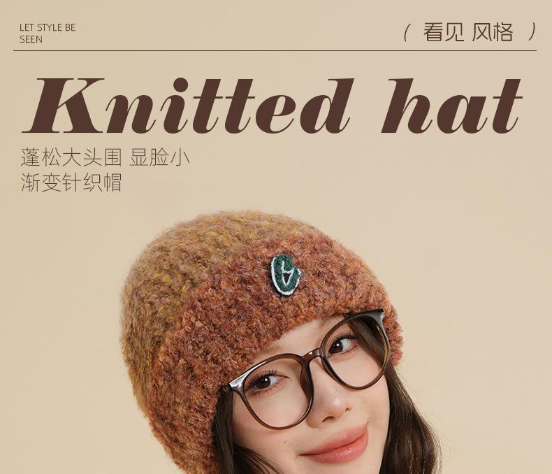 Gorro de lana de cabeza grande para mujer, cálido, de otoño e invierno, de punto suelto y degradado, grueso y combinable con todo.