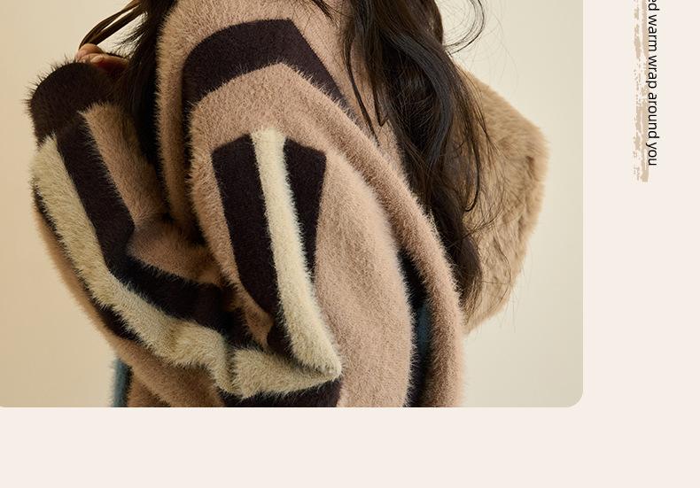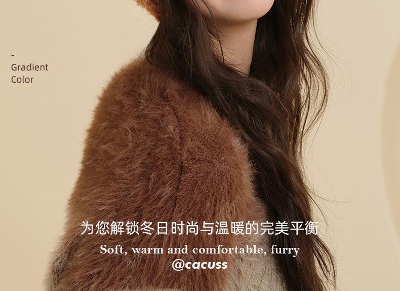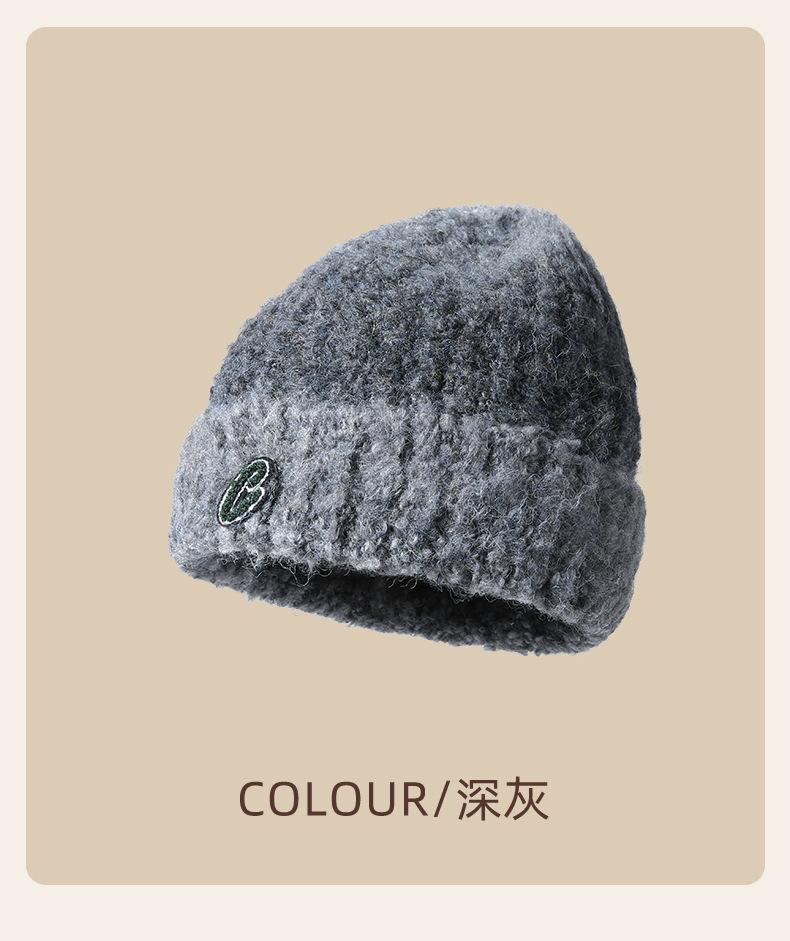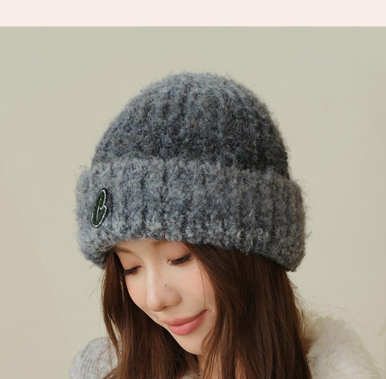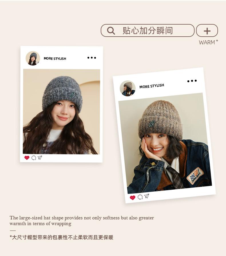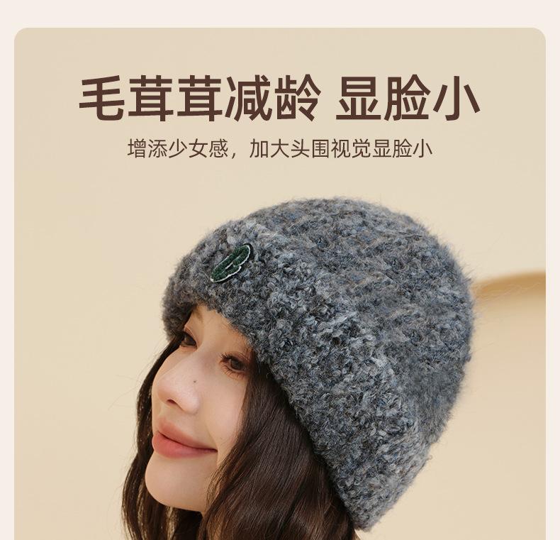 Gorro de lana de cabeza grande para mujer, cálido, de otoño e invierno, de punto suelto y degradado, grueso y combinable con todo.