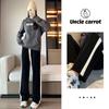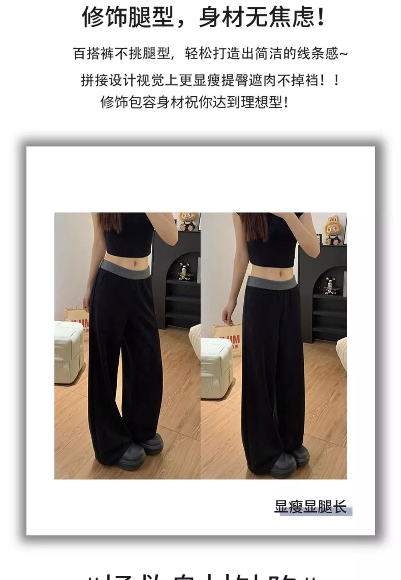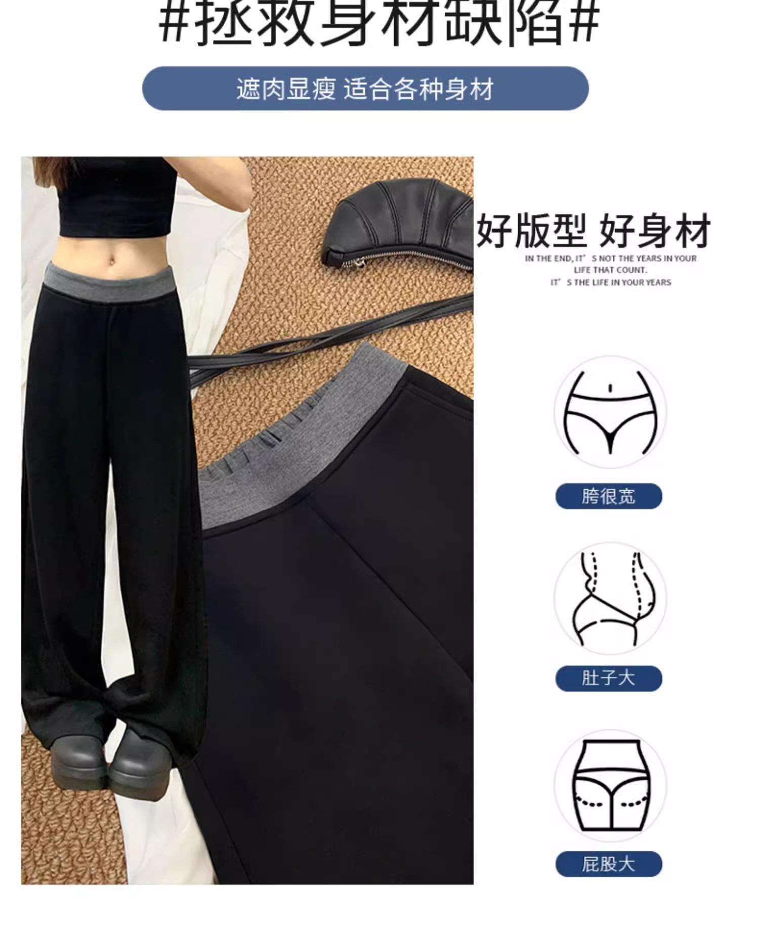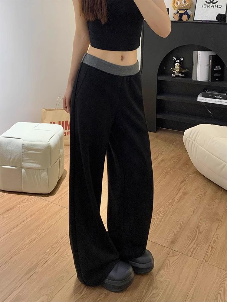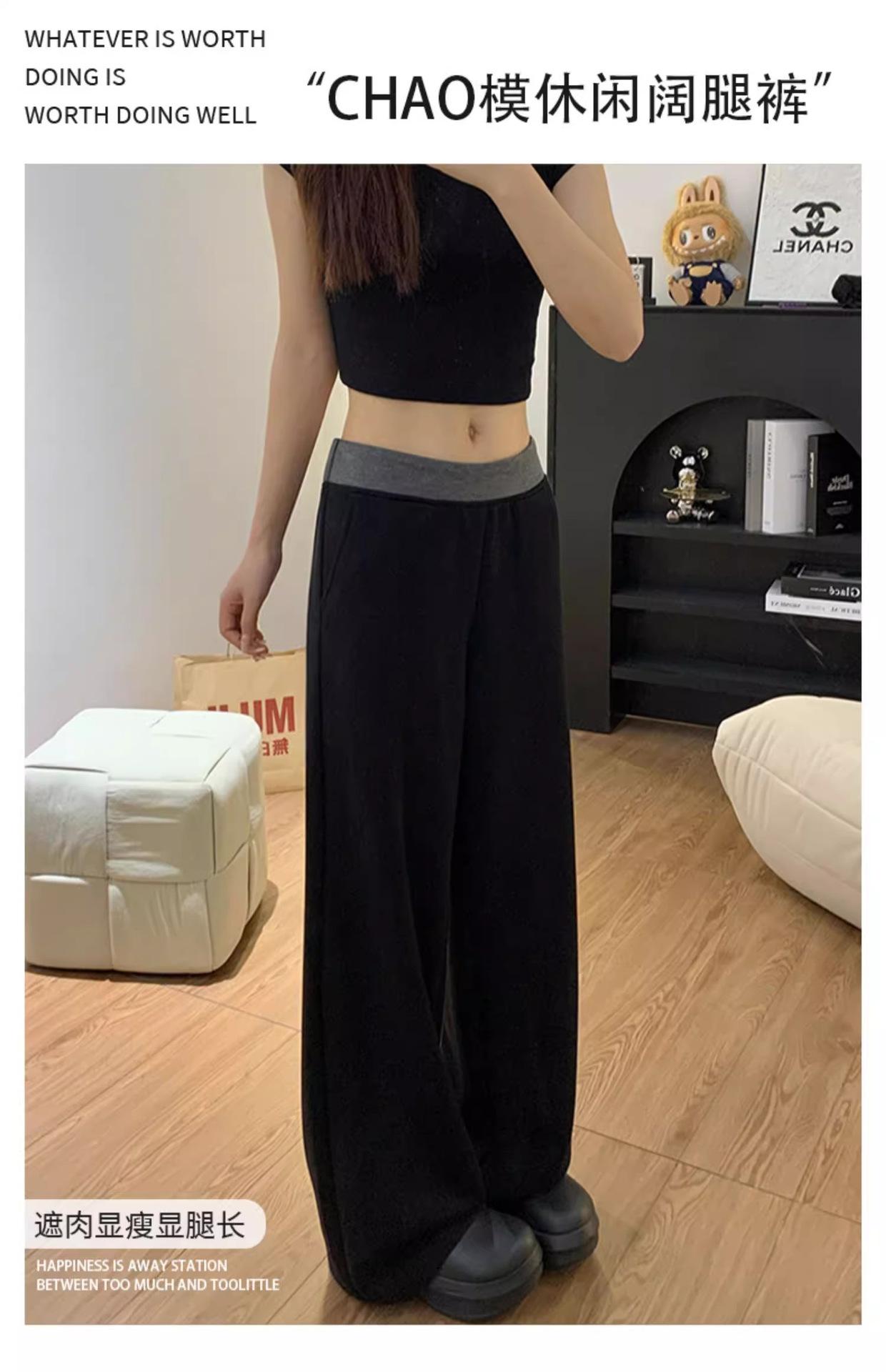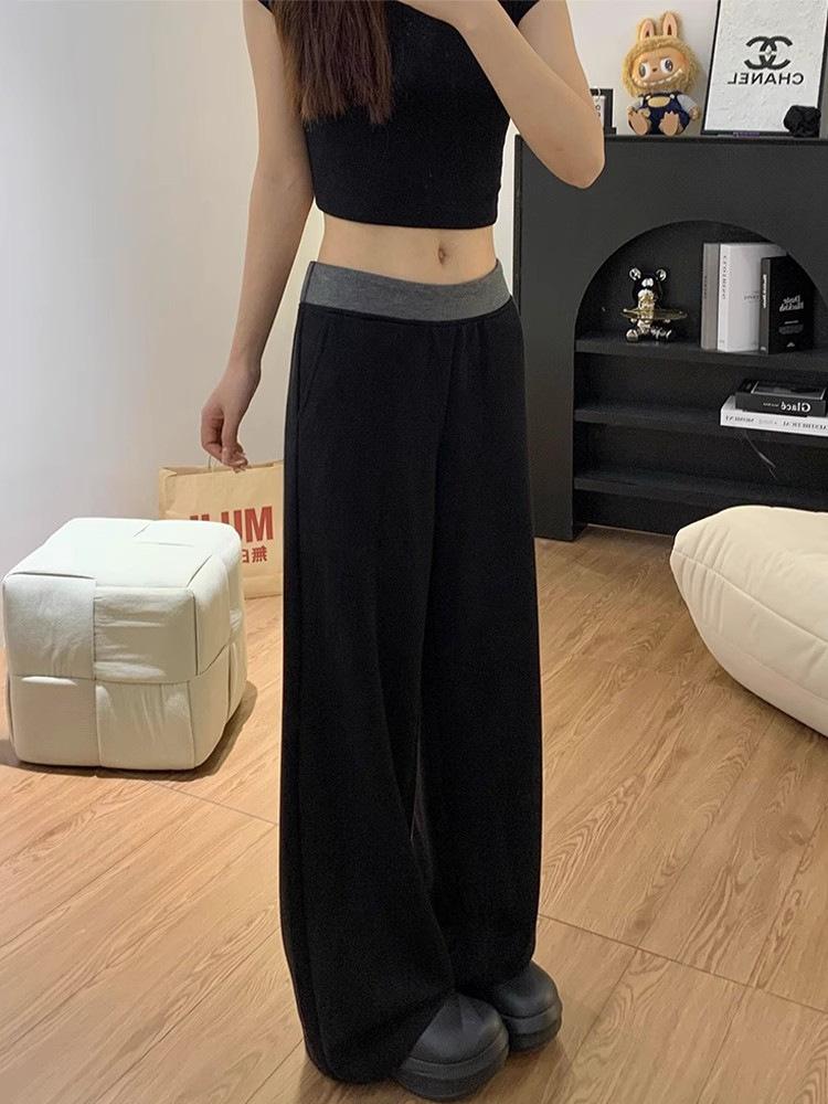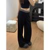 Pantalones casuales negros de cintura alta y pierna ancha para primavera y otoño, nuevos pantalones largos holgados de estilo americano estilo retro deportivo.