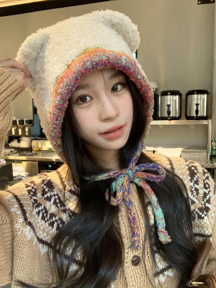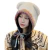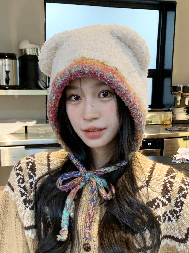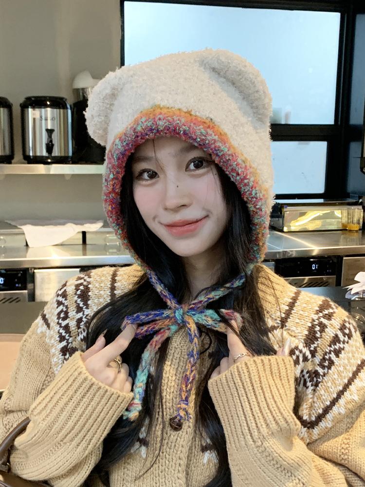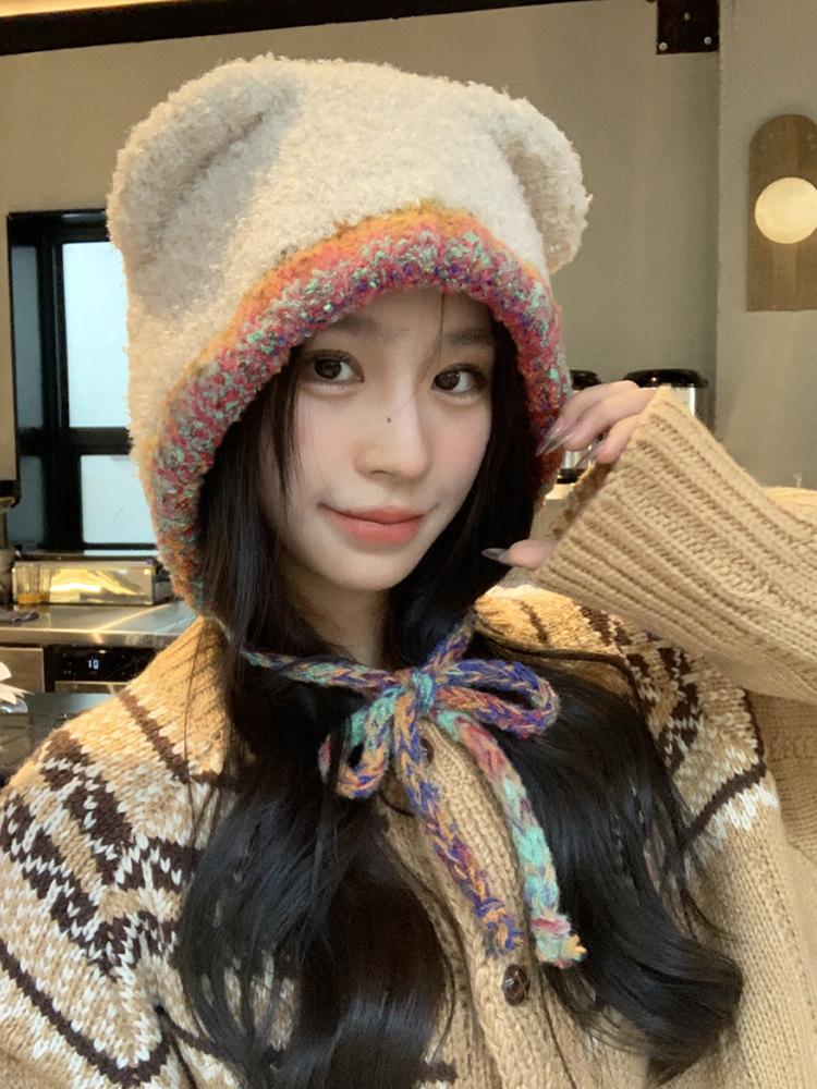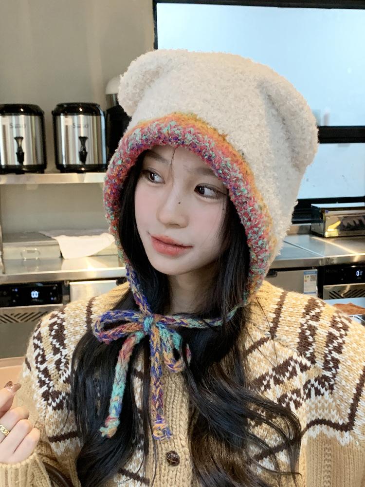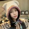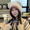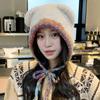 Lindo Gorro de Punto de Peluche de Oso para Mujer Otoño e Invierno 2024 Combinación Total Muestra el Rostro Pequeño Cálido a Prueba de Frío Protección para los Oídos Gorro Lei Feng