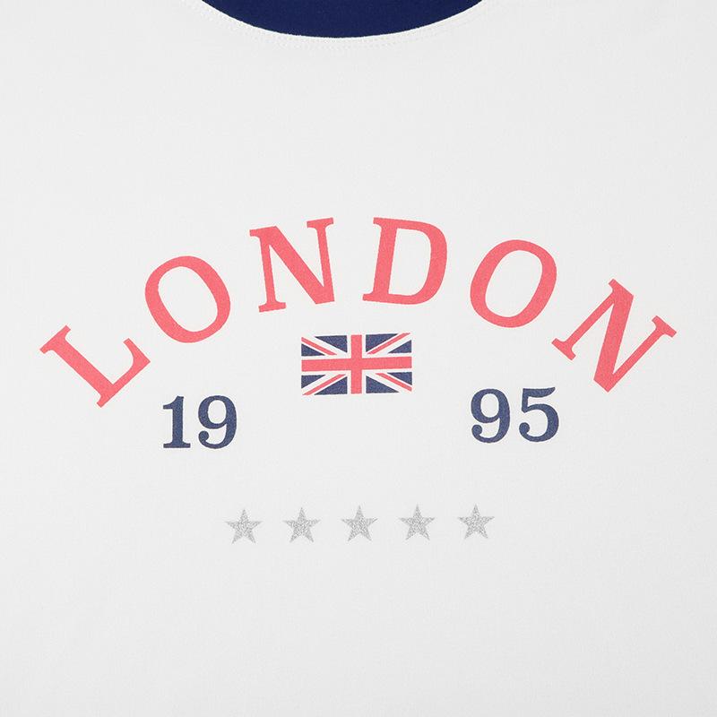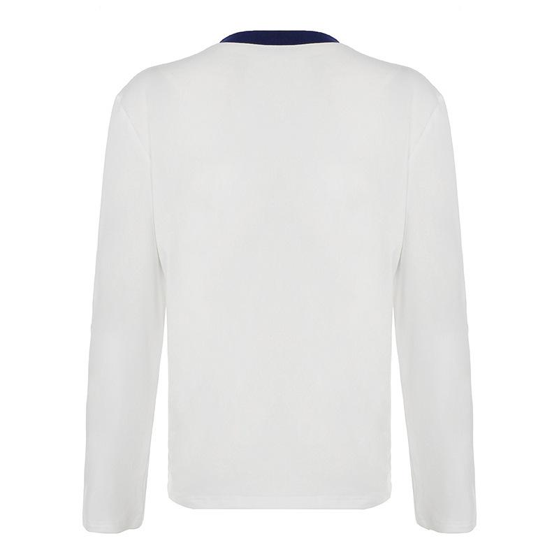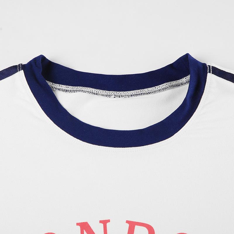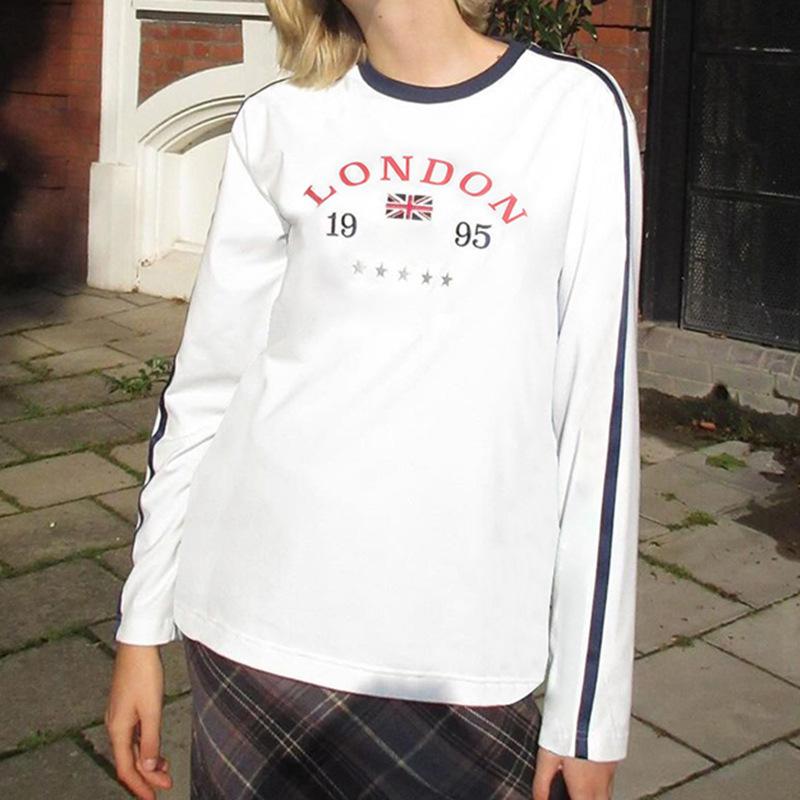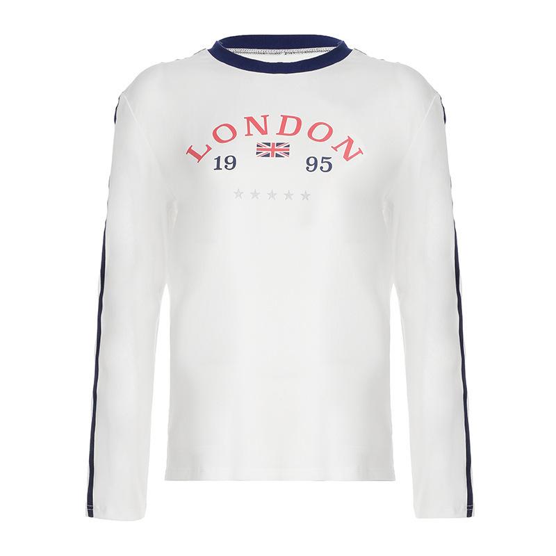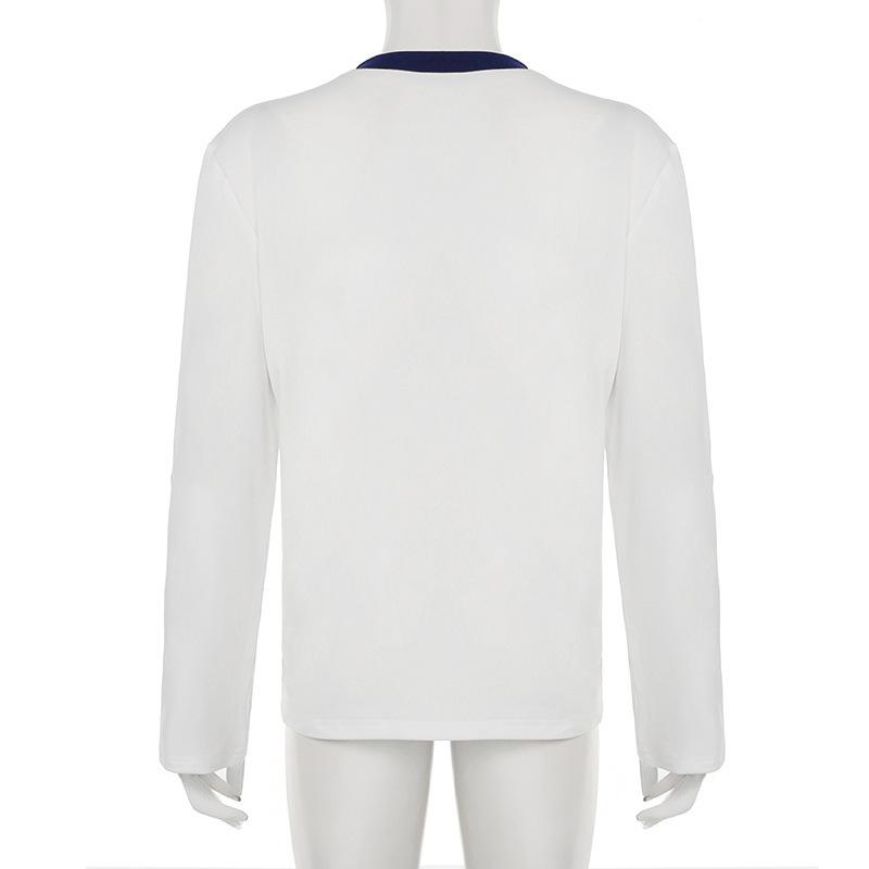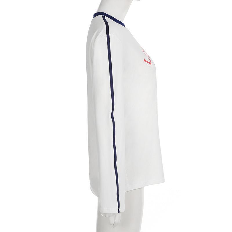 Camiseta de manga larga con estampado de letras en contraste de color, estilo informal americano de comercio exterior, estilo Spice Girls, cuello redondo, distintiva, combinable con todo, para otoño e invierno.