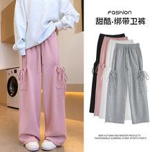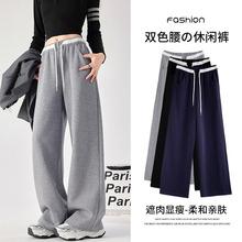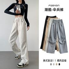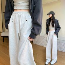 Pantalones Deportivos para Mujer Primavera y Otoño 2025 Nuevo Casual Suelto Pantalón de Sudor Cintura Alta Corte Slim Recto Estrecho Pantalones Drapeados de Pierna Ancha
