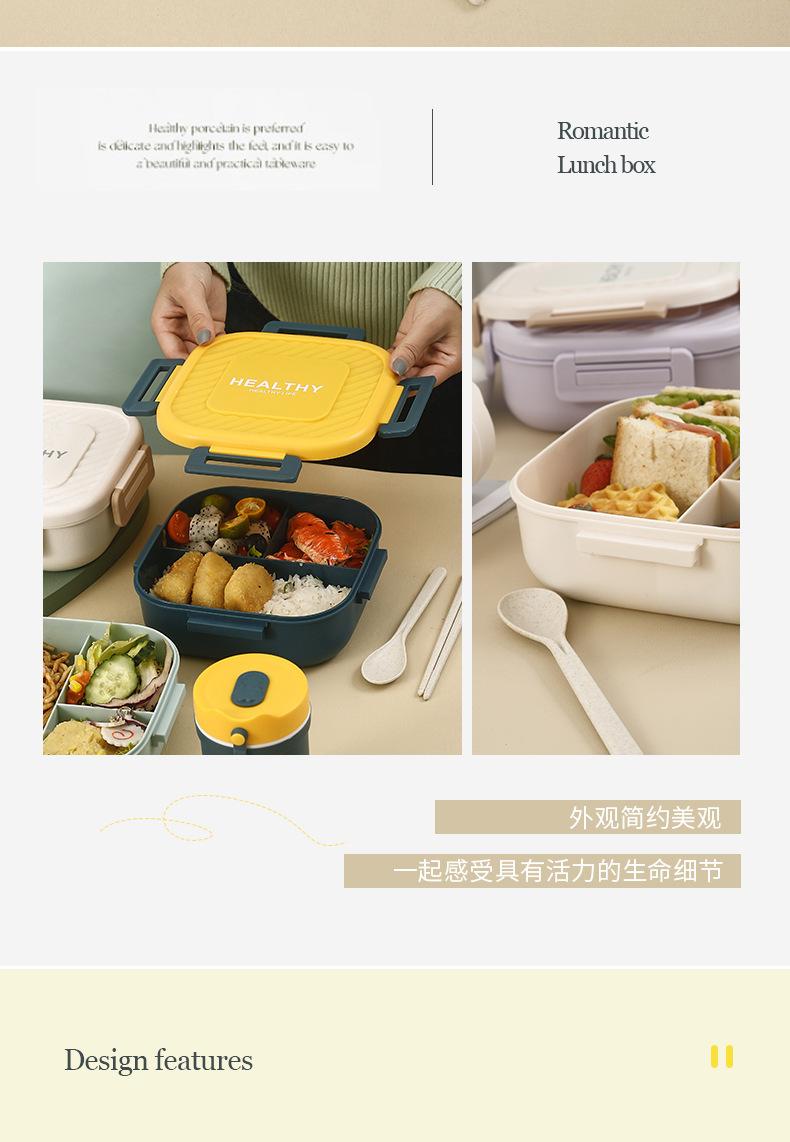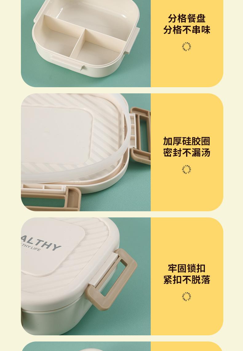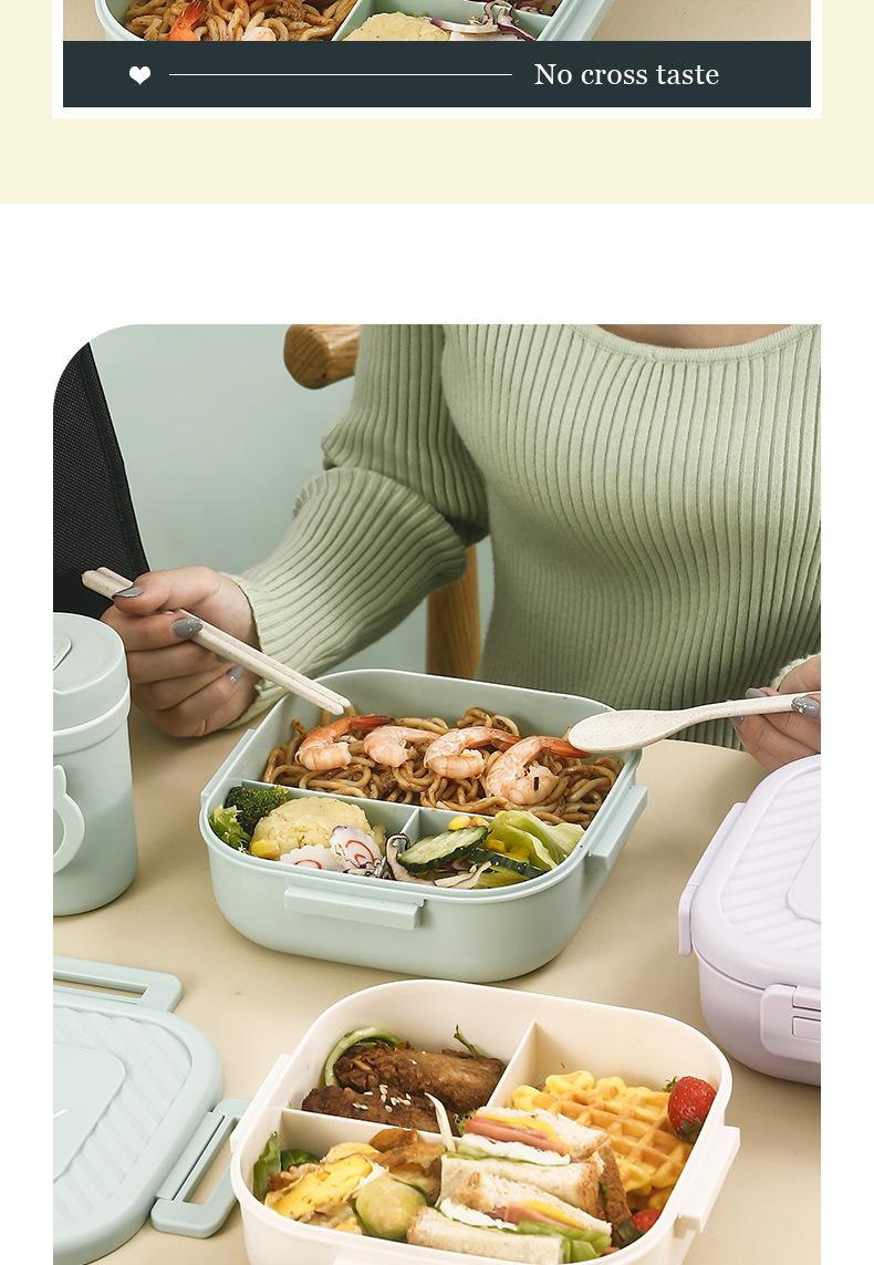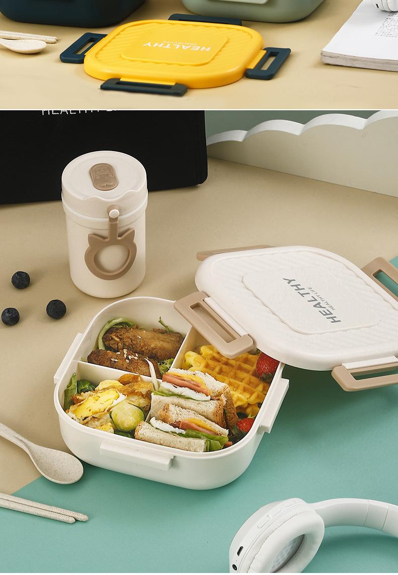 Lonchera portátil para estudiantes y oficinistas, lonchera de plástico con compartimento sellado cuadrado para calentar en microondas.