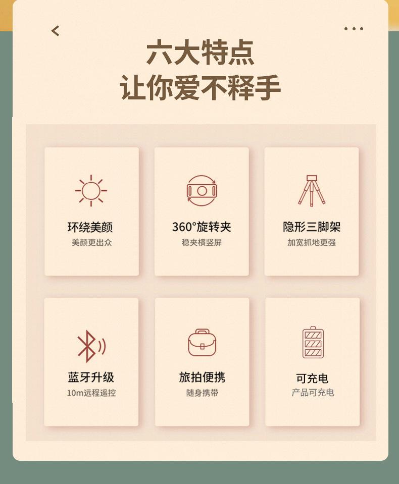 Palo de selfie para teléfono móvil recargable de 6 pulgadas, luz de relleno, luz en vivo, luz de relleno con batería recargable, luz para selfies con Bluetooth