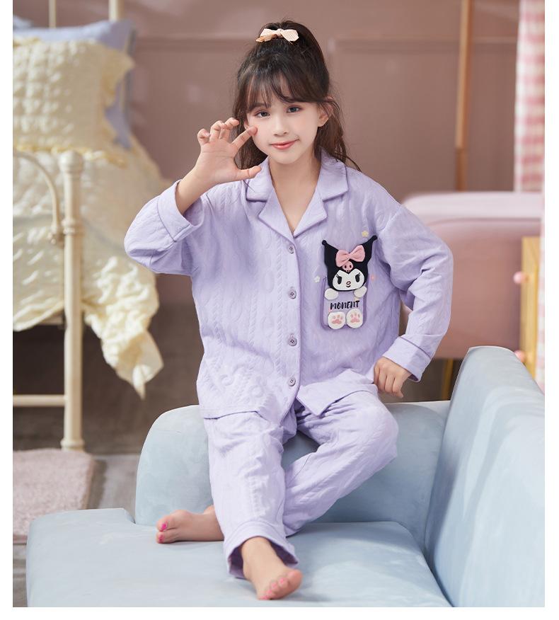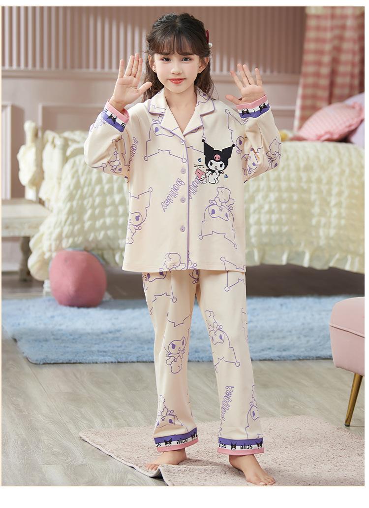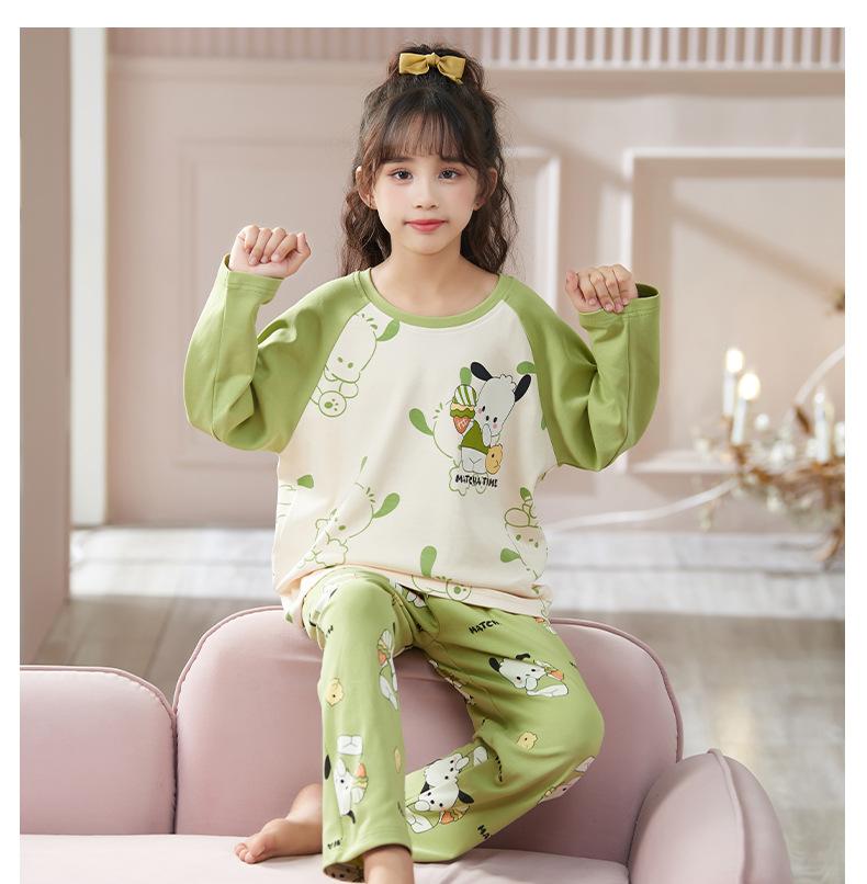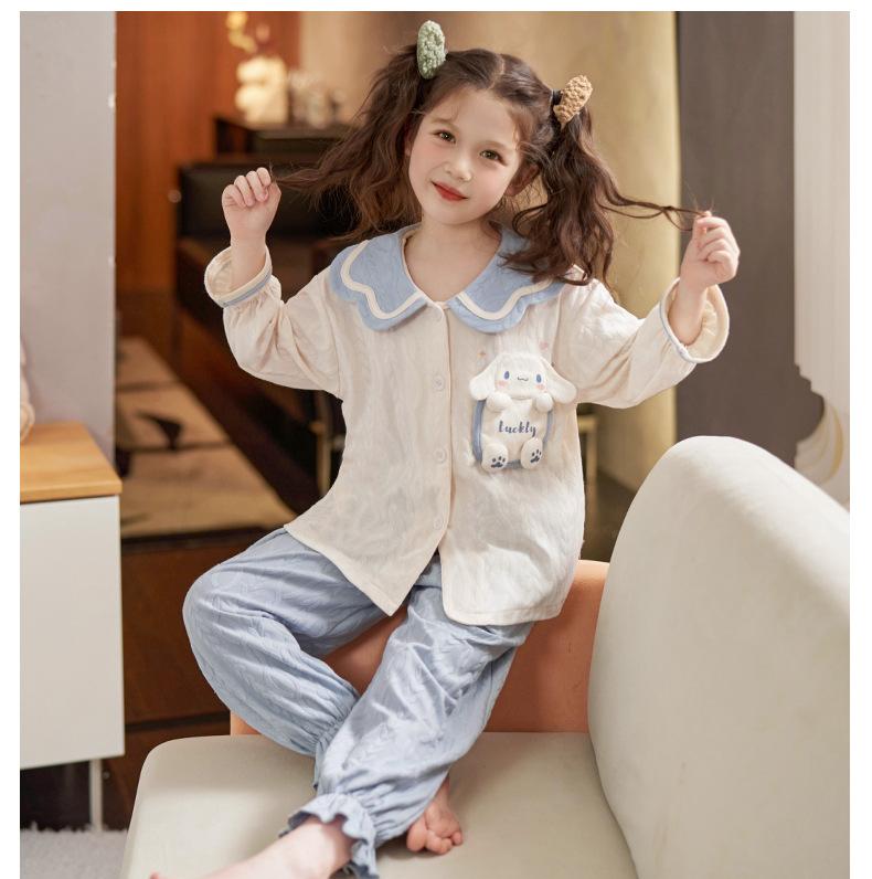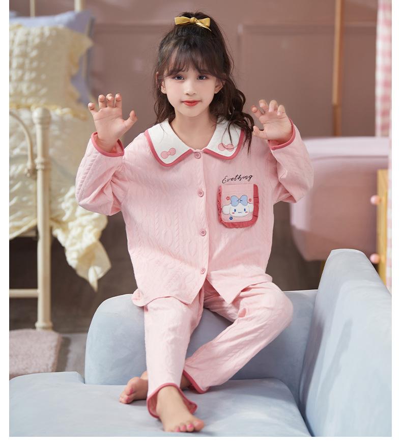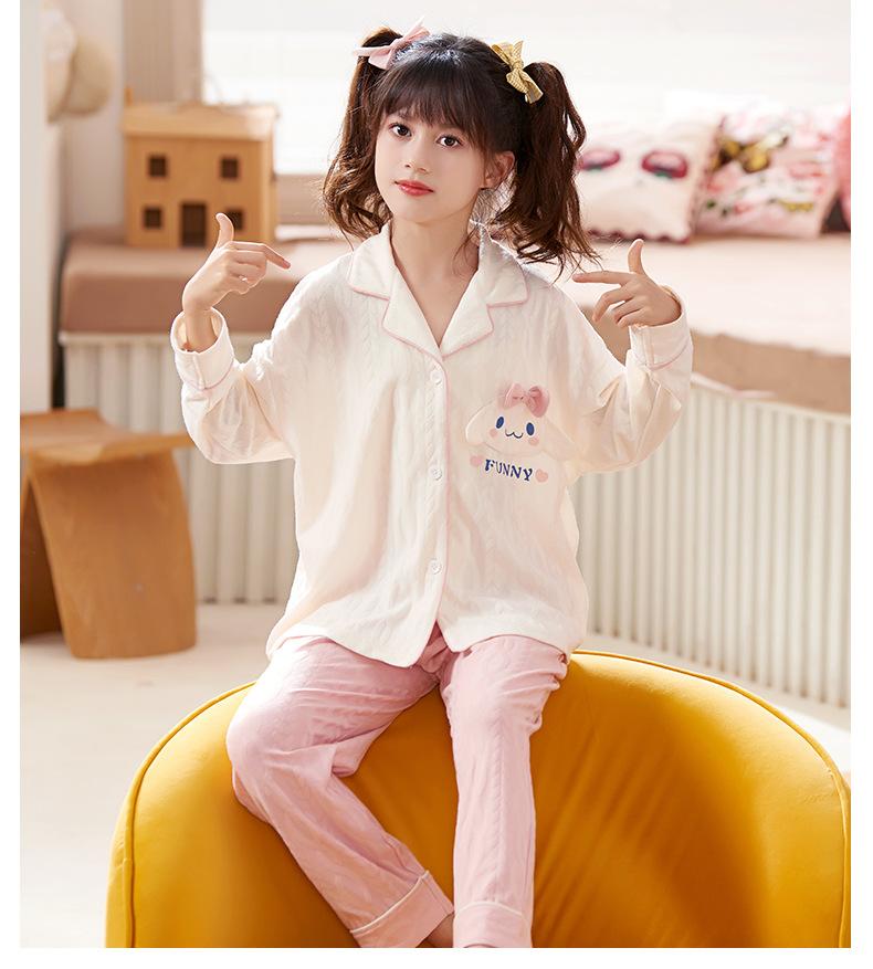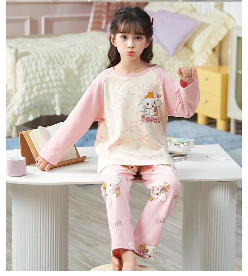 Pijamas para niñas, primavera y otoño, cárdigan de algodón puro, manga larga, dibujos animados, ropa de casa de dos piezas para niños y bebés.