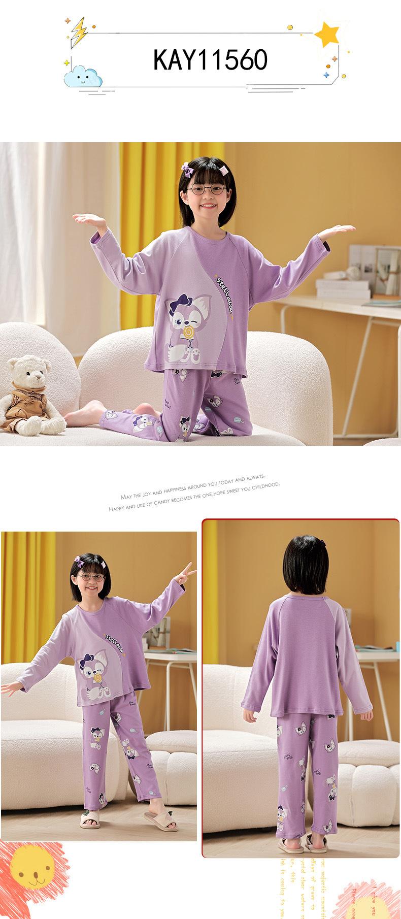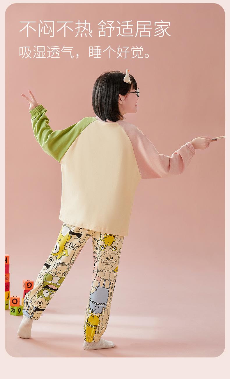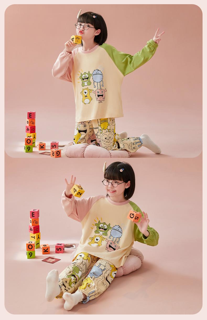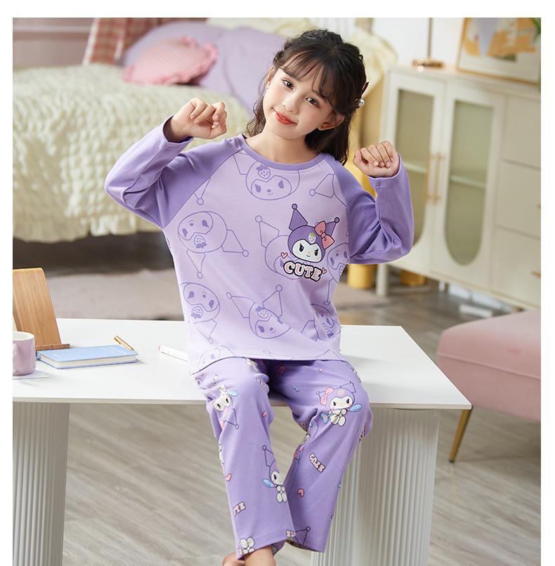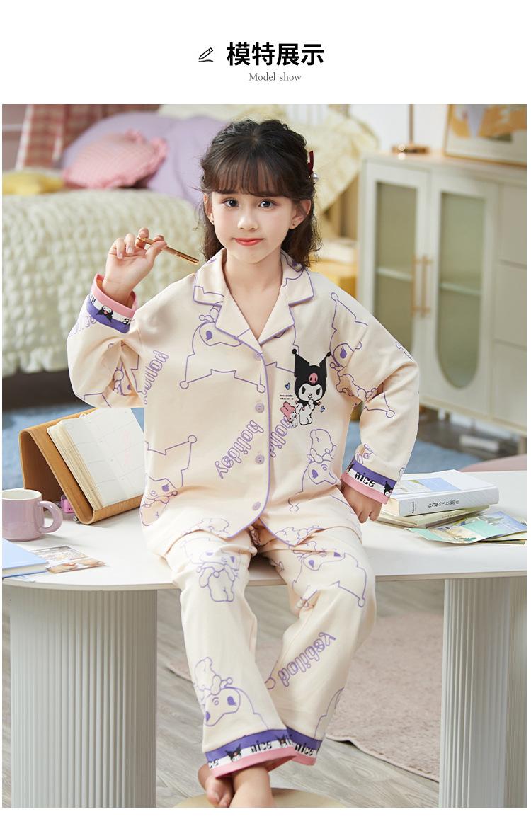 Pijamas para niñas, primavera y otoño, cárdigan de algodón puro, manga larga, dibujos animados, ropa de casa de dos piezas para niños y bebés.