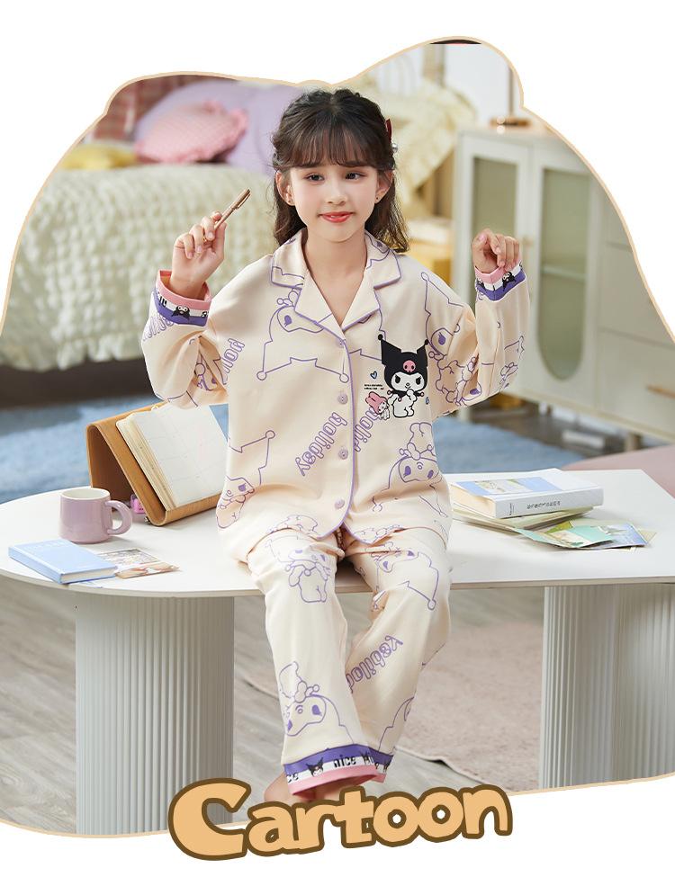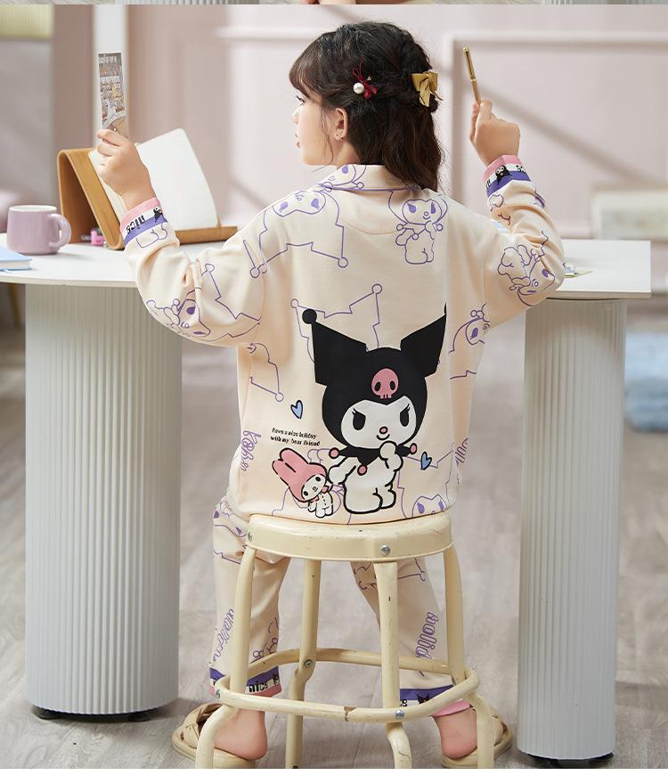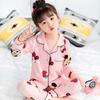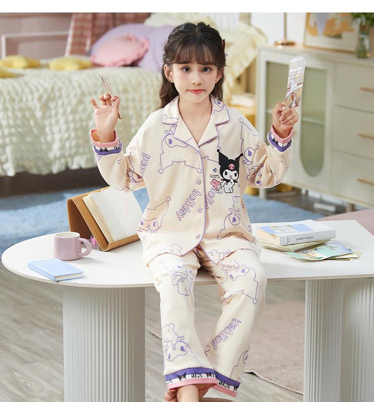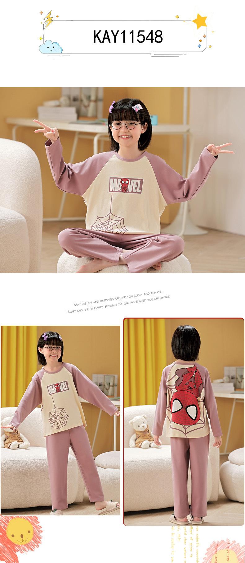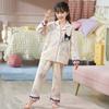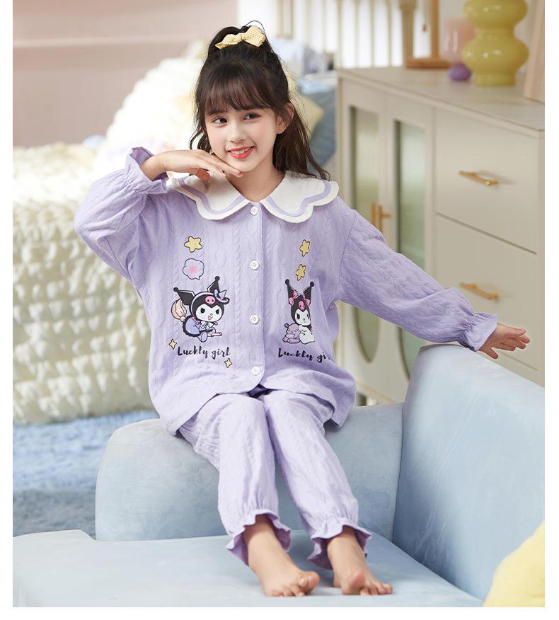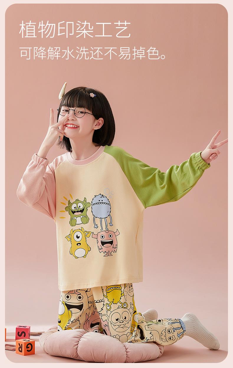 Pijamas para niñas, primavera y otoño, cárdigan de algodón puro, manga larga, dibujos animados, ropa de casa de dos piezas para niños y bebés.
