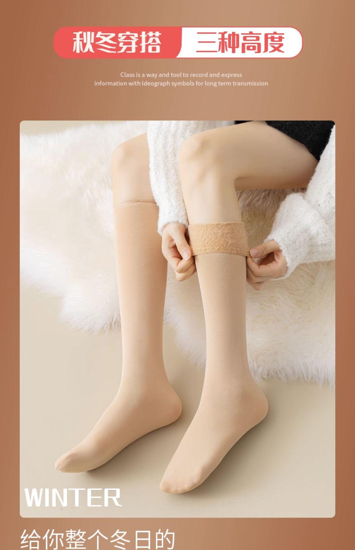 Calcetines de nieve de otoño e invierno, calcetines gruesos con forro polar, medias de mujer, calcetines cálidos de color carne para la pantorrilla, calcetines para dormir al por mayor