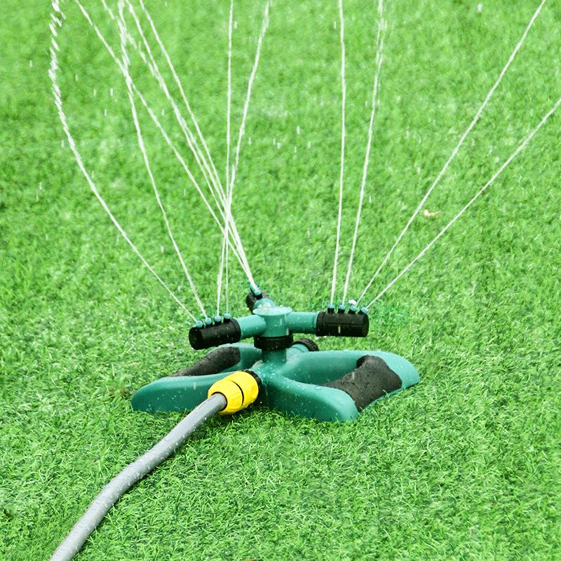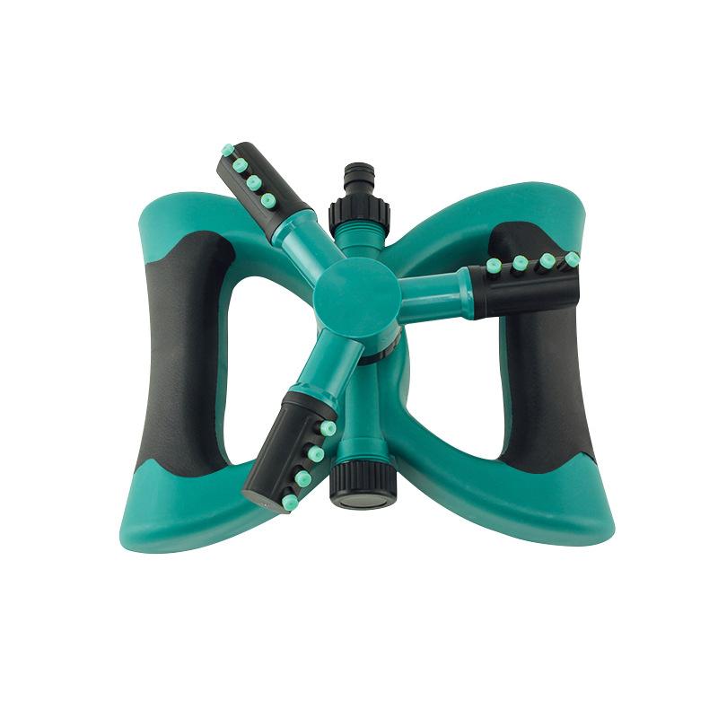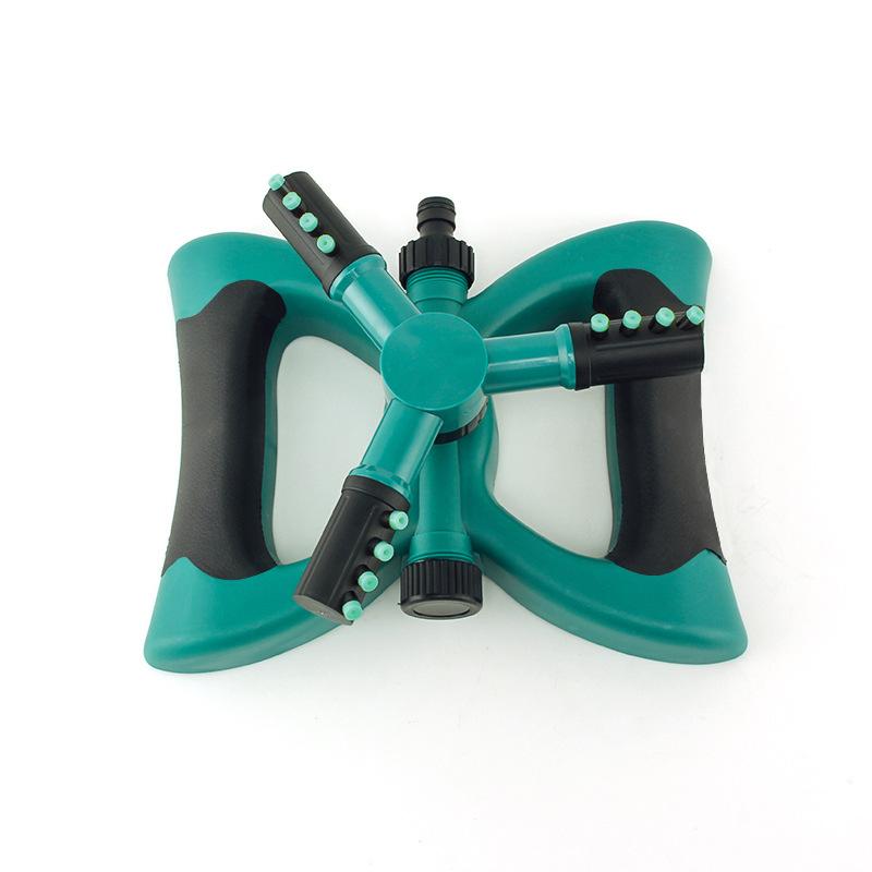 Aspersor automático giratorio de 360 grados con forma de mariposa para riego de viveros, de tres puntas, color verde oscuro.